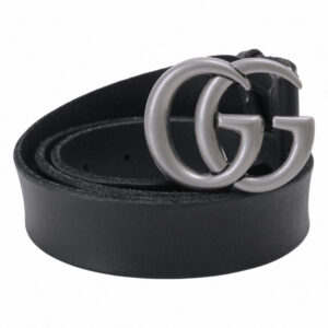 金屬銀雙G LOGO牛皮革男版皮帶(黑)100cm