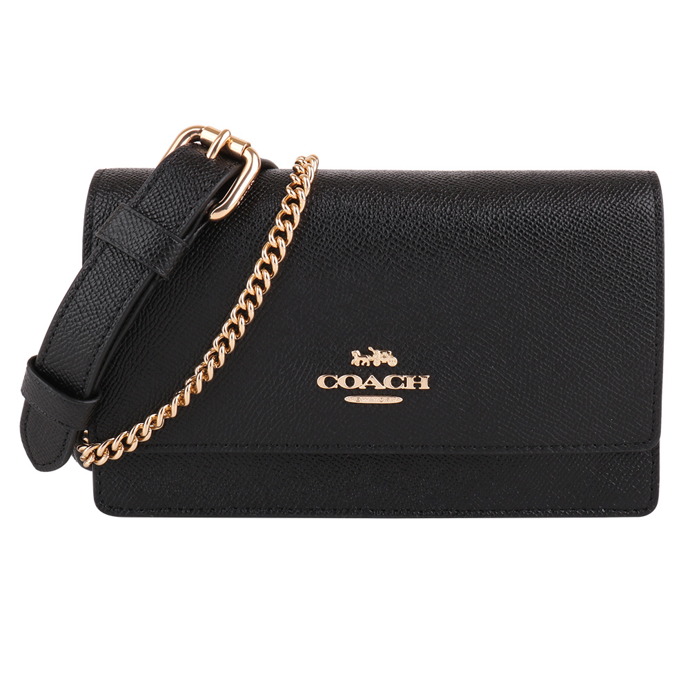 金雙G荔枝紋皮革鍊帶肩/斜背包 黑