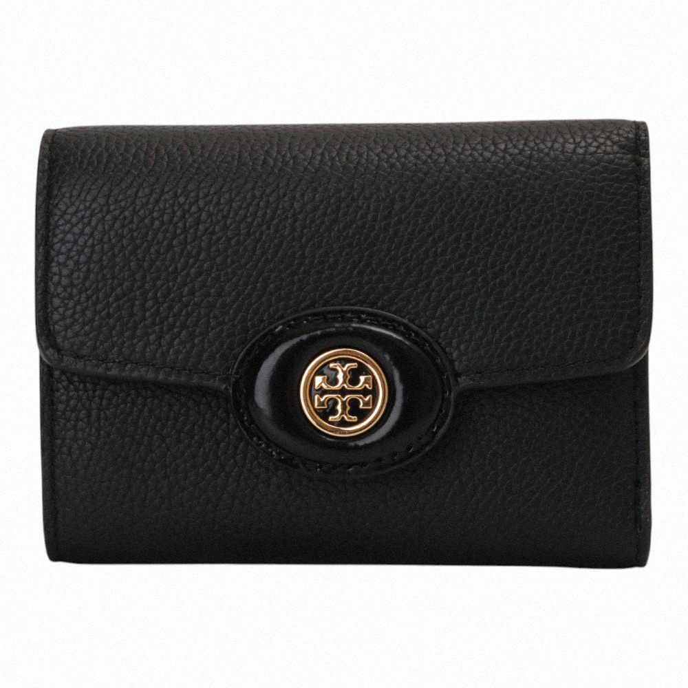 TORY BURCH-圓標雙T 皮革暗釦短夾黑