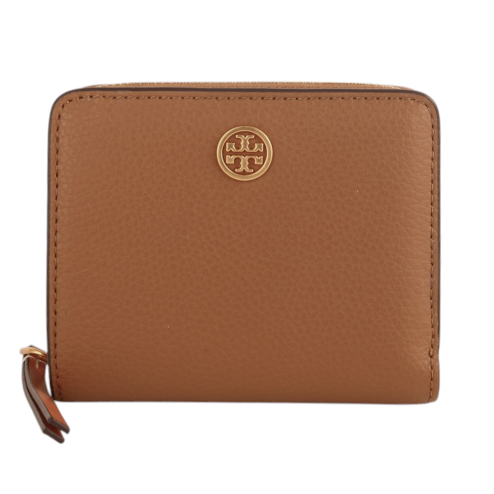 TORY BURCH-荔枝紋皮革暗釦對開短夾(駝)