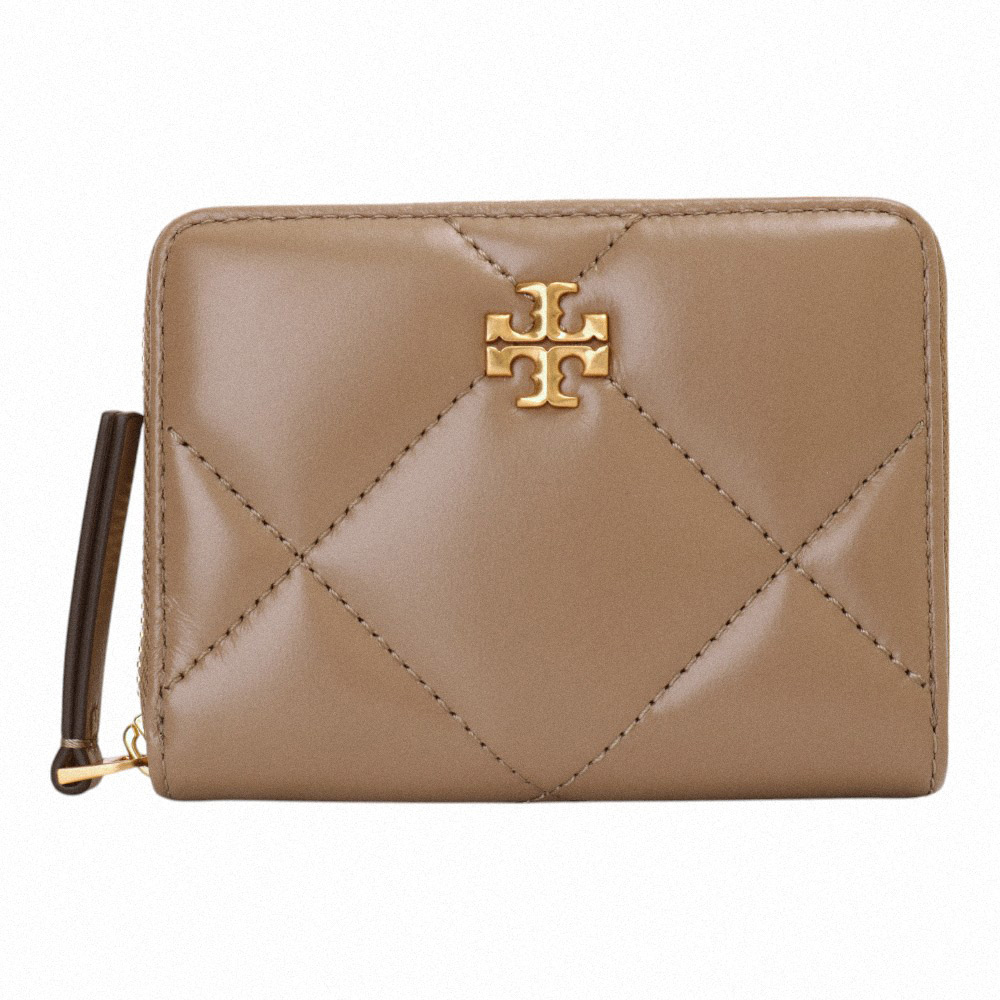 TORY BURCH-金屬TB 菱格紋皮革拉鍊長夾...