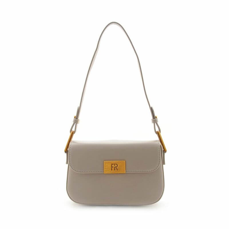 FIRANO-鐵牌方形翻蓋皮革肩背包(褐灰)