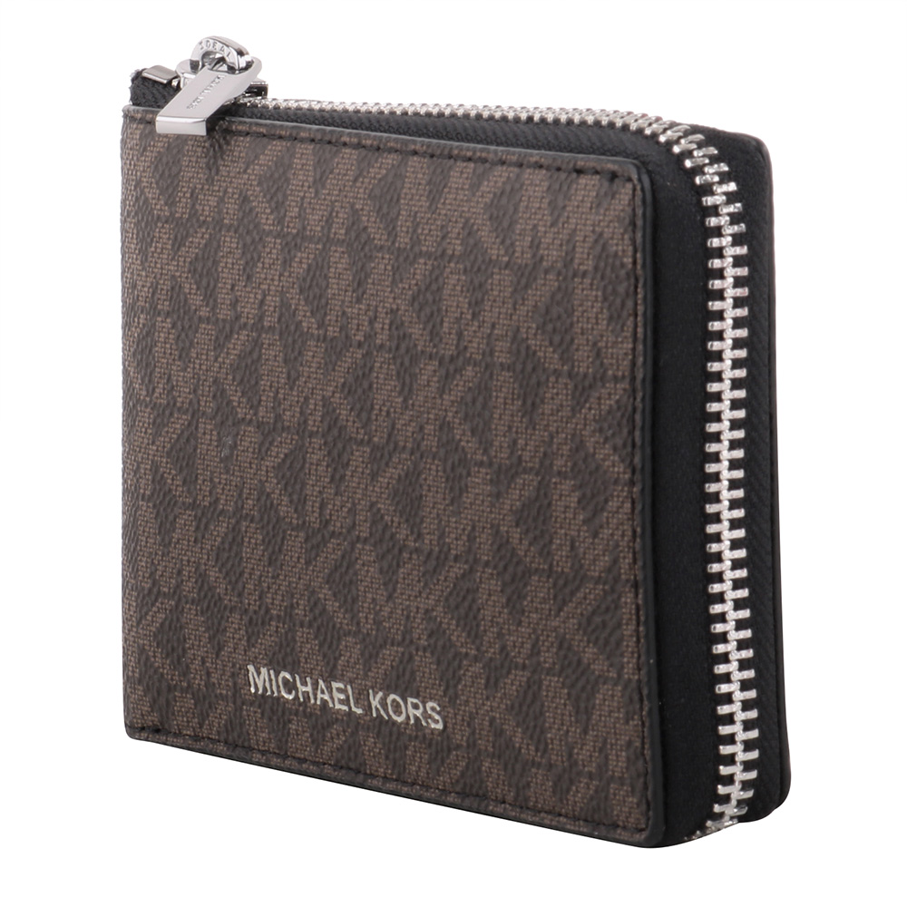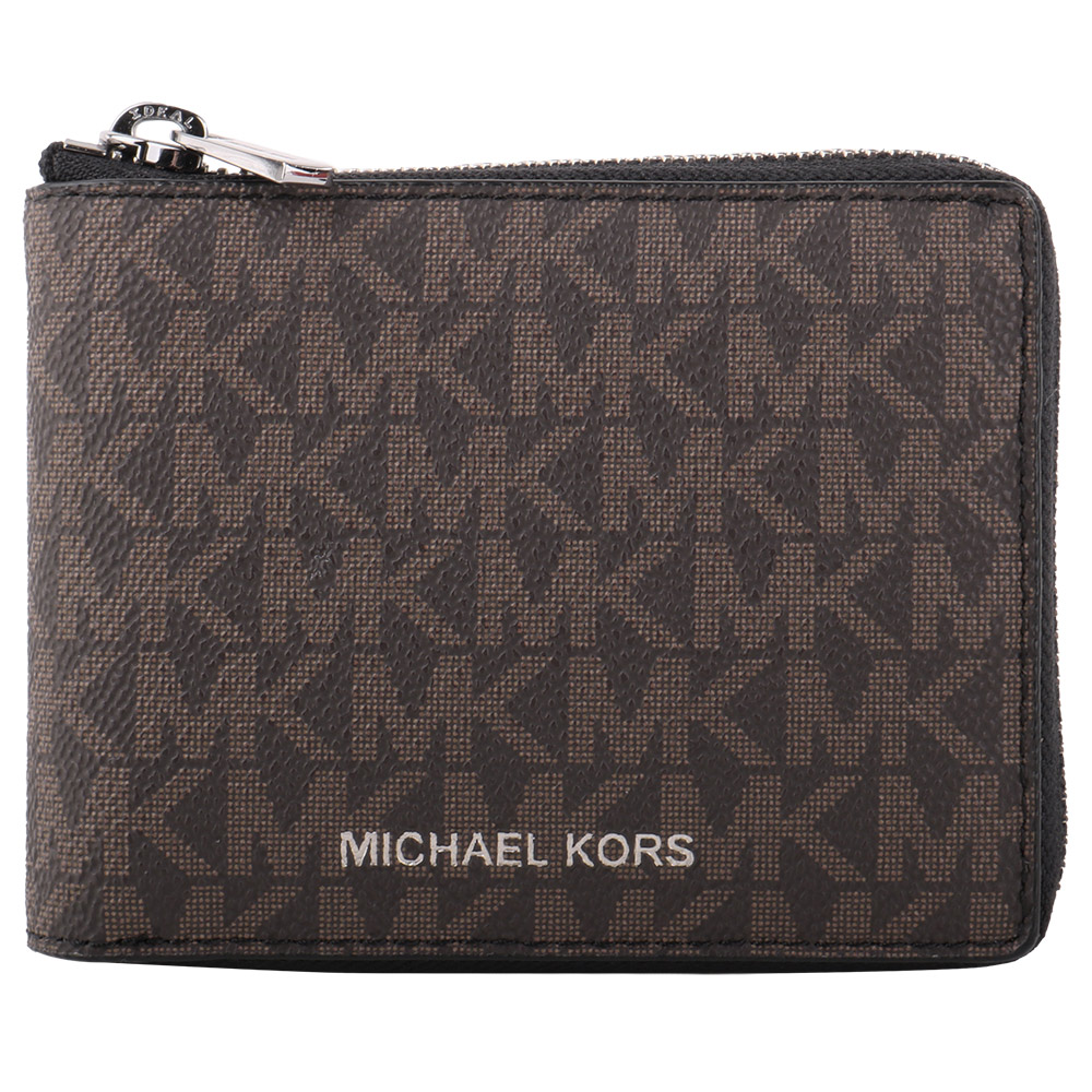 Home - MICHAEL KORS - 滿版防刮MK 拉鍊對開零錢袋短夾_深咖