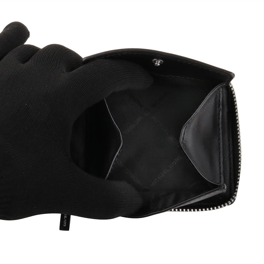 商品名稱: MICHAEL KORS 商品尺寸: 寬14cm 高11 cm x厚0.8cm 商品來源: 美國平行輸入 MK專櫃全新真品 商品規格: 拉鍊開口(零錢袋*1 卡層*4 鈔票層*2) 商品材質: PVC皮革