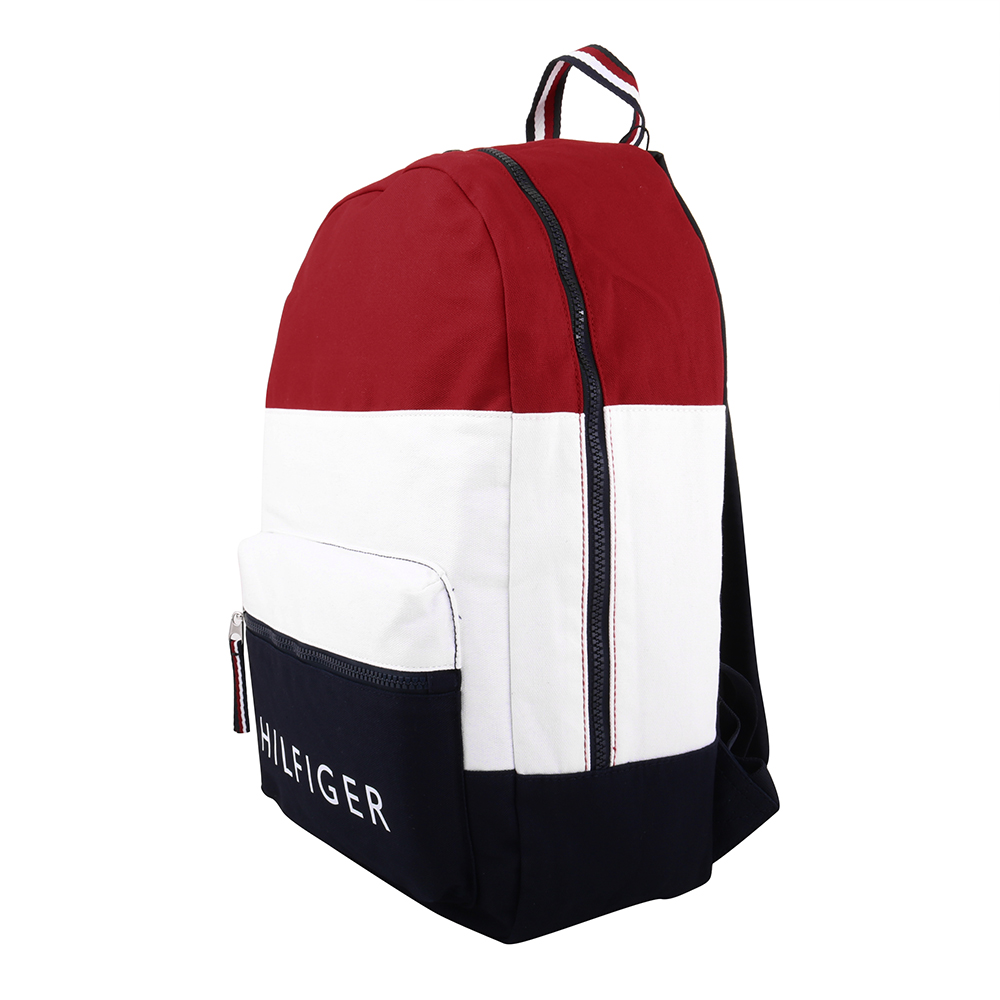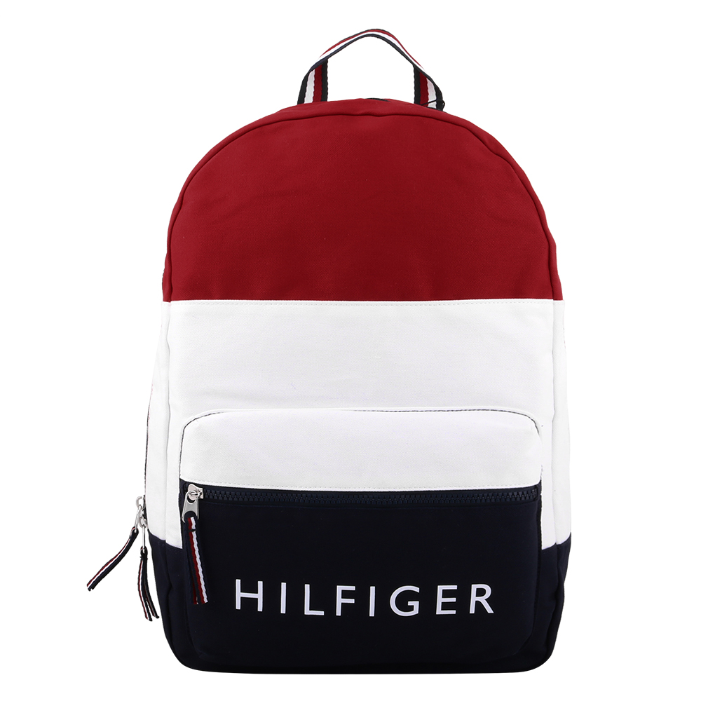 Home - TOMMY HILFIGER - 白字母標誌帆布手提後背包_紅x藍x白
