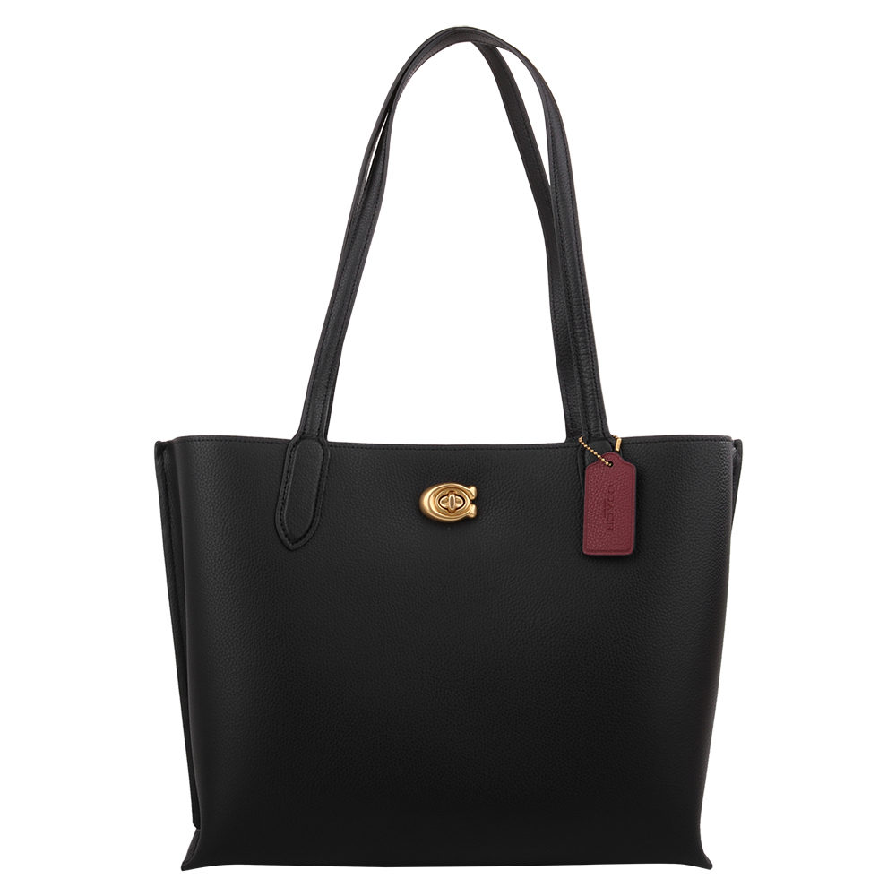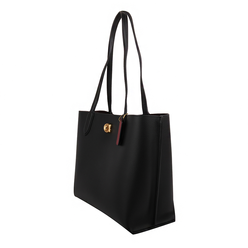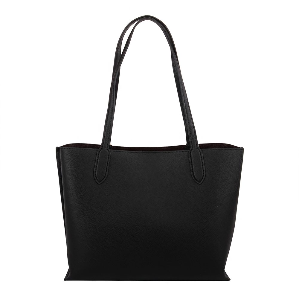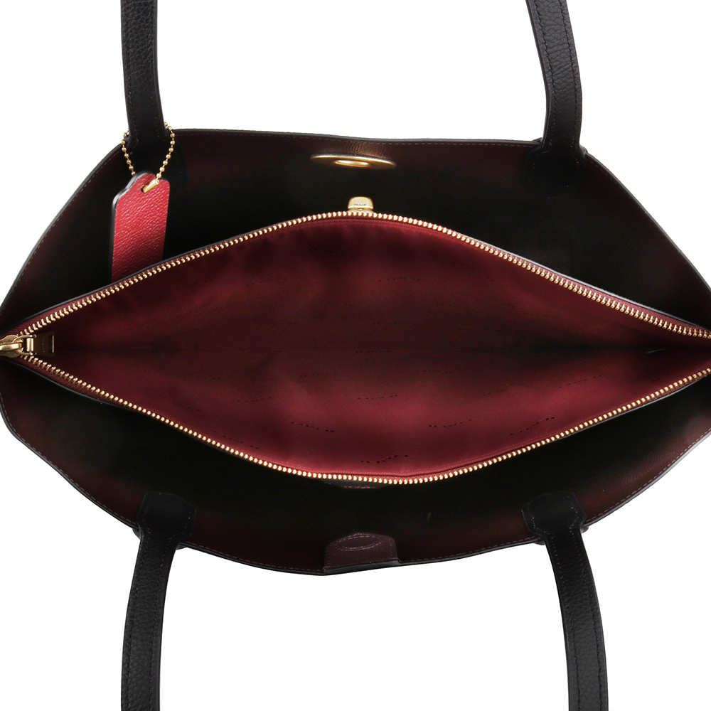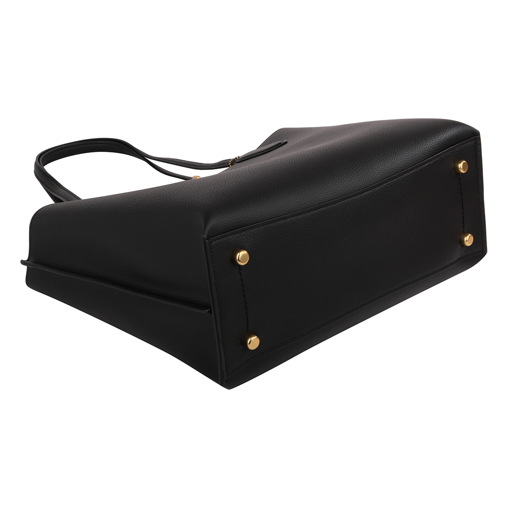 金馬車皮革拉鍊手提肩背三層托特包_黑色