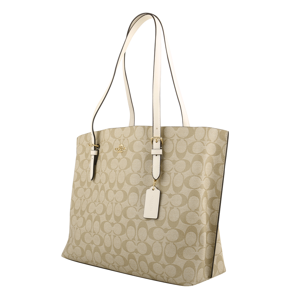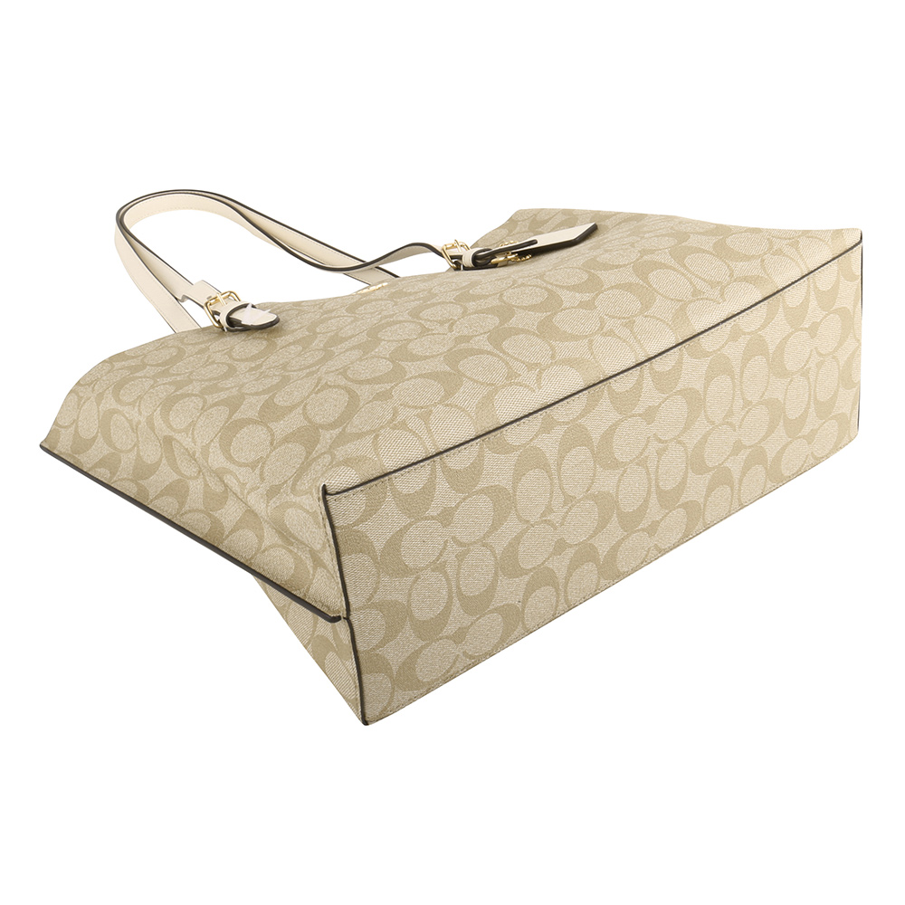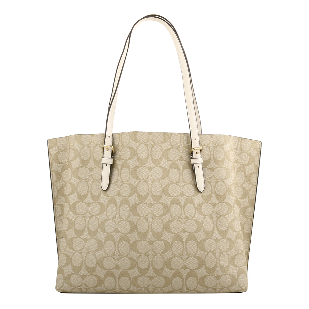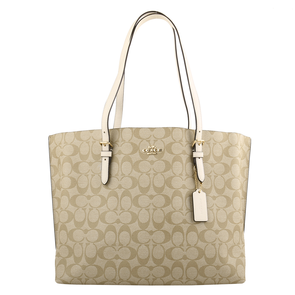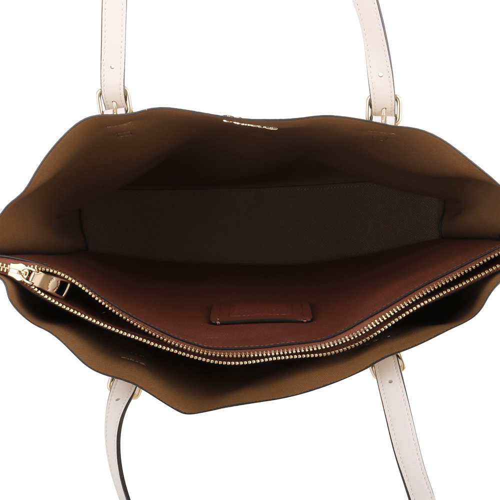 金馬車防刮LOGO三層肩背托特包(大)_淺卡其x白邊