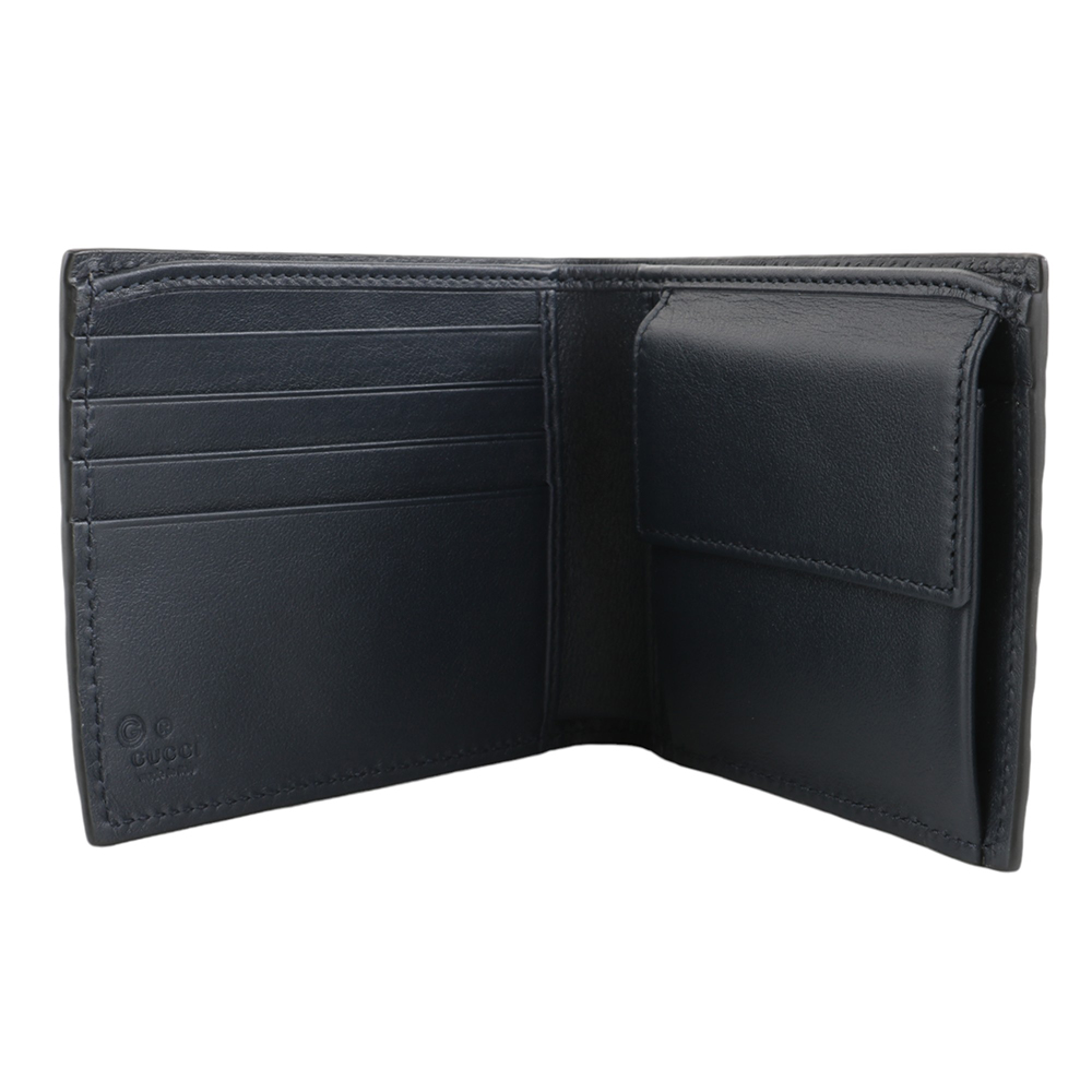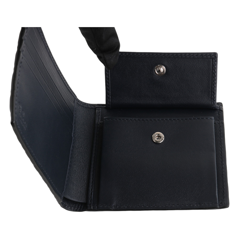 壓印皮革附零錢袋短夾(午夜藍)