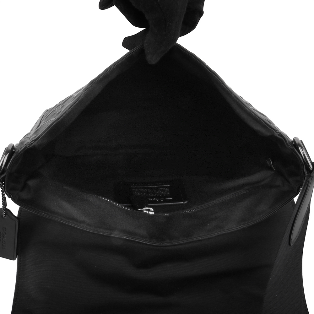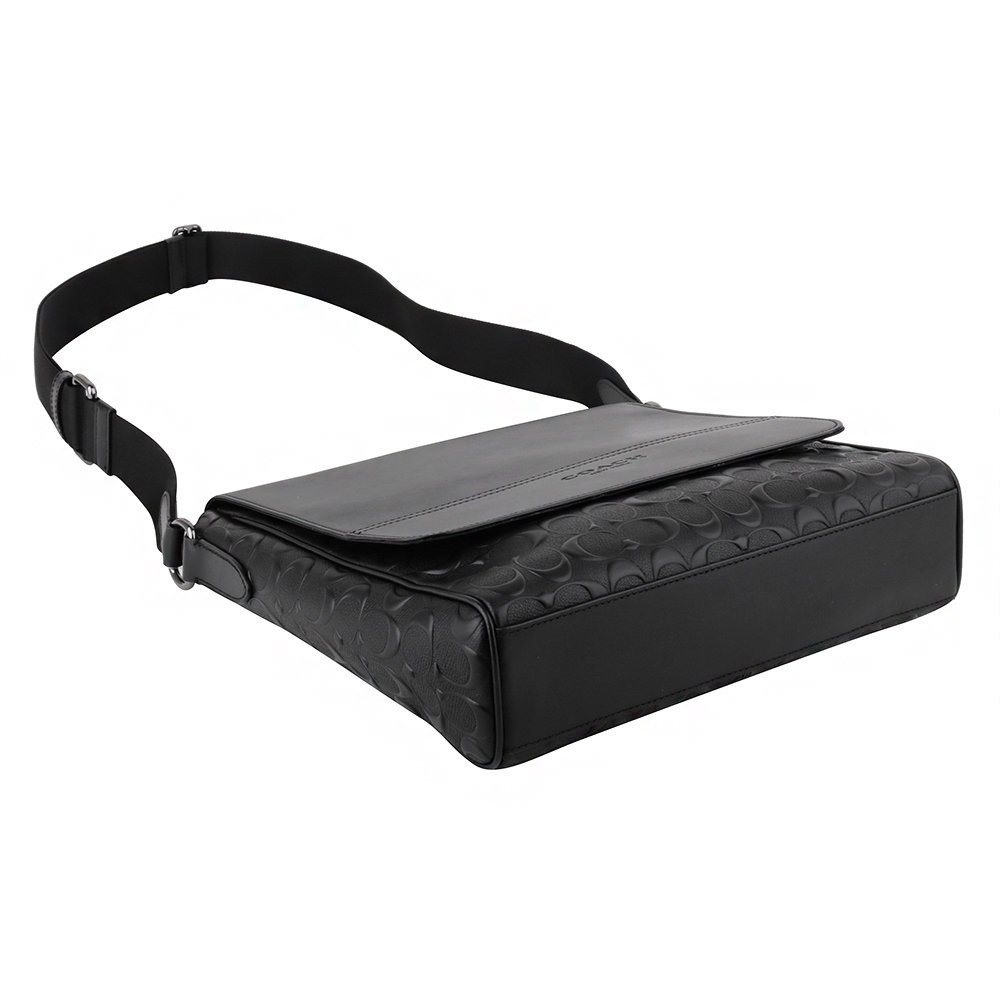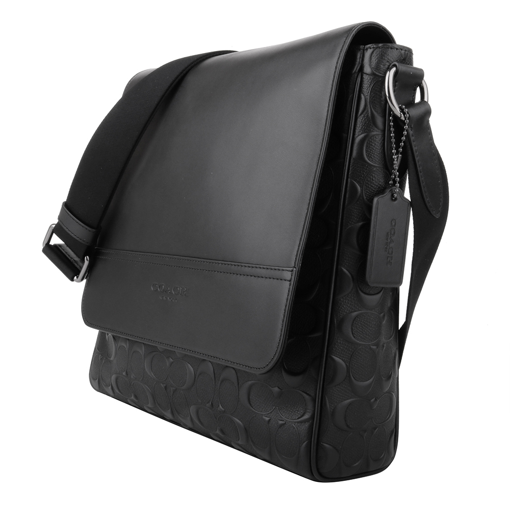 COACH-壓印LOGO防刮皮革磁釦直式斜背包