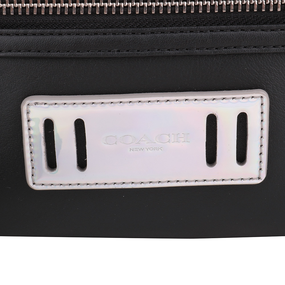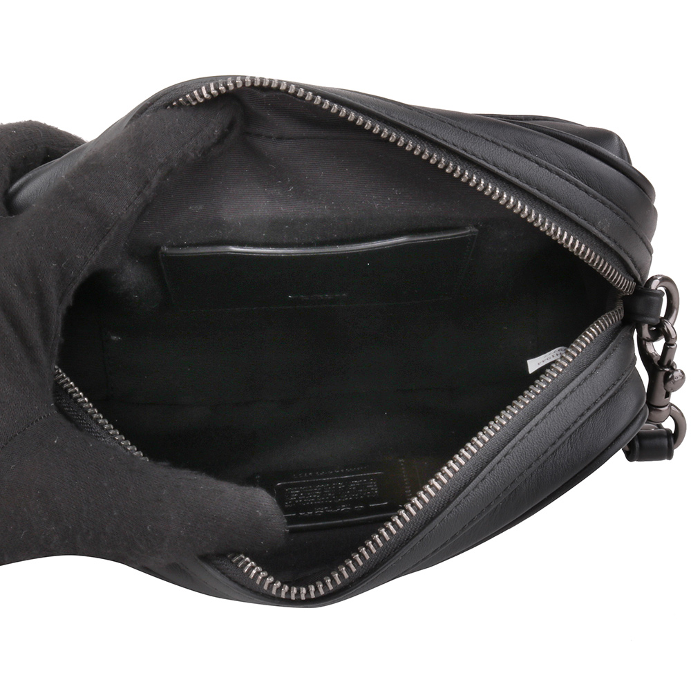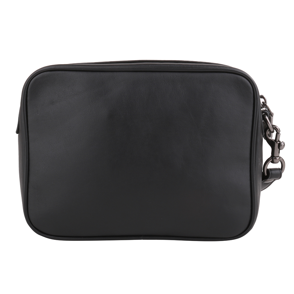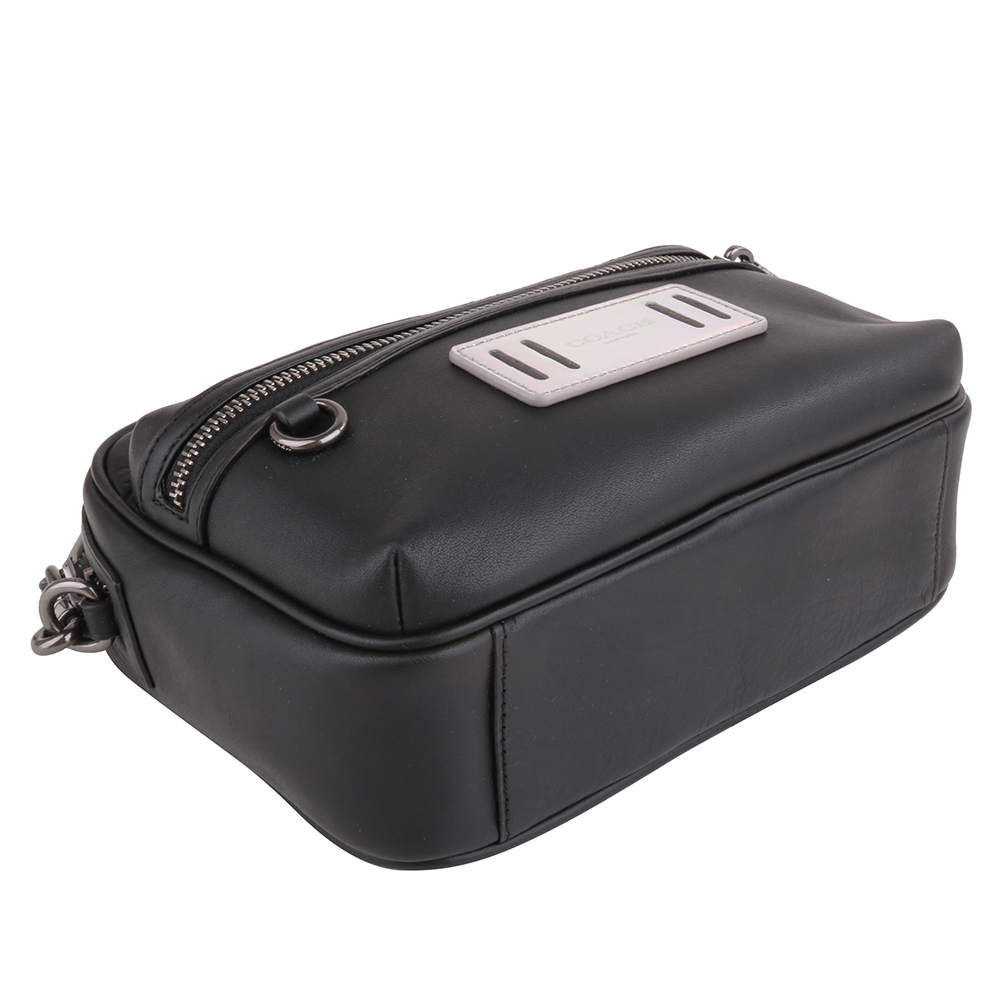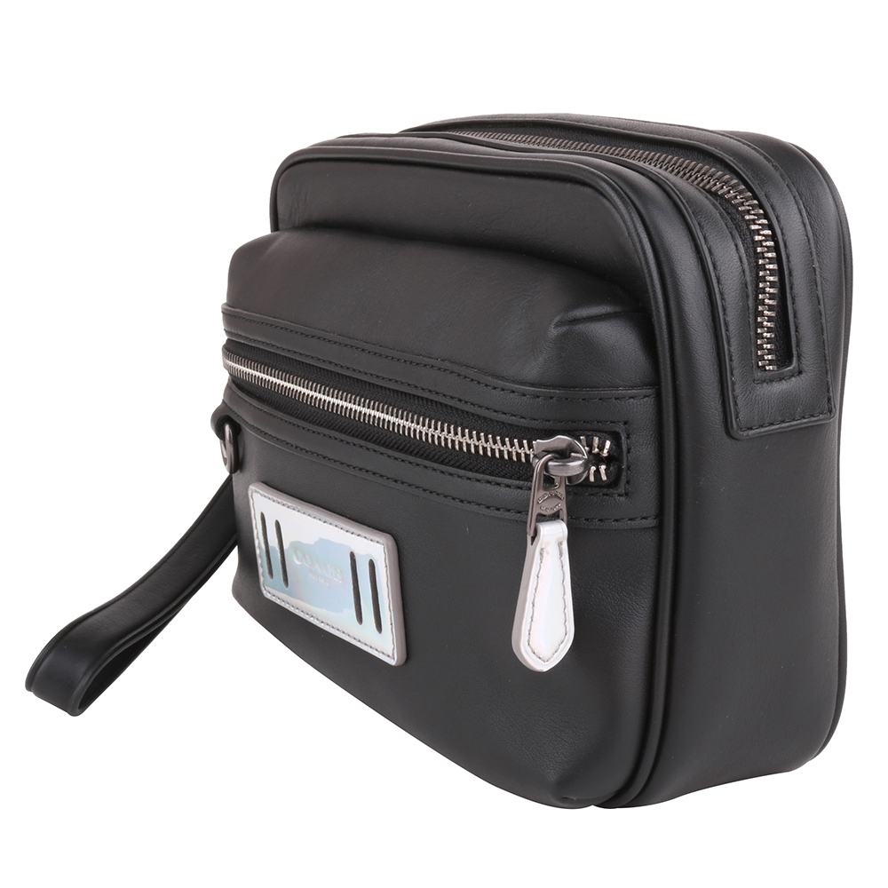 COACH-皮標LOGO素面皮革掛帶大手拿包