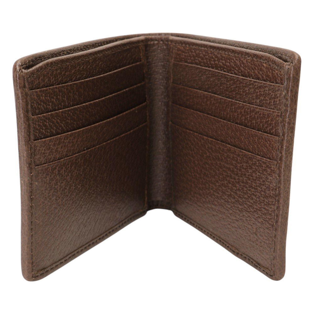緹花布皮革邊對開8卡短夾/深卡其