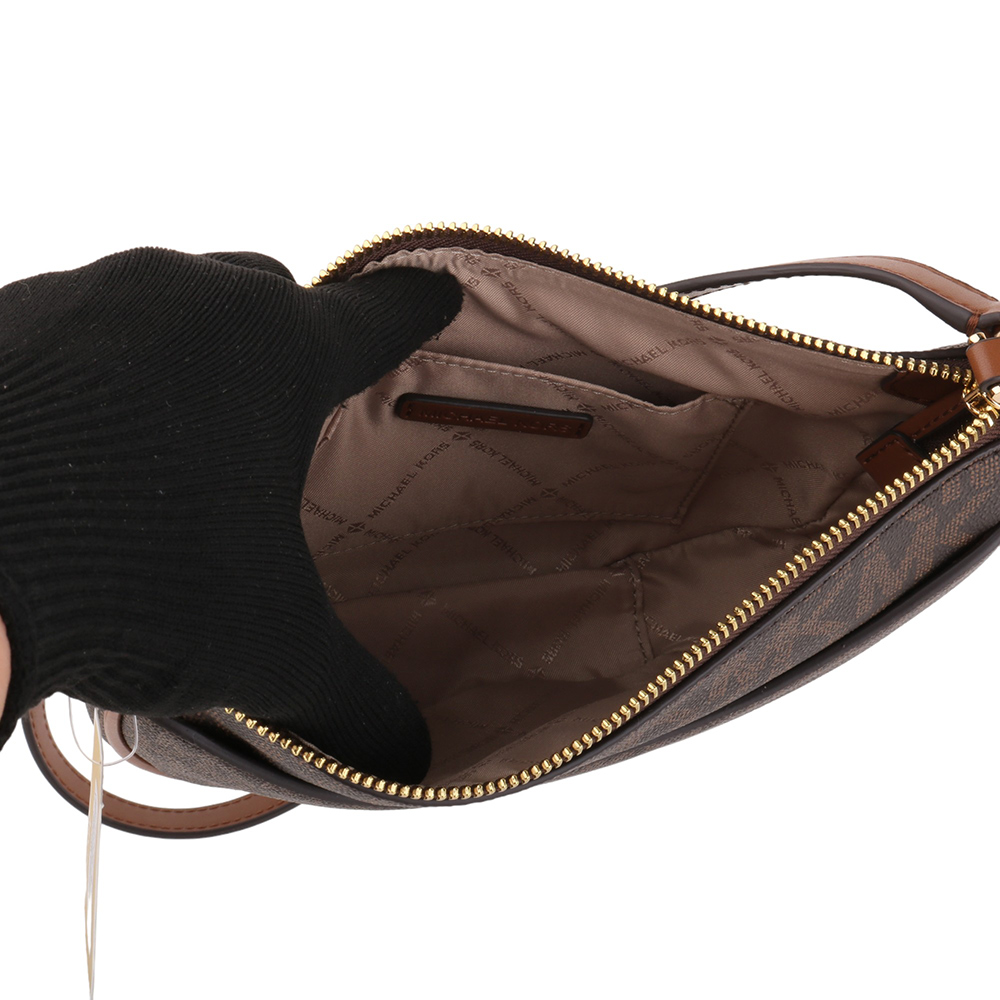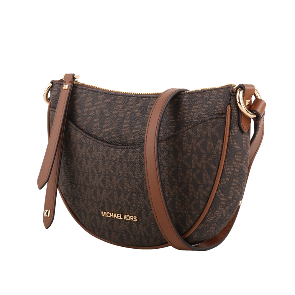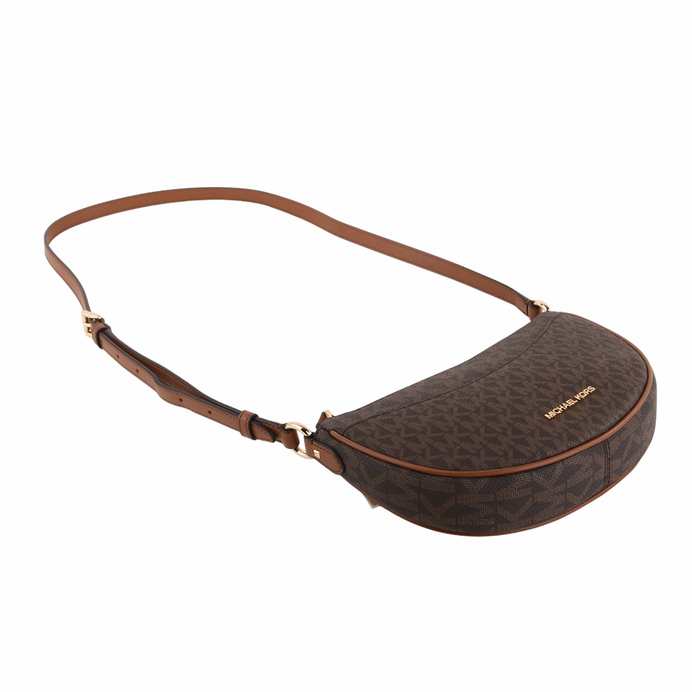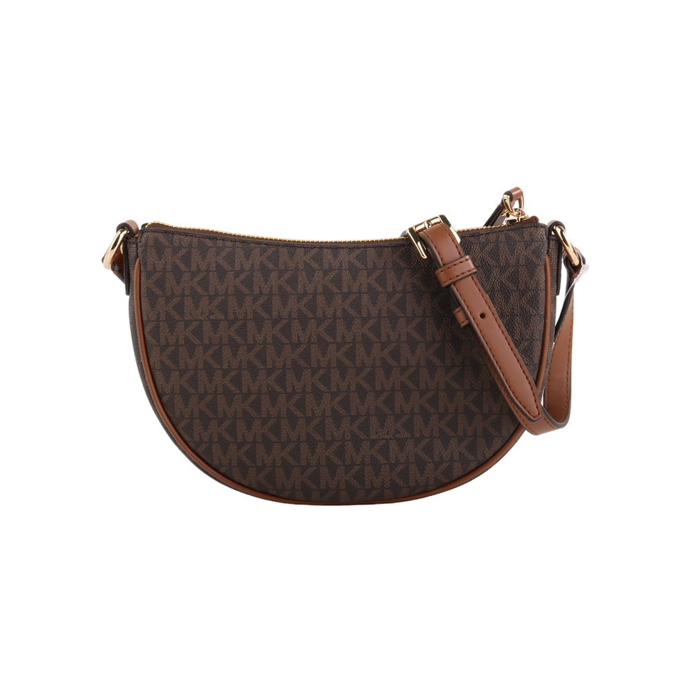 金字滿版防刮LOGO半月型斜背包 深咖S