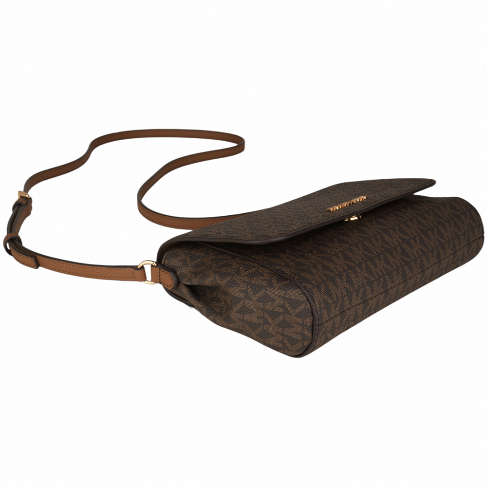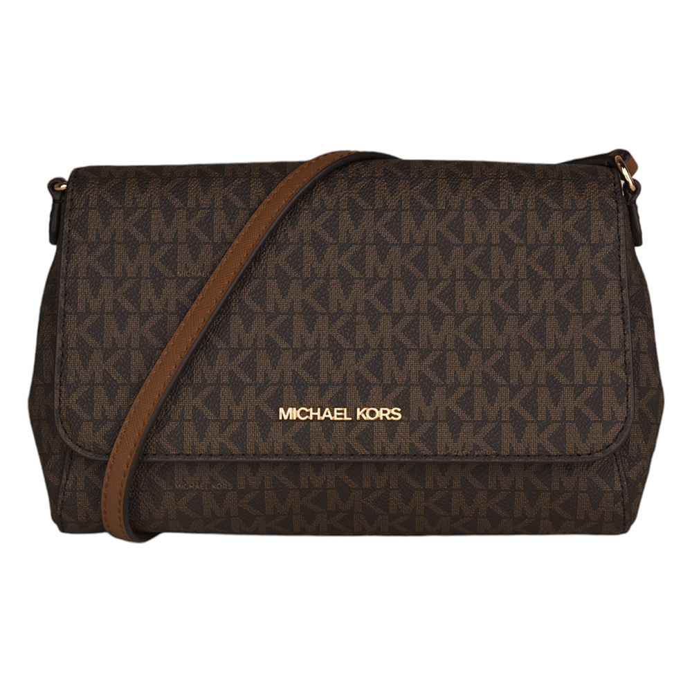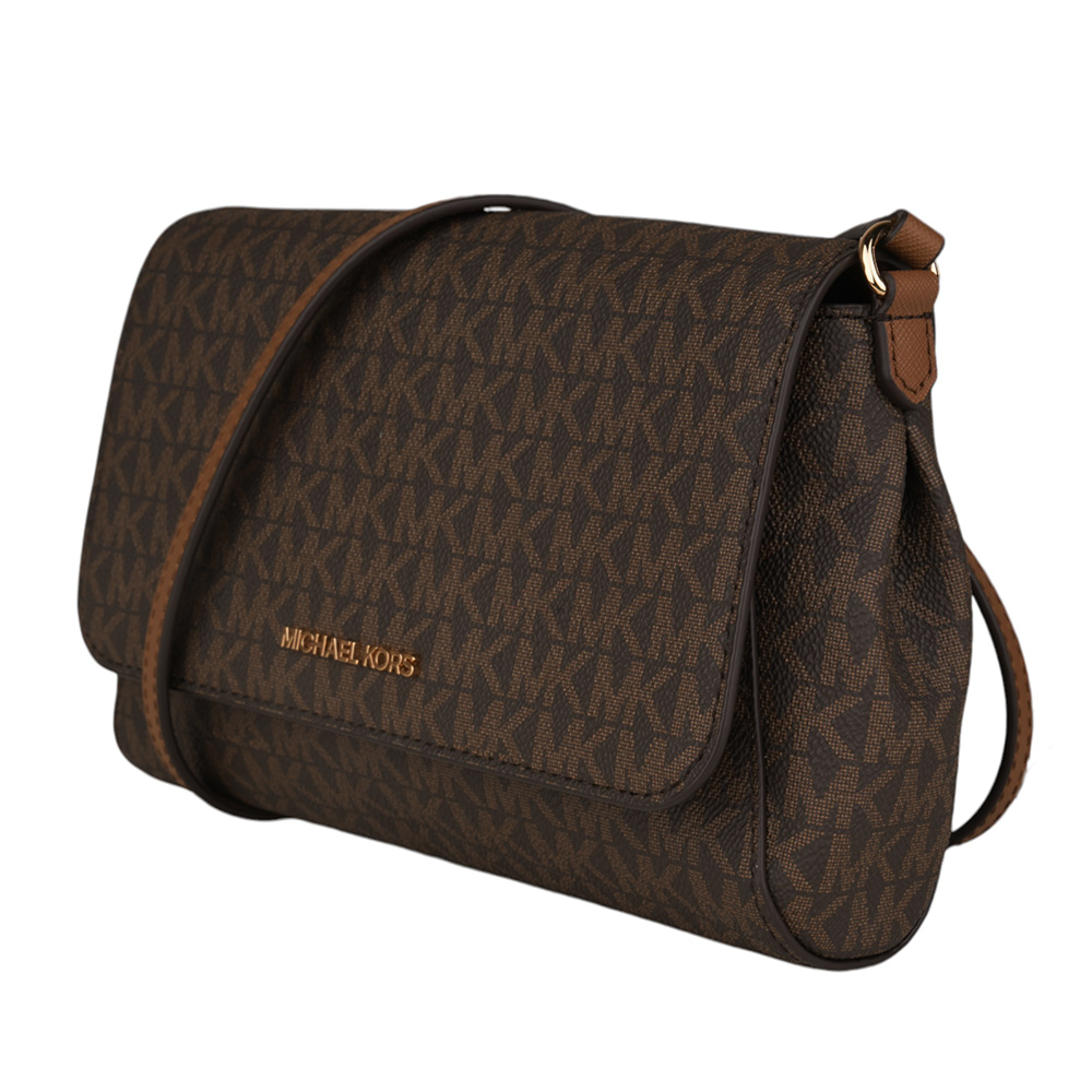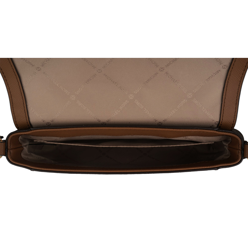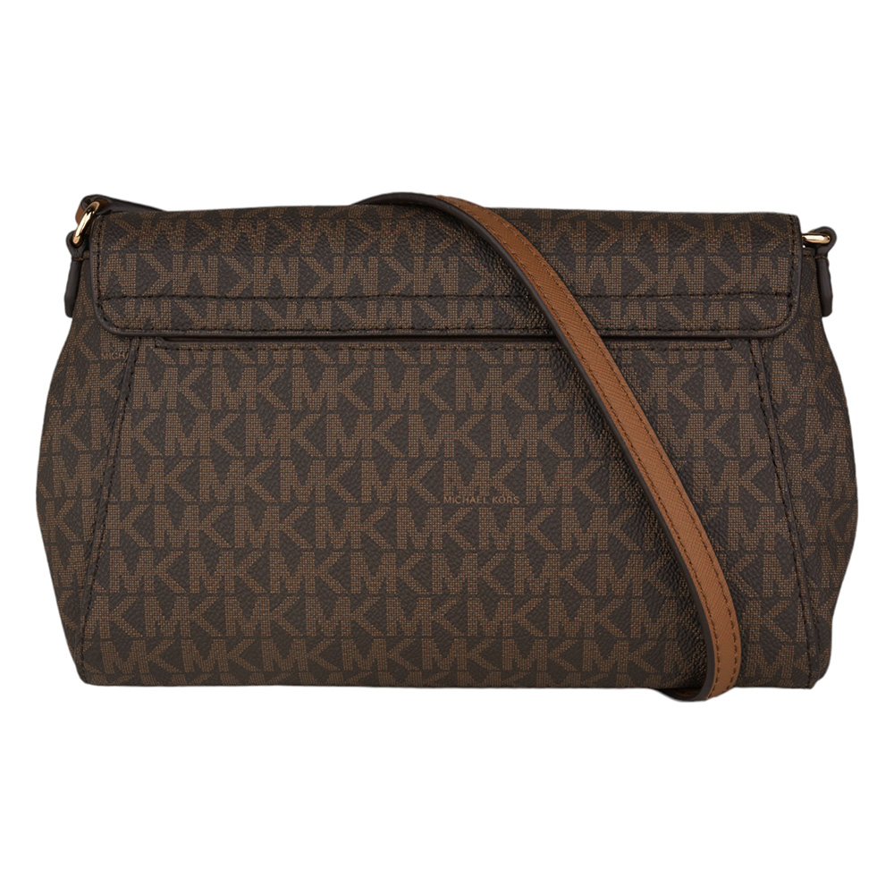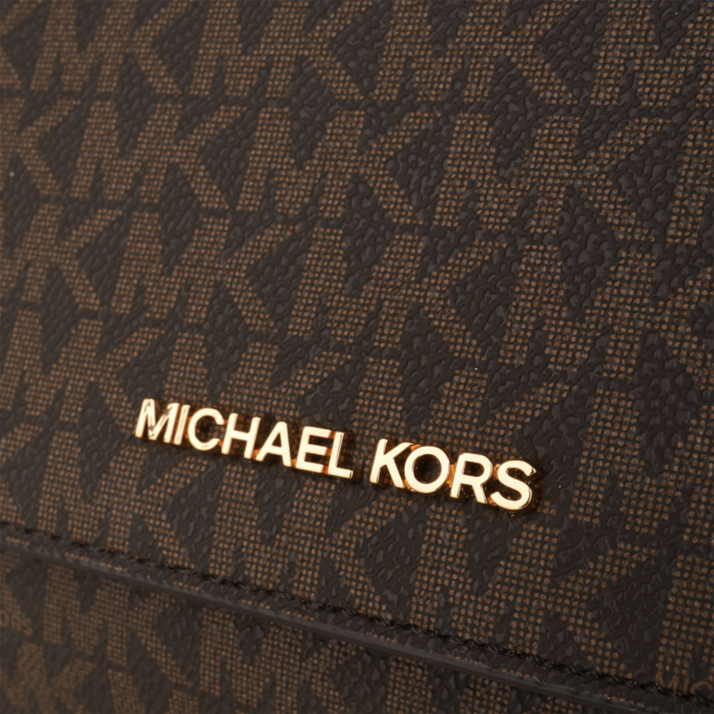 金字滿版MK皮革釦式斜背扁包 深咖S