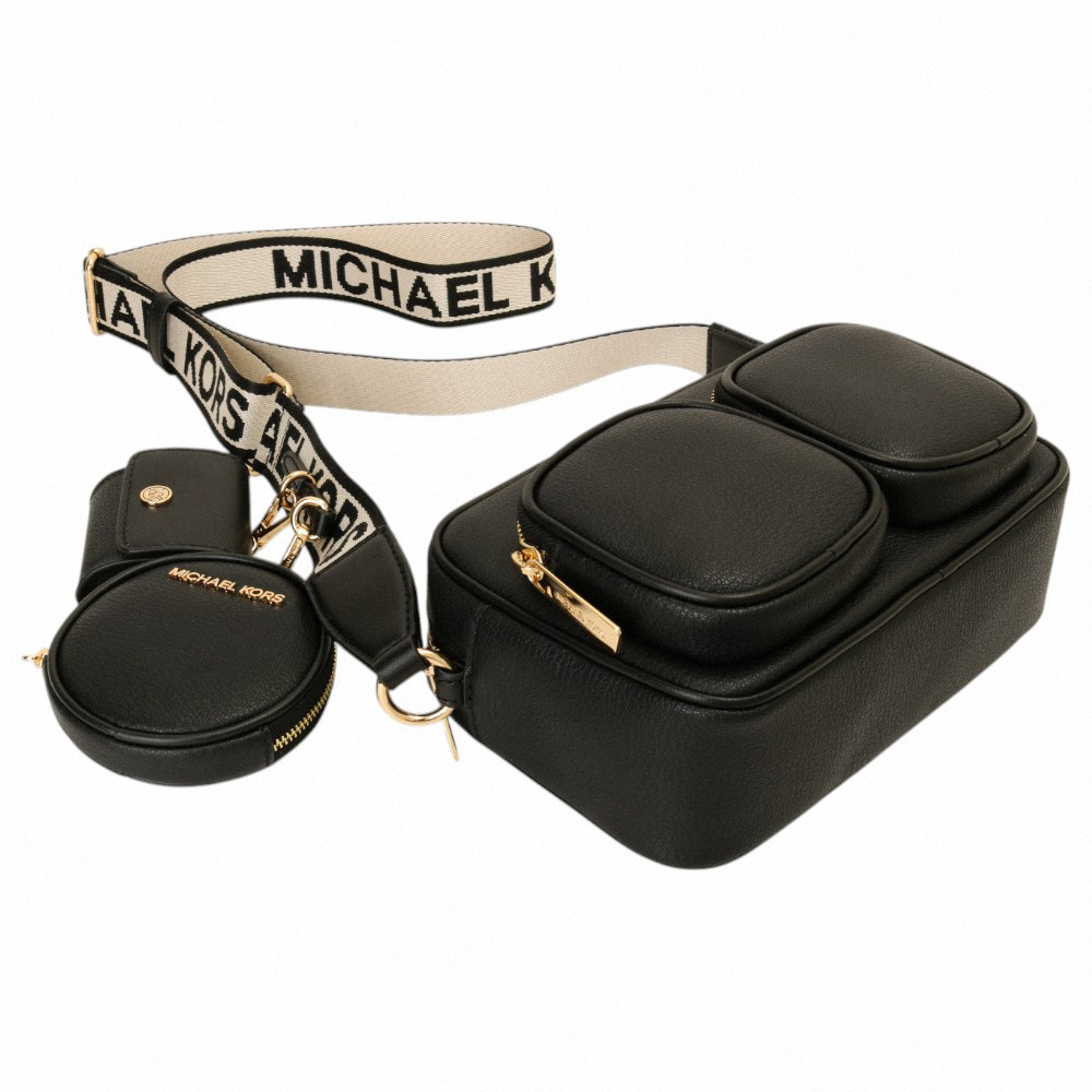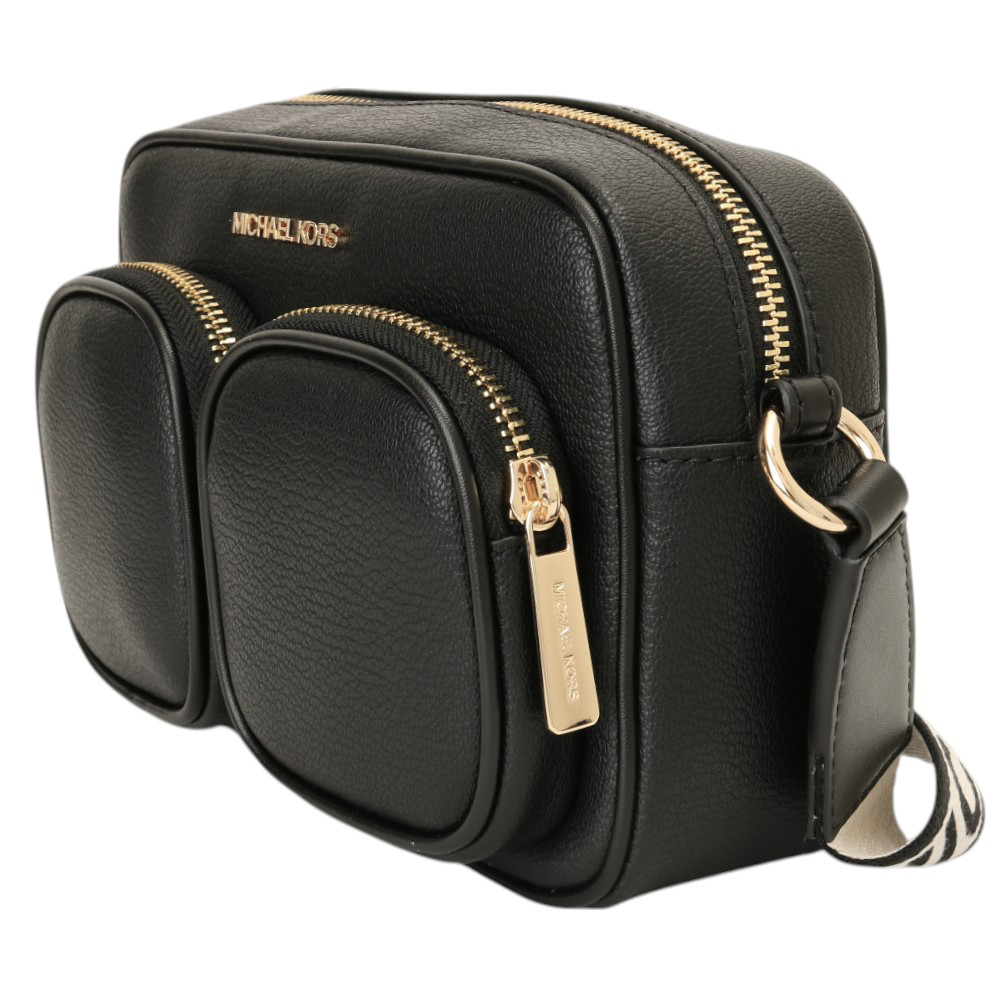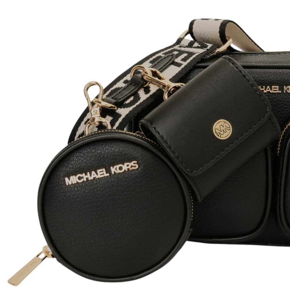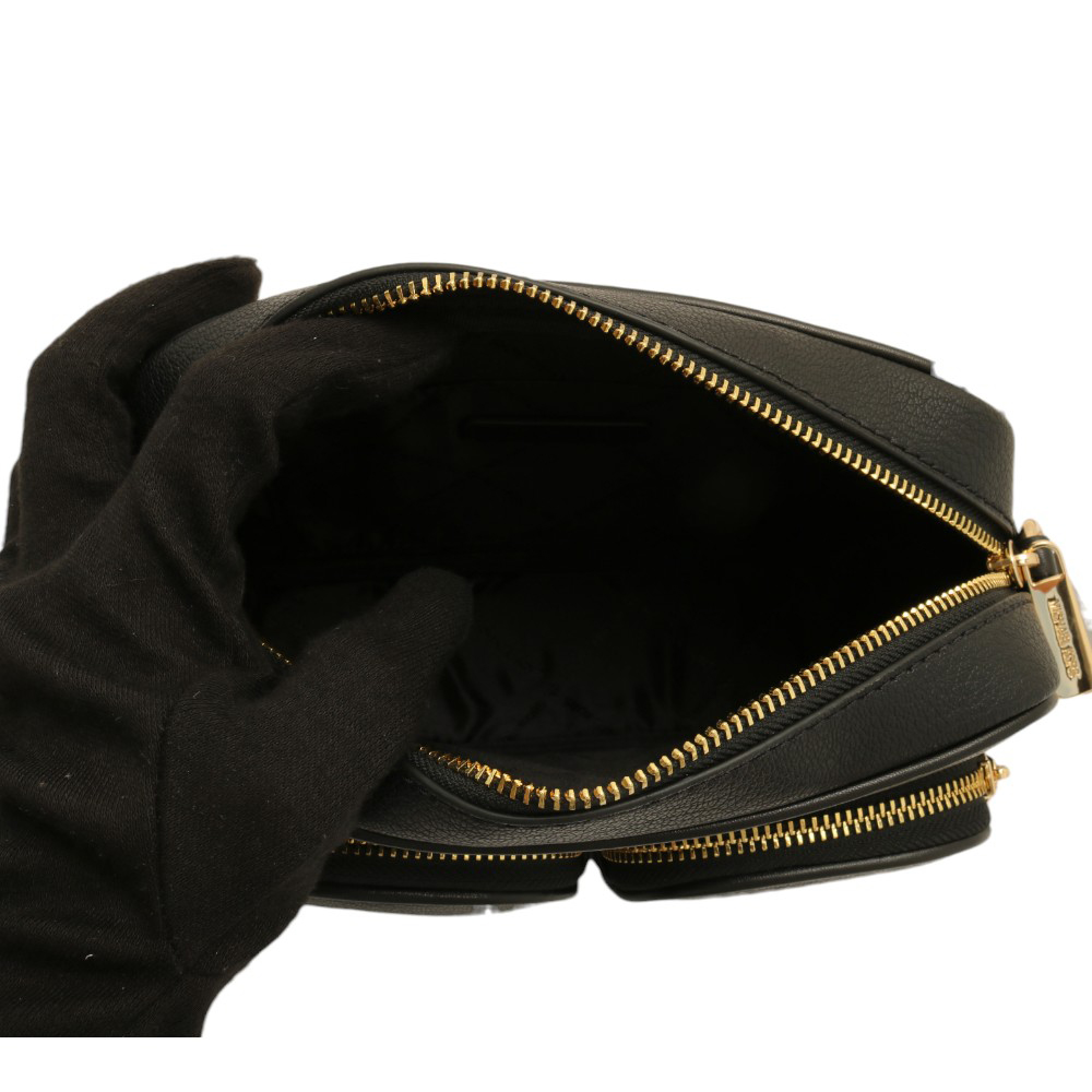 金字荔枝紋皮革附零錢包斜背包 (黑)S