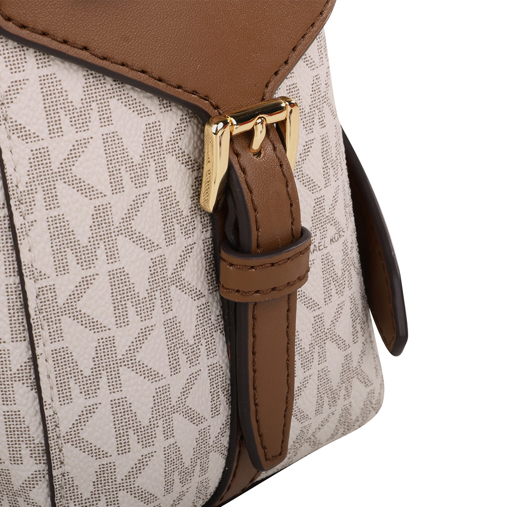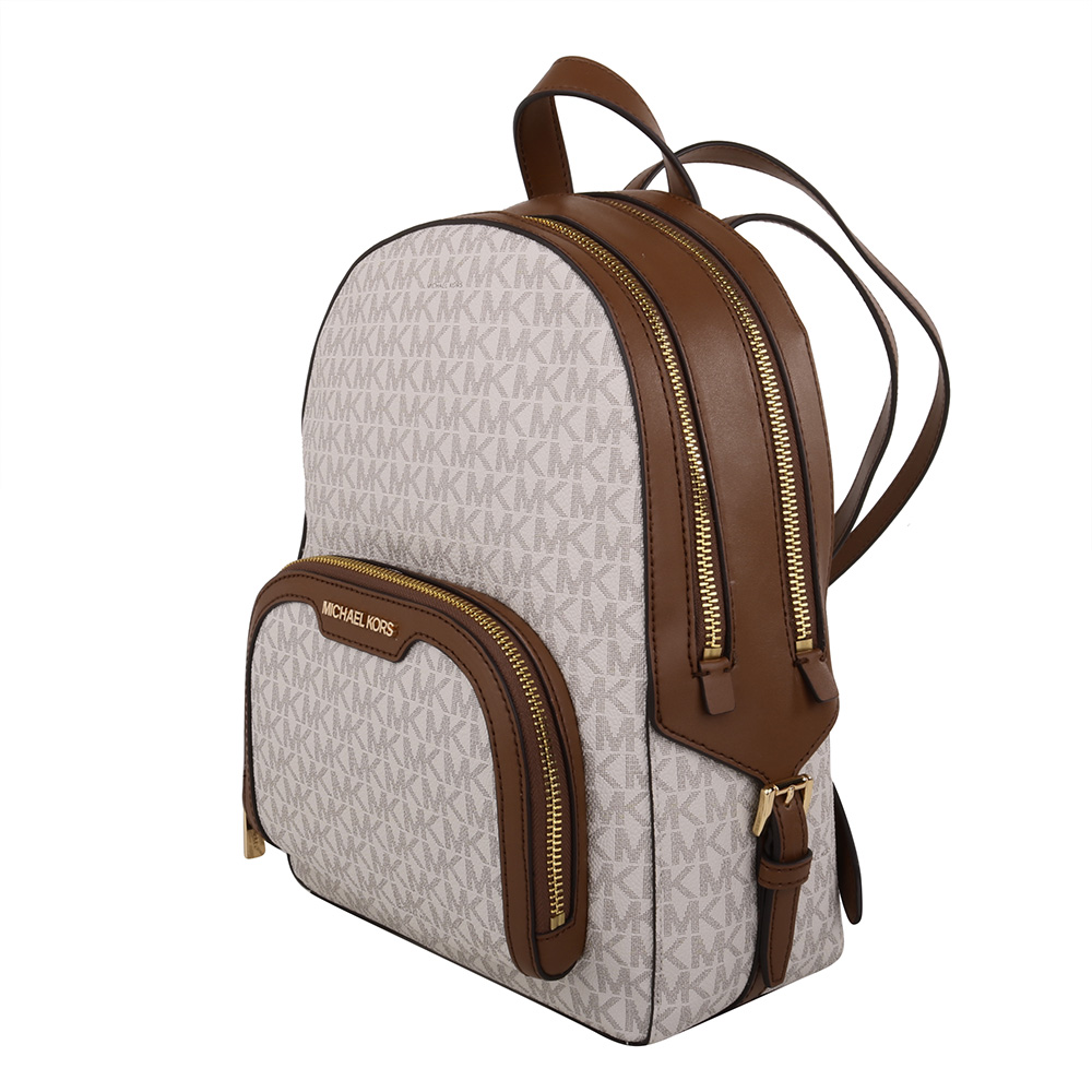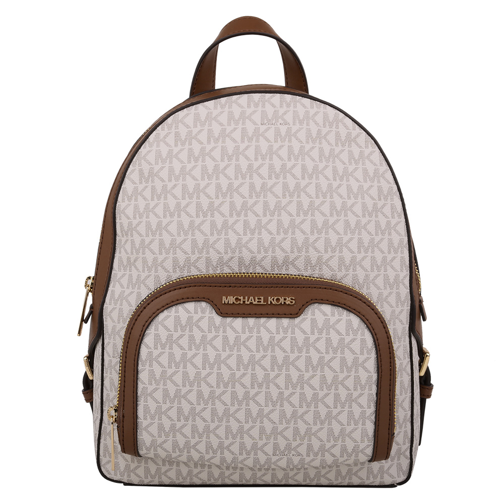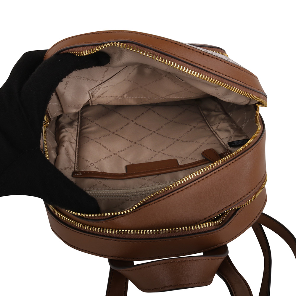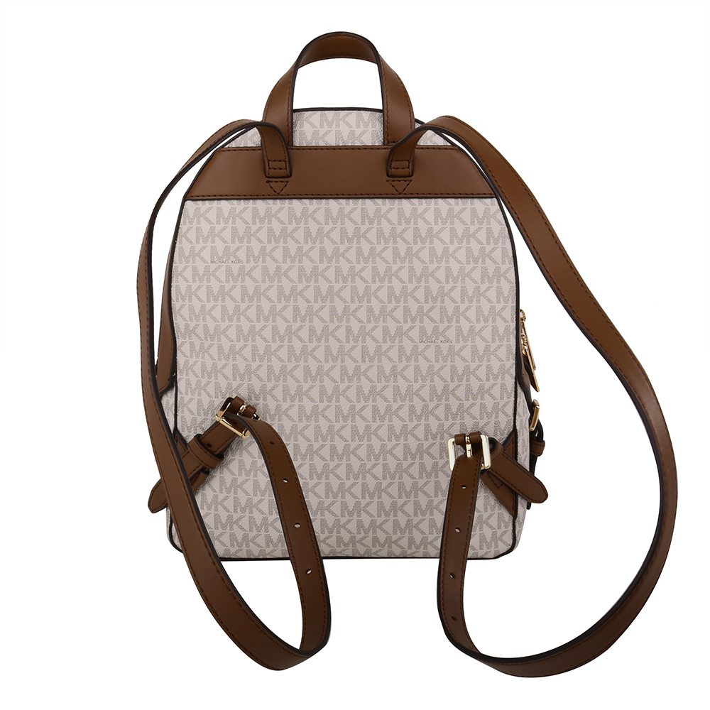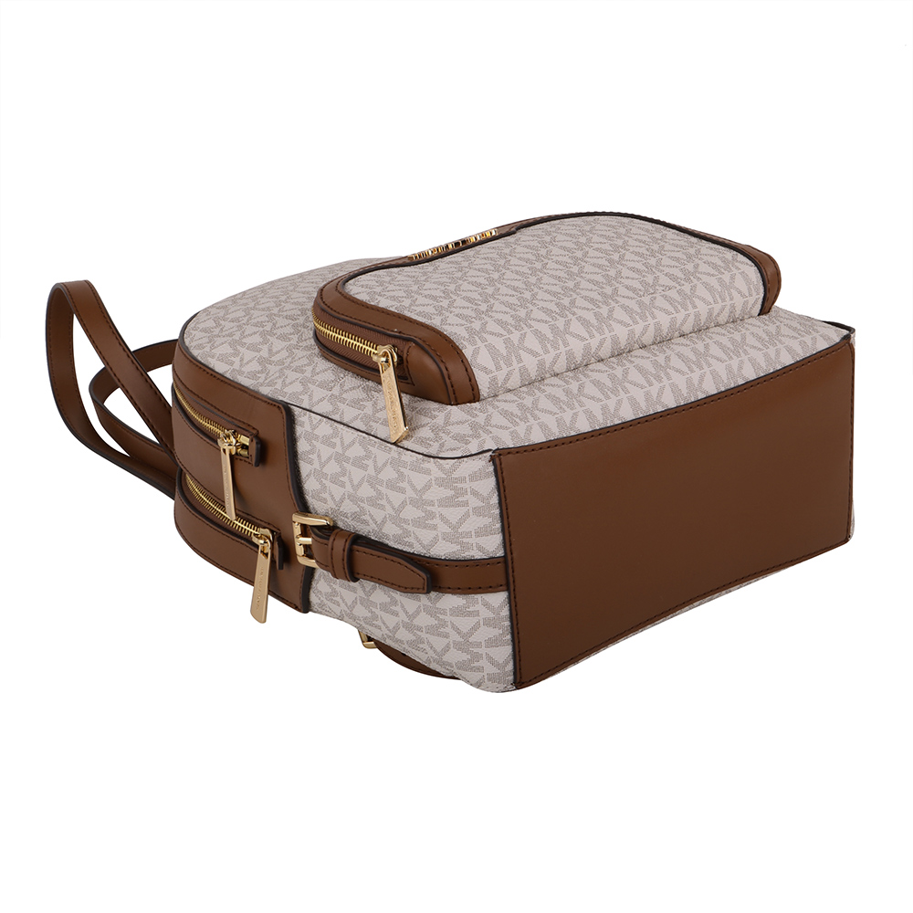 金字防刮皮飾邊雙拉鍊後背包 米x駝/小