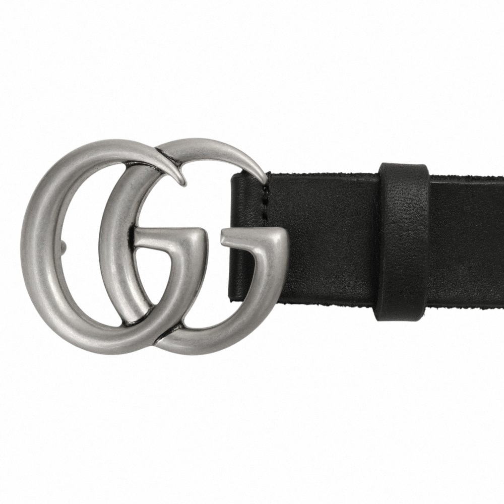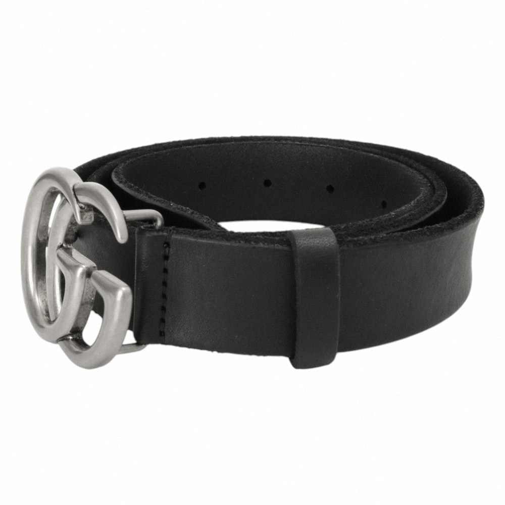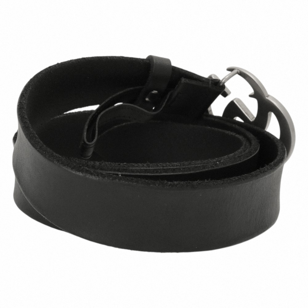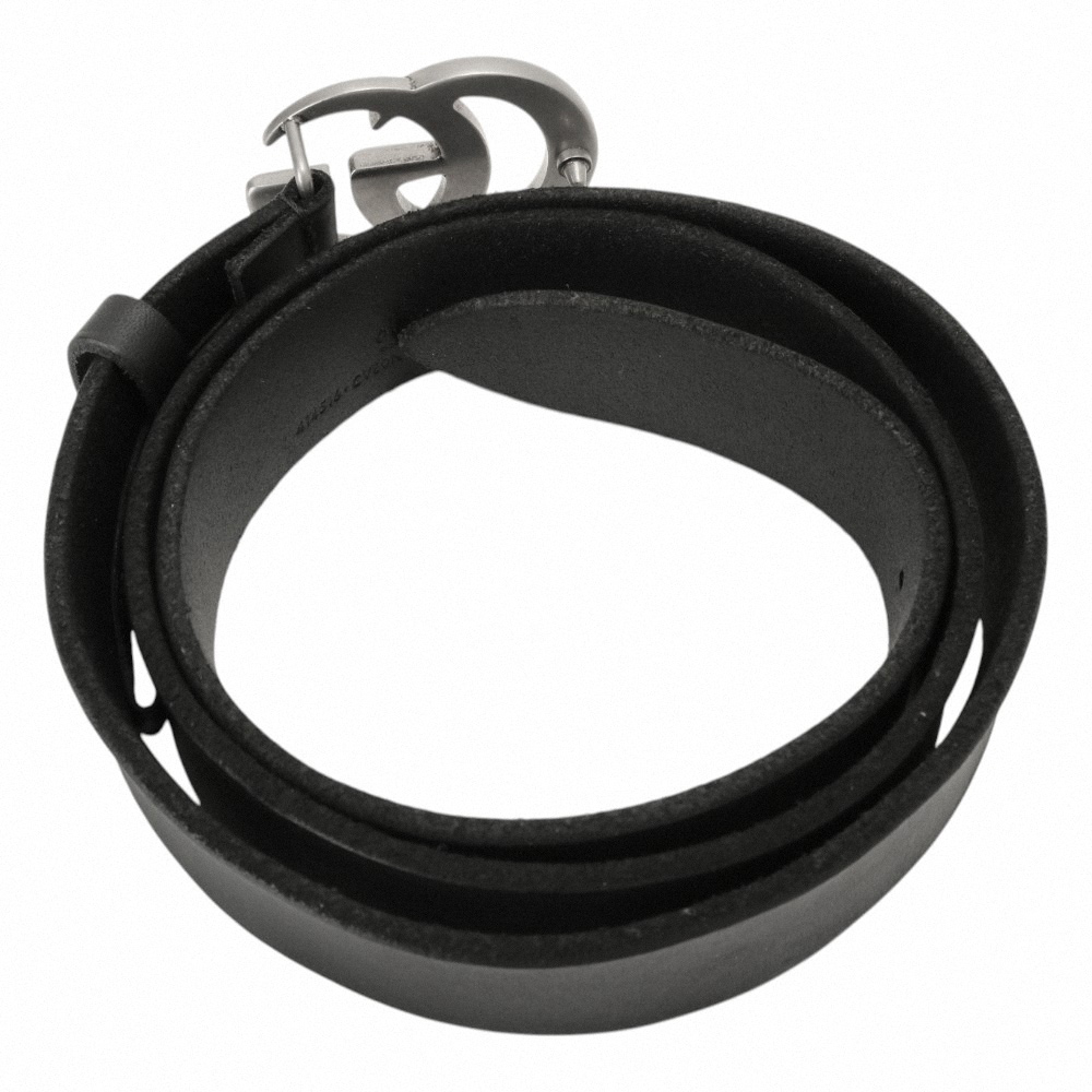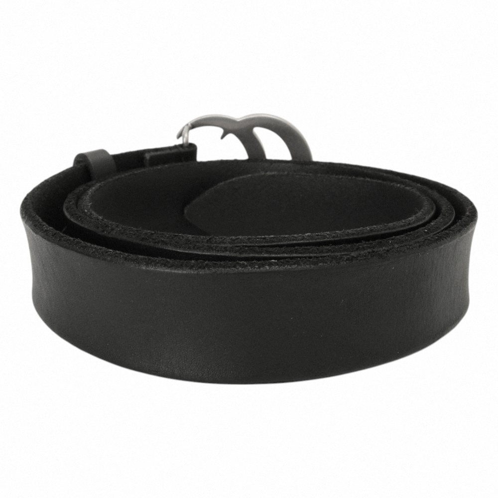 金屬銀雙G LOGO 牛皮革男版皮帶(黑)95cm