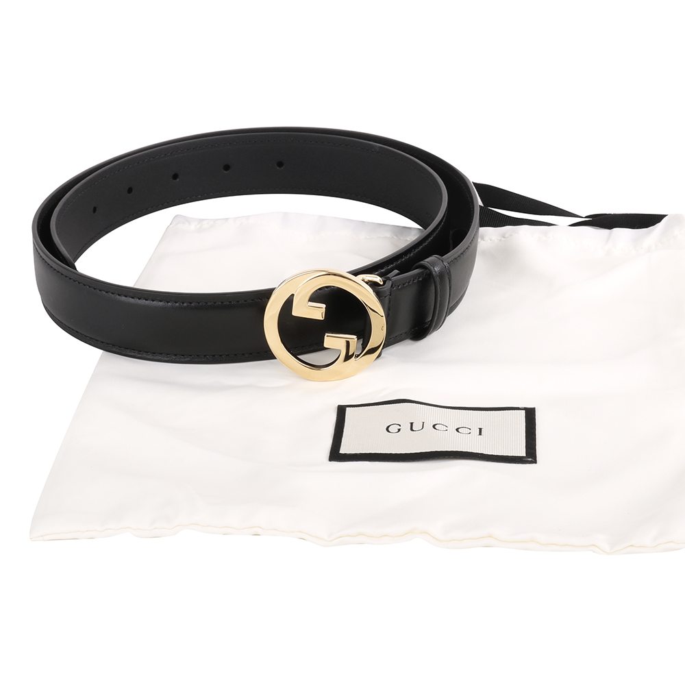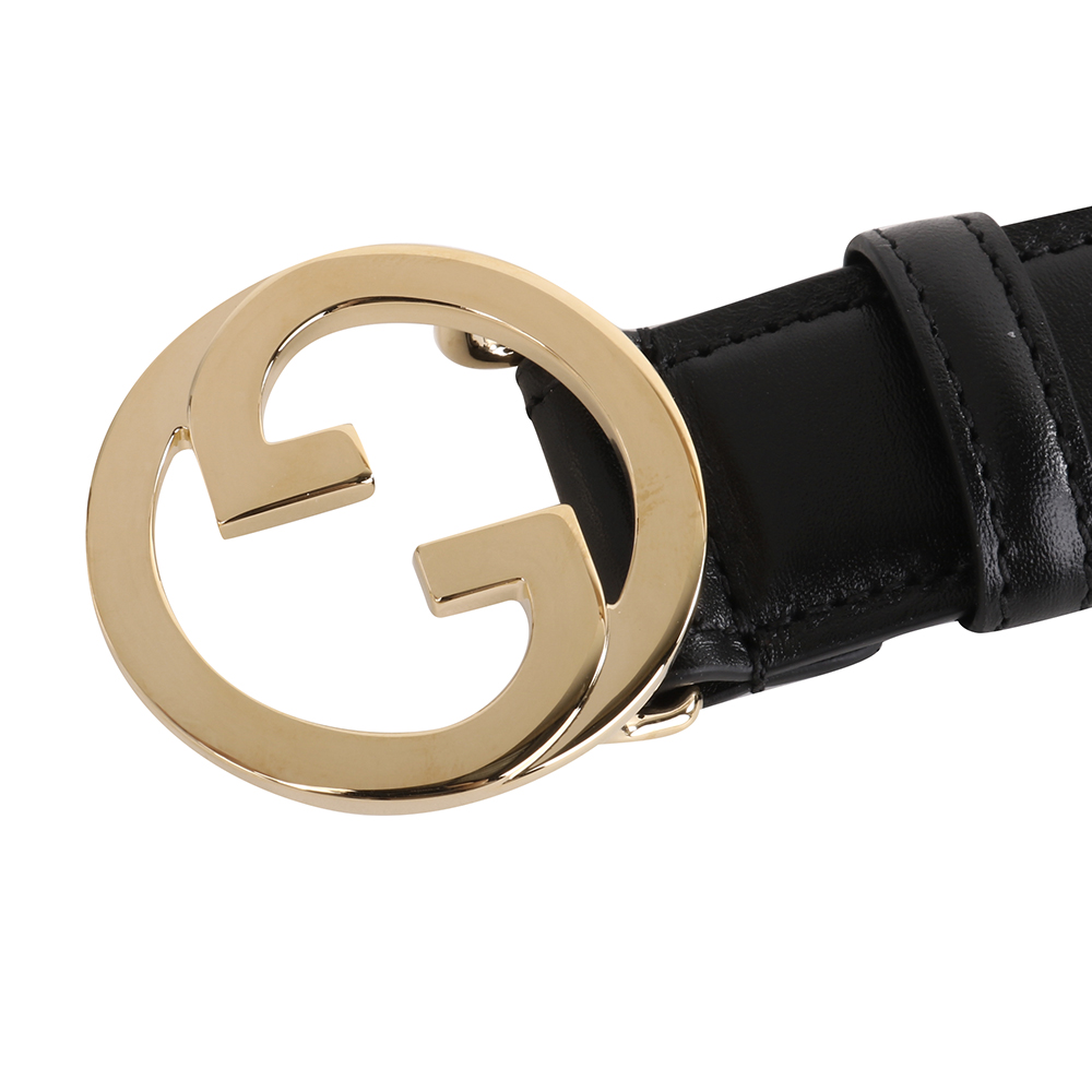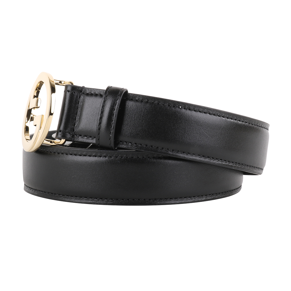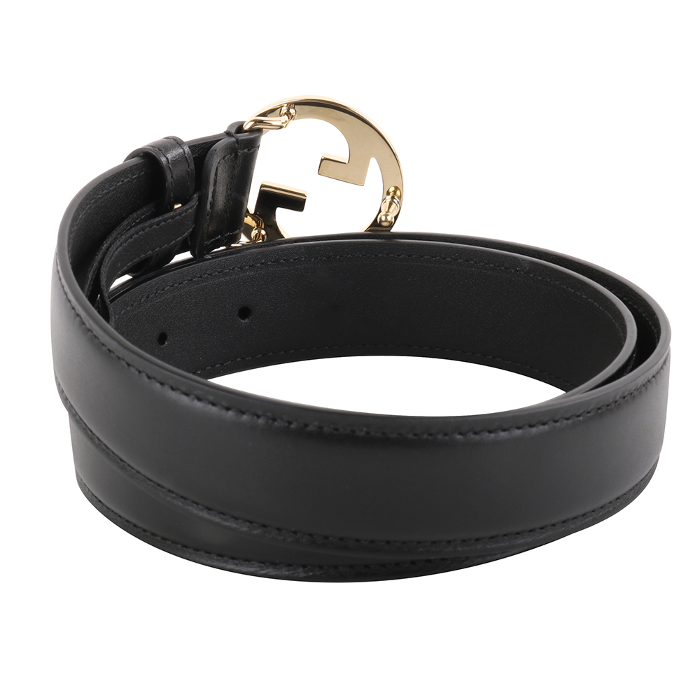 金屬雙G 牛皮革女款皮帶(黑)80cm