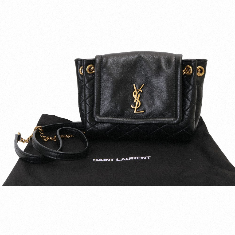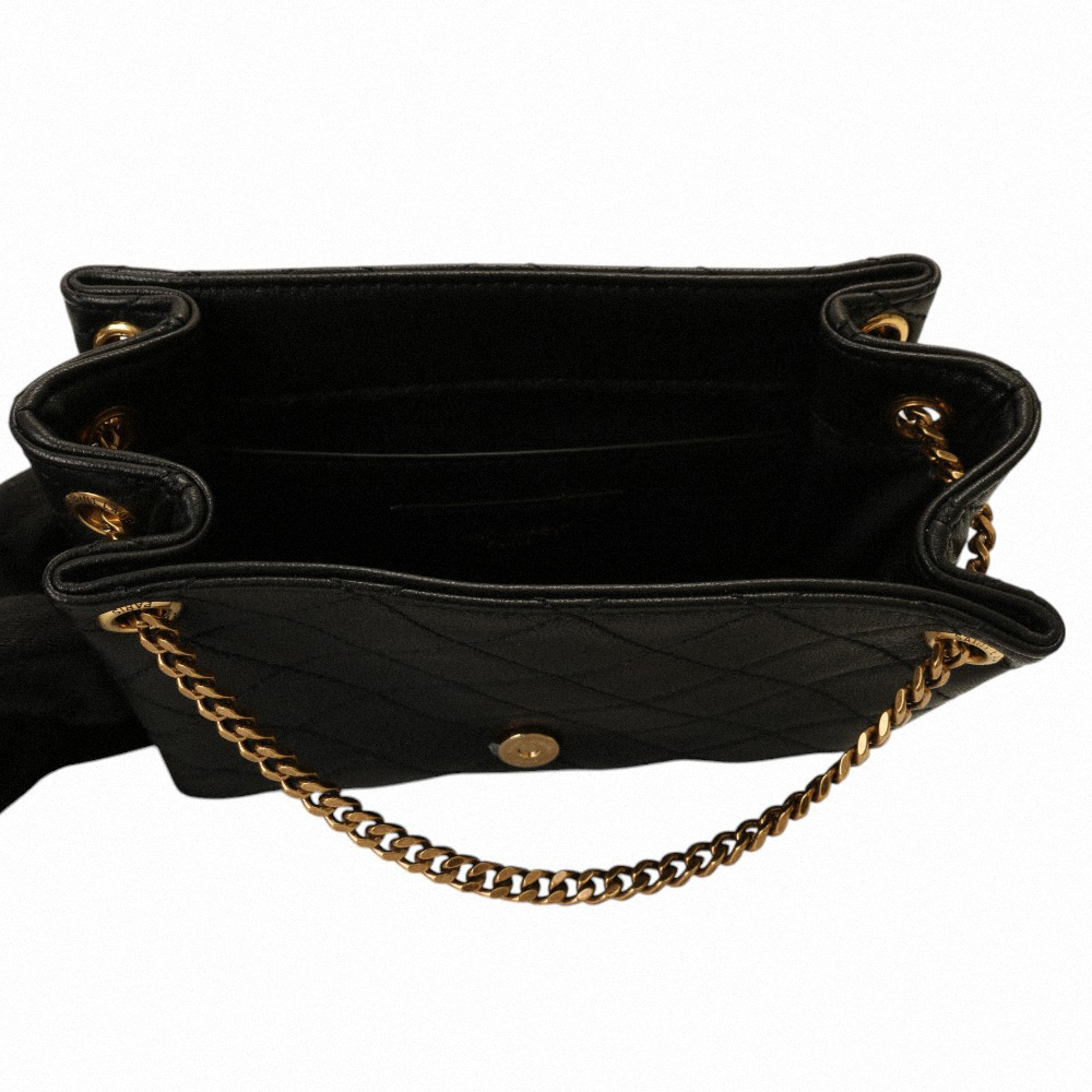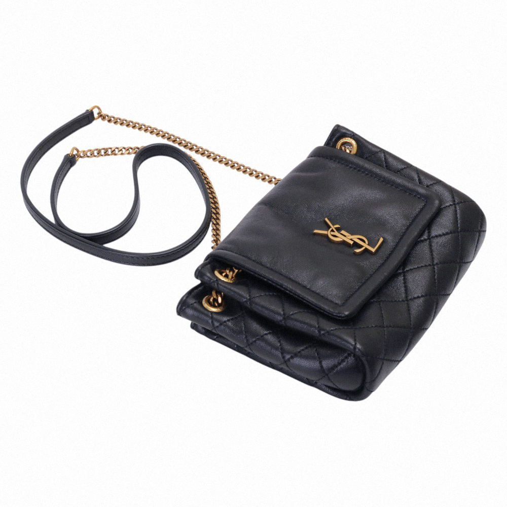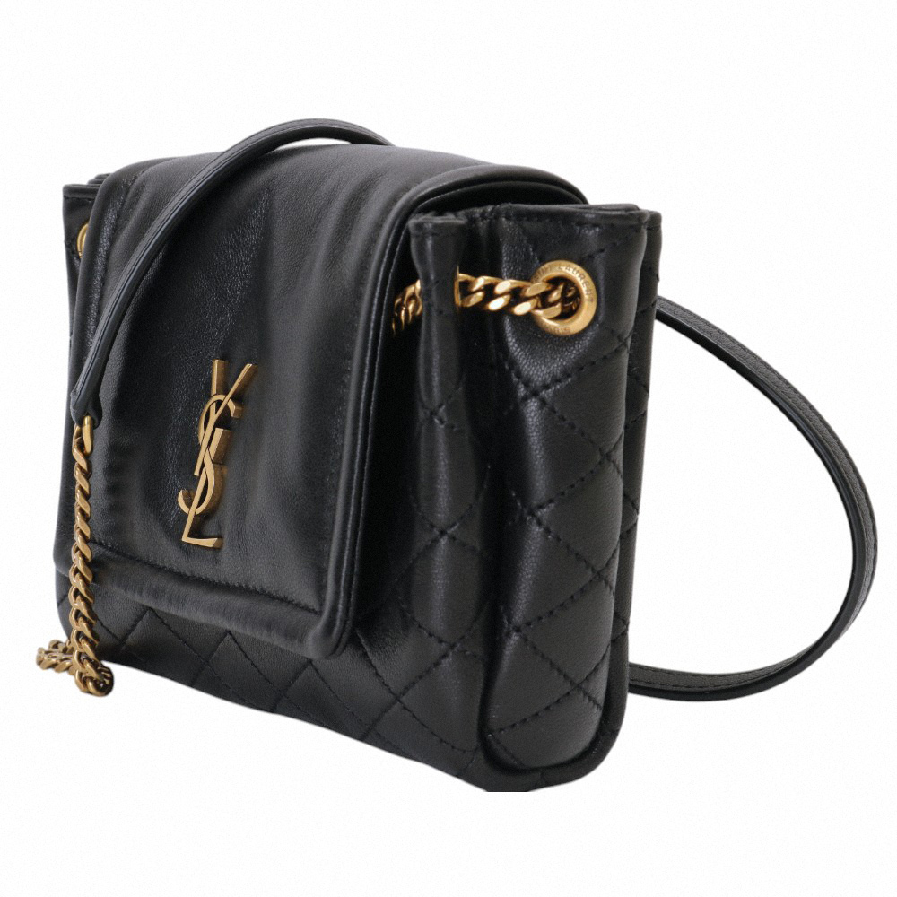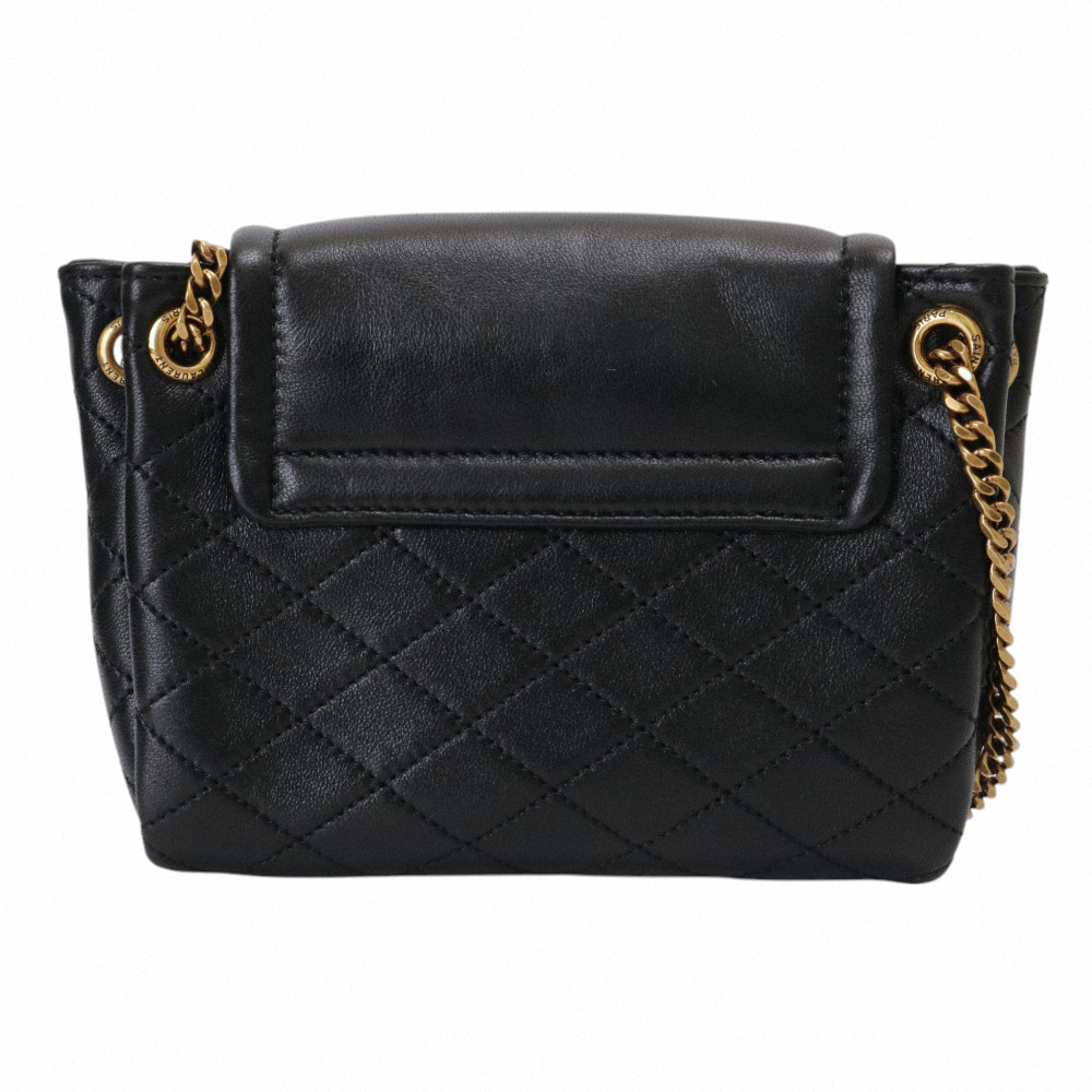 金屬LOGO 菱格小羊皮鍊帶肩背包(黑)