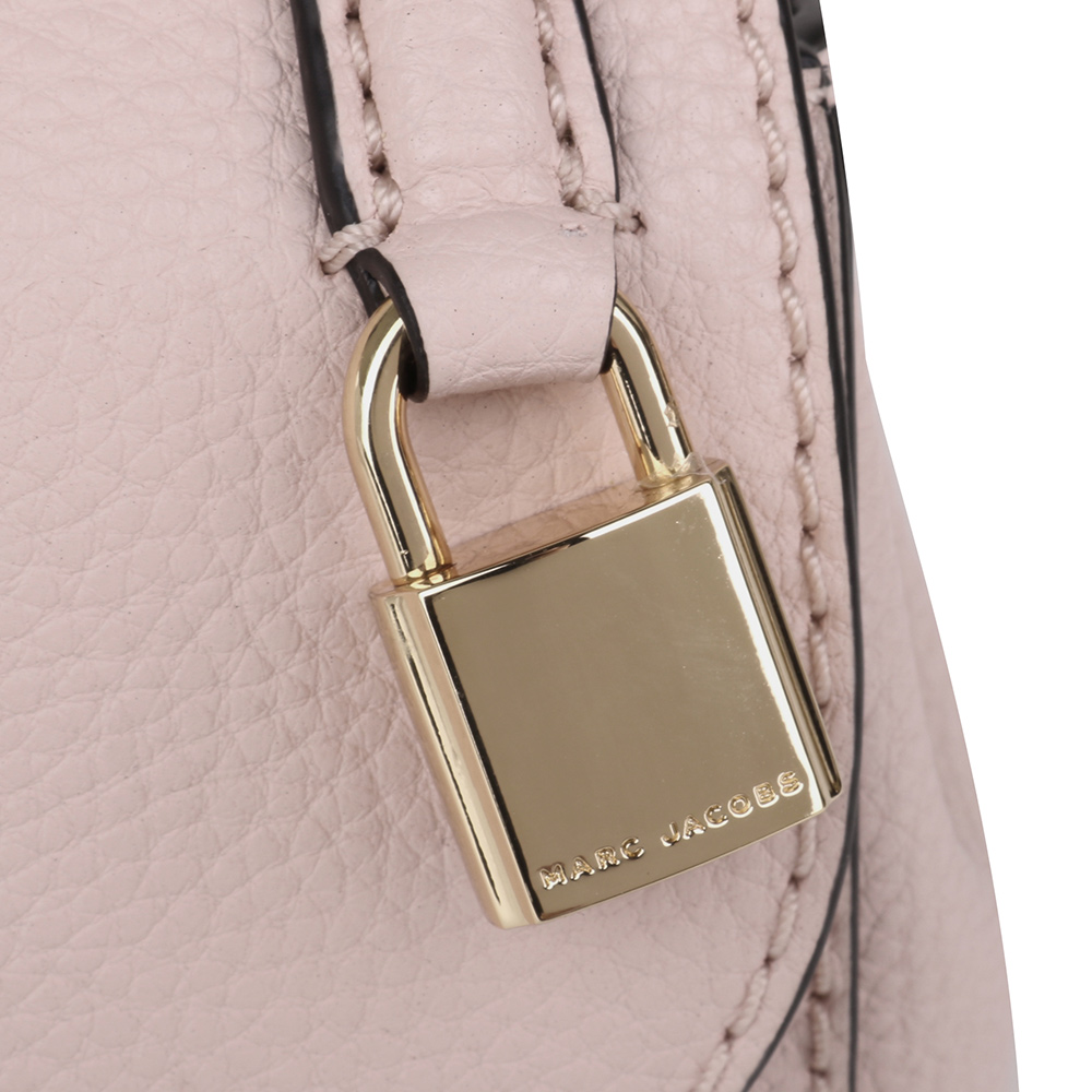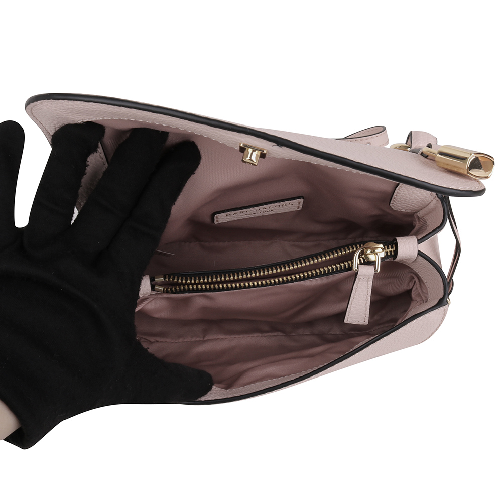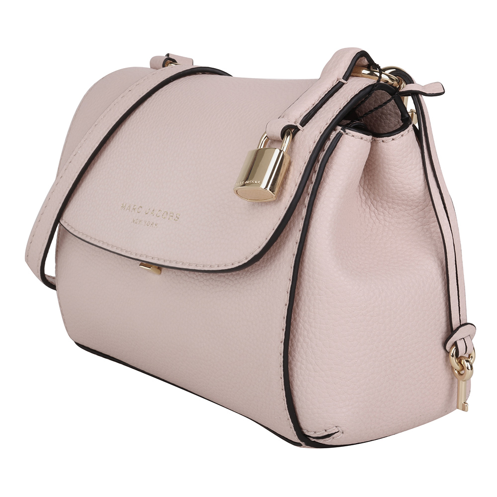 金鎖頭吊飾翻釦皮革斜背包(小)_粉色