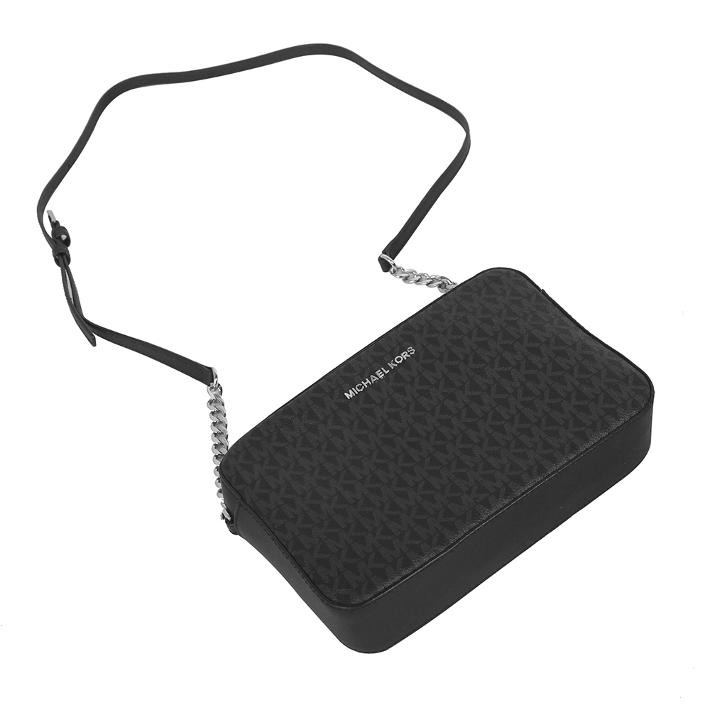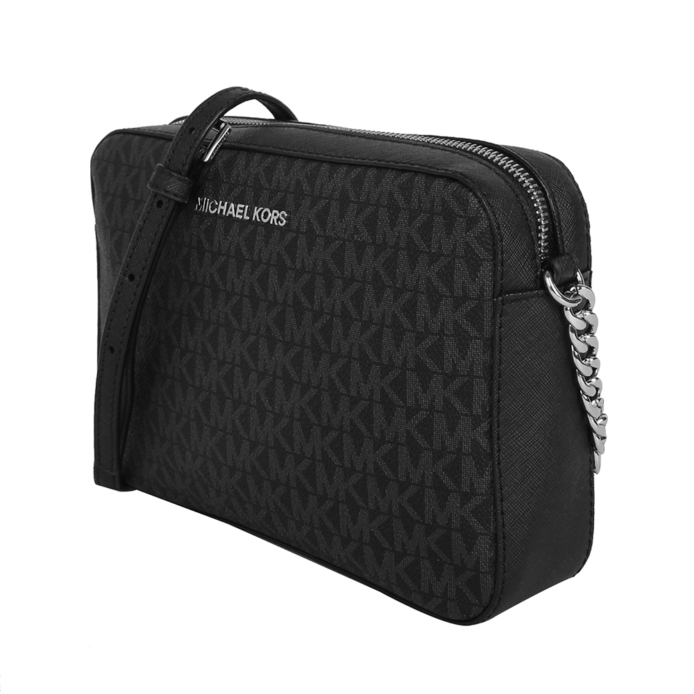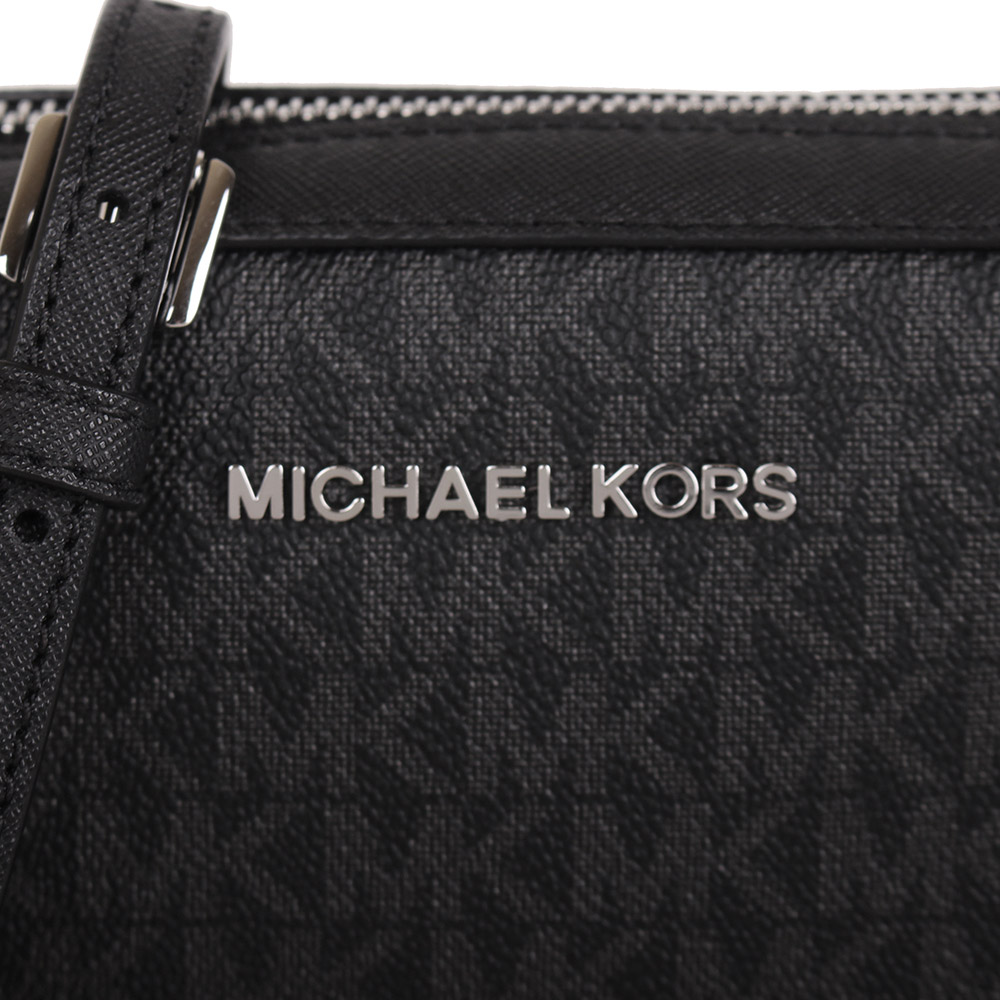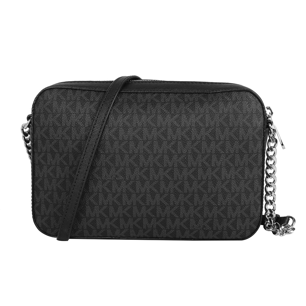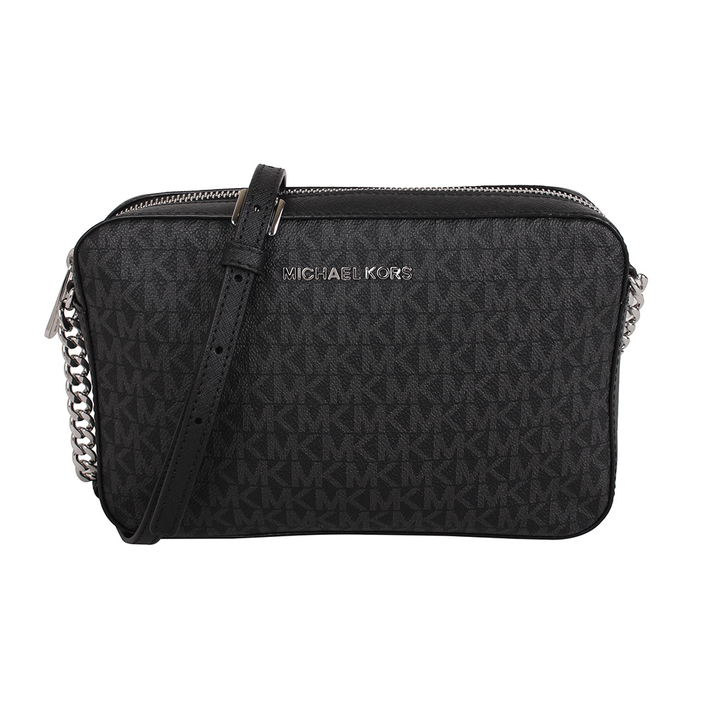 銀字滿版防刮LOGO拉鍊斜背方包 黑灰