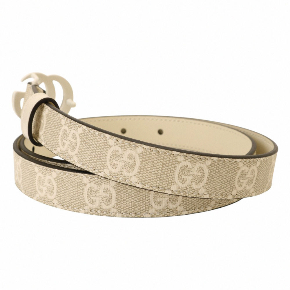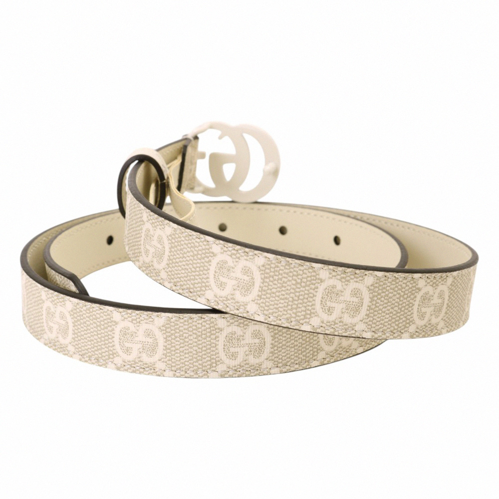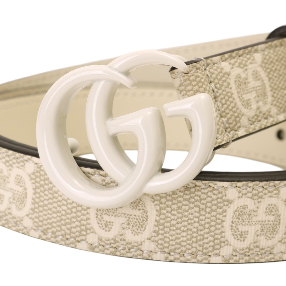 防刮GG圖紋女皮帶(淺卡其x白)80cm
