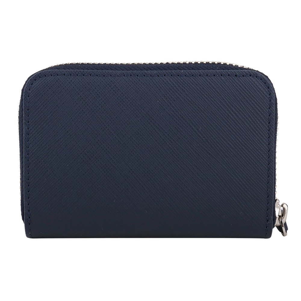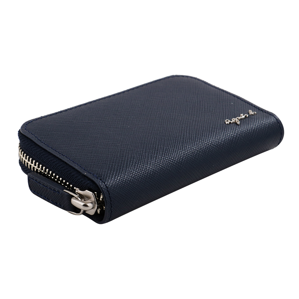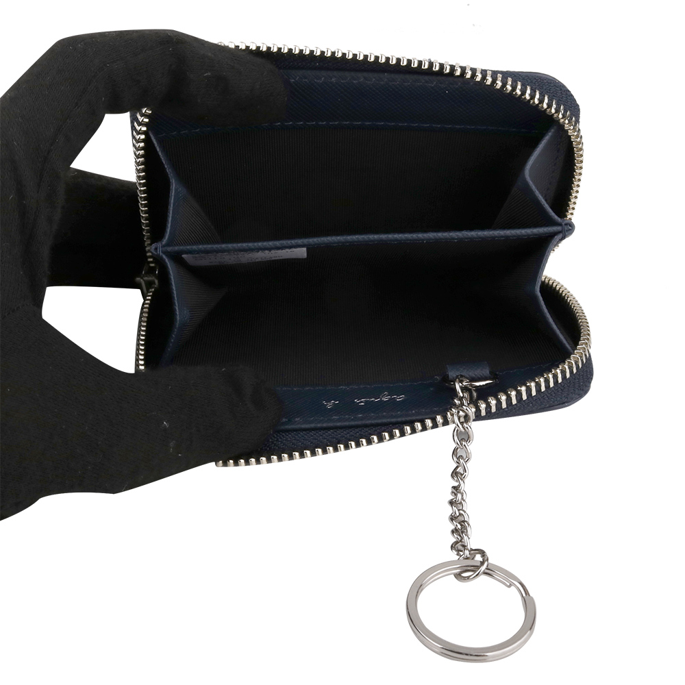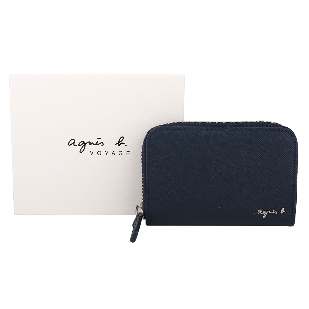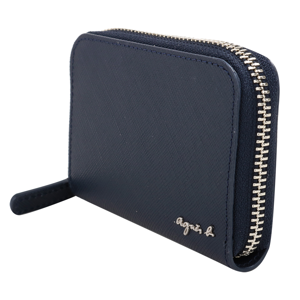 agnes b.草寫銀字logo防刮拉鍊附鑰匙圈零錢包(海軍藍)