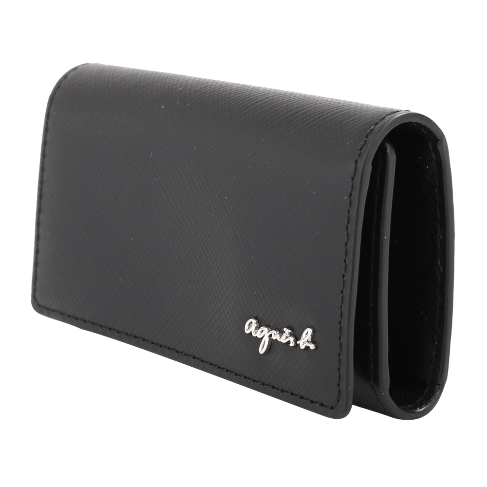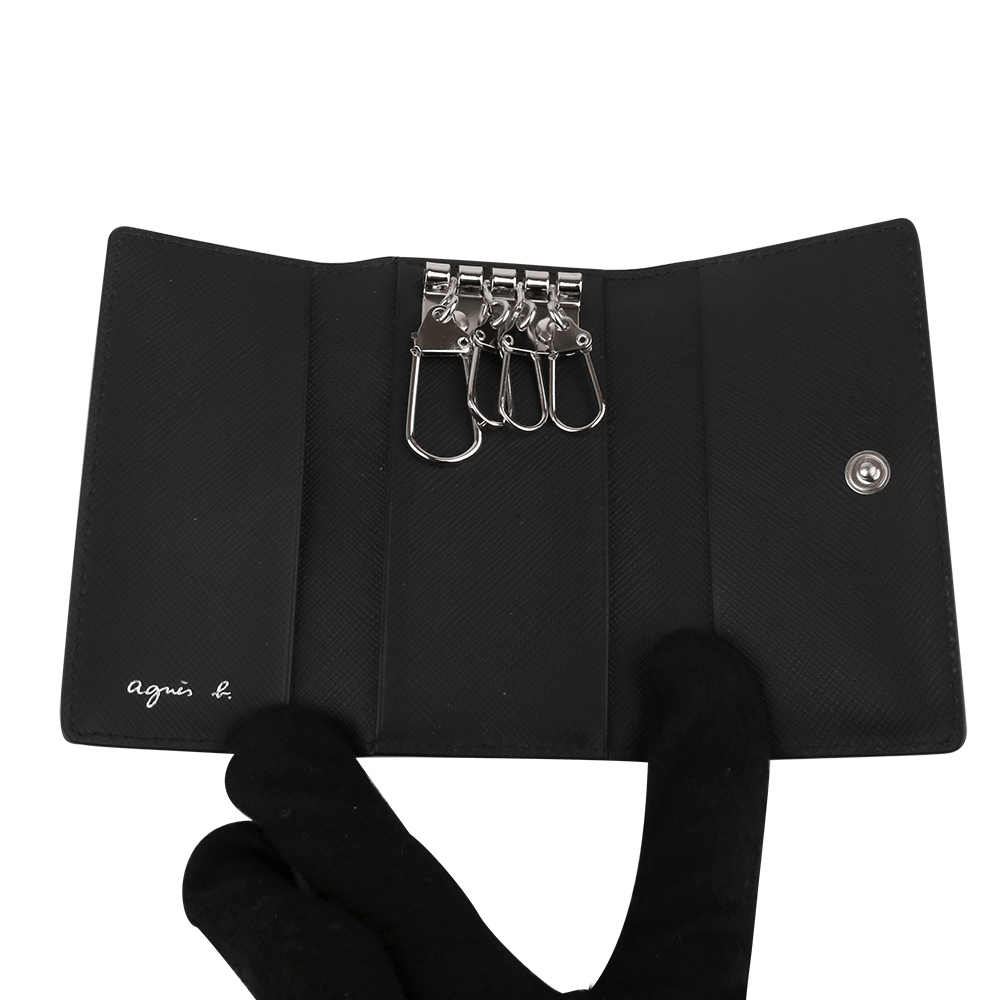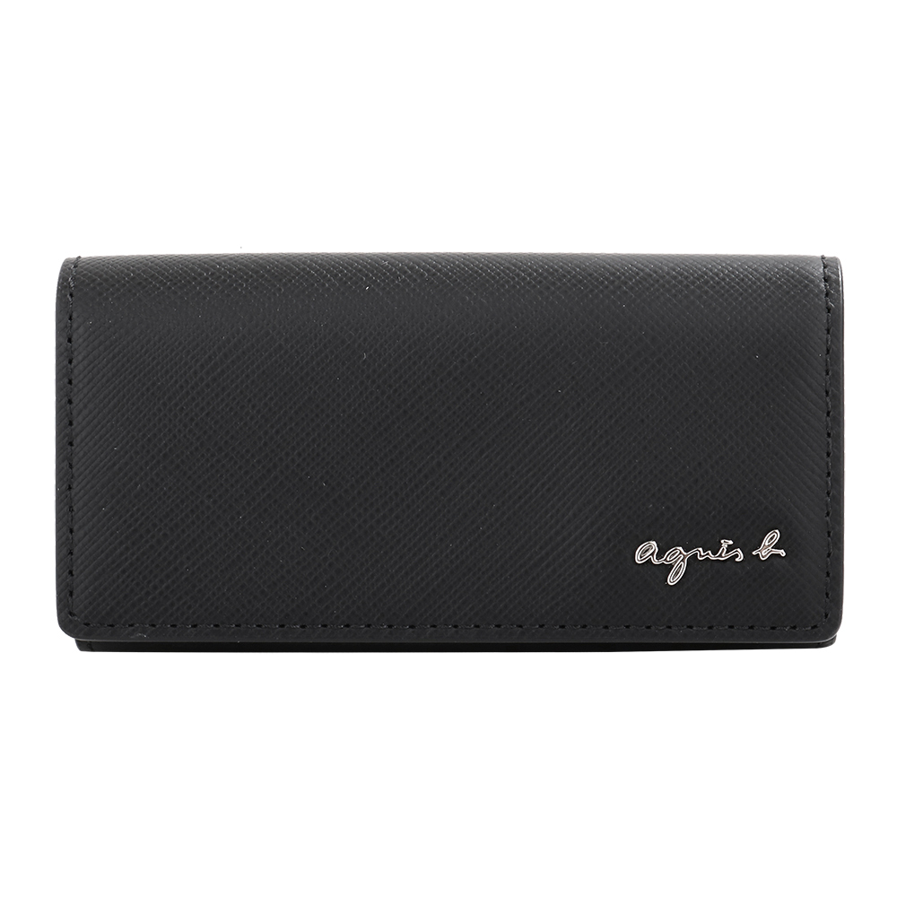 agnes b.草寫銀字logo 防刮皮革鑰匙包(黑)