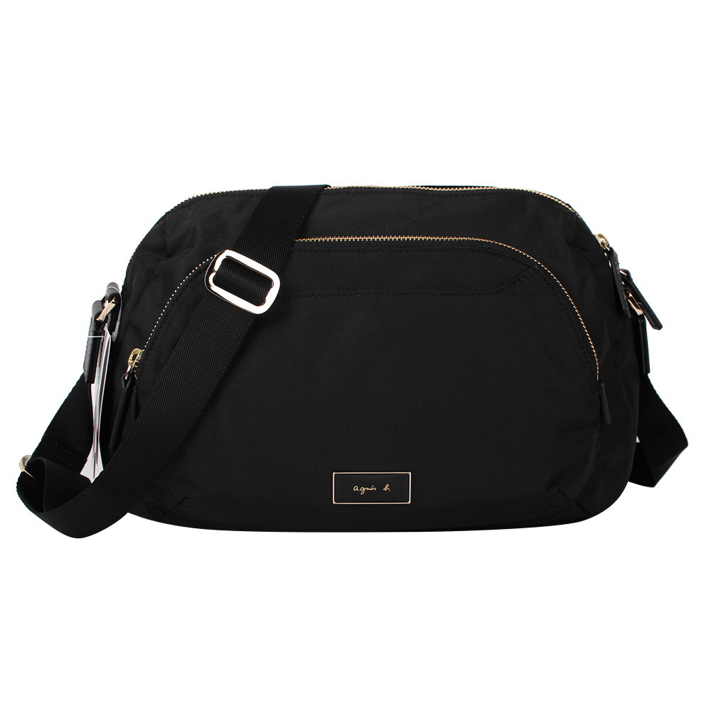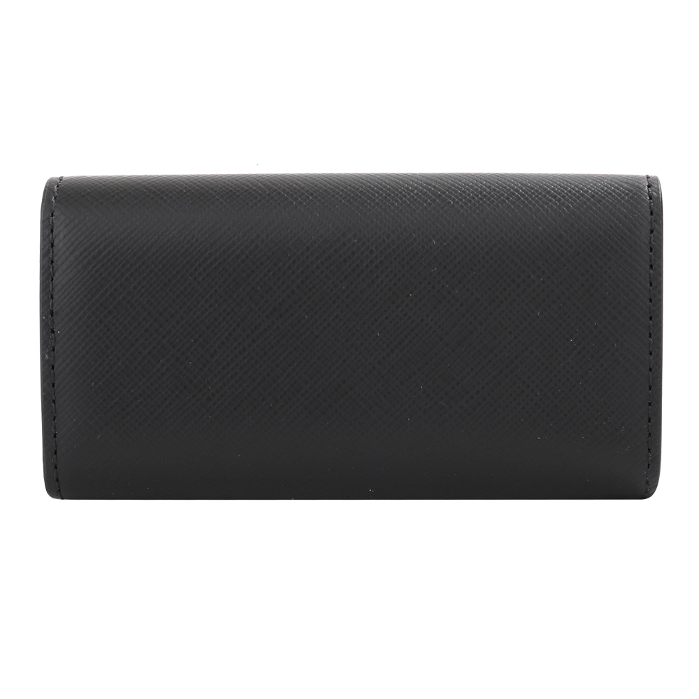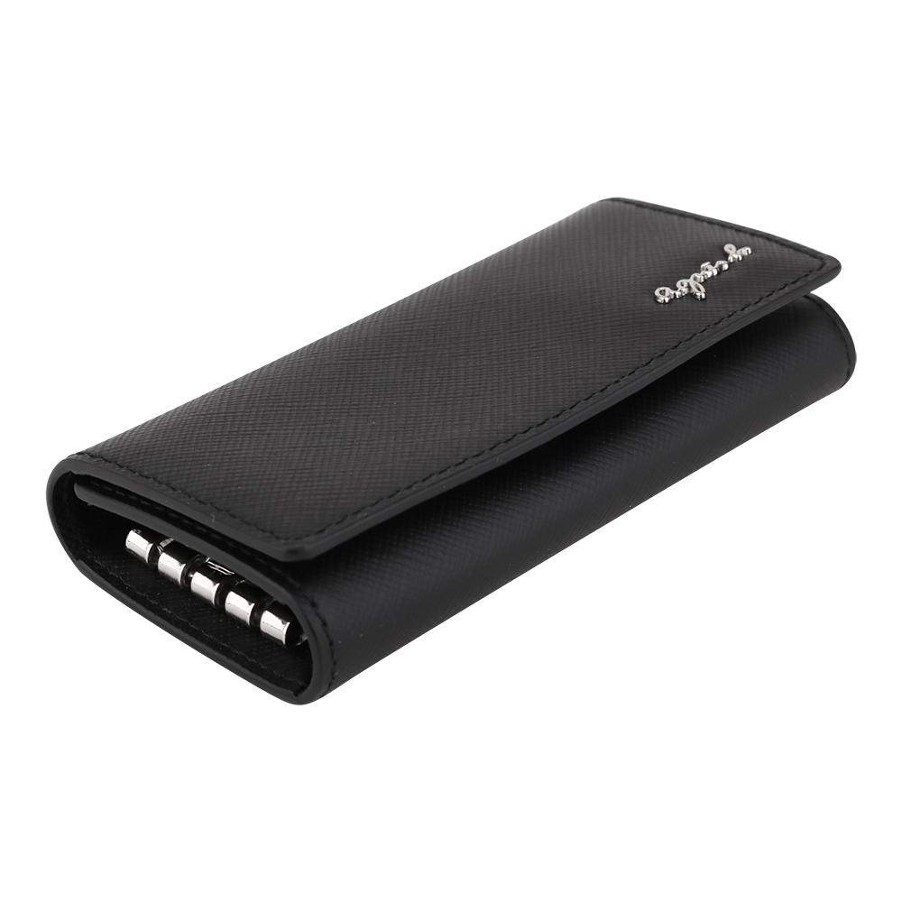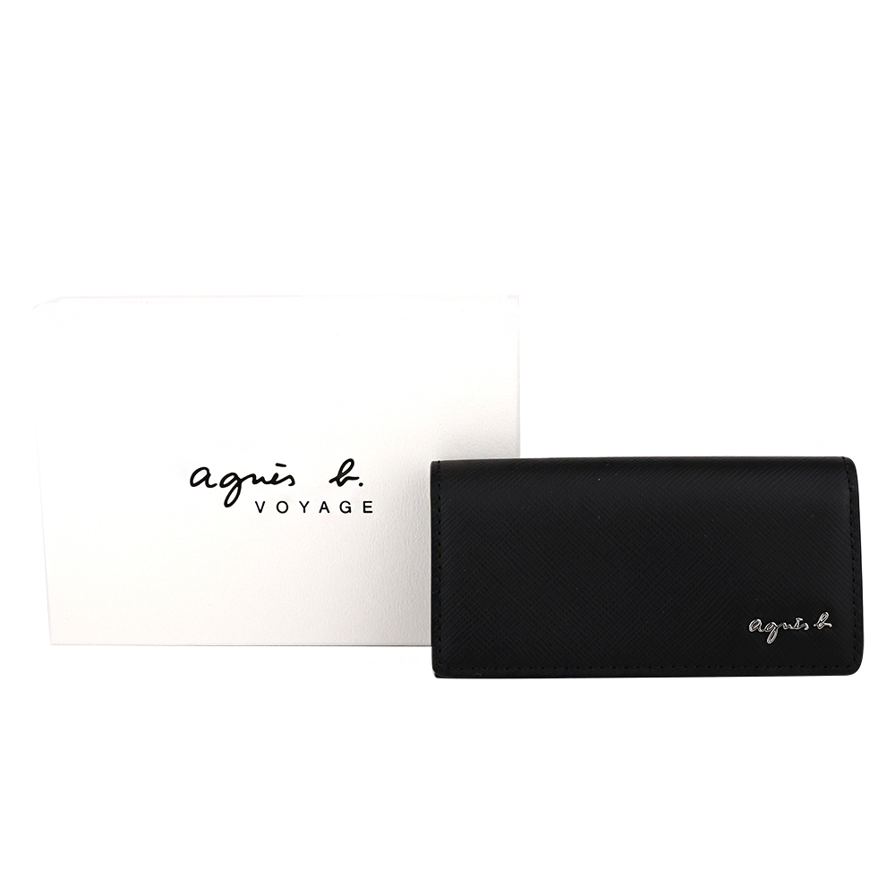 agnes b.草寫銀字logo 防刮皮革鑰匙包(黑)