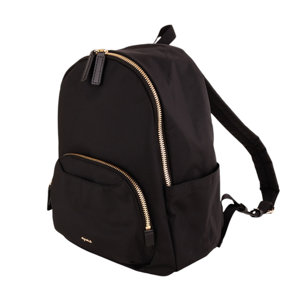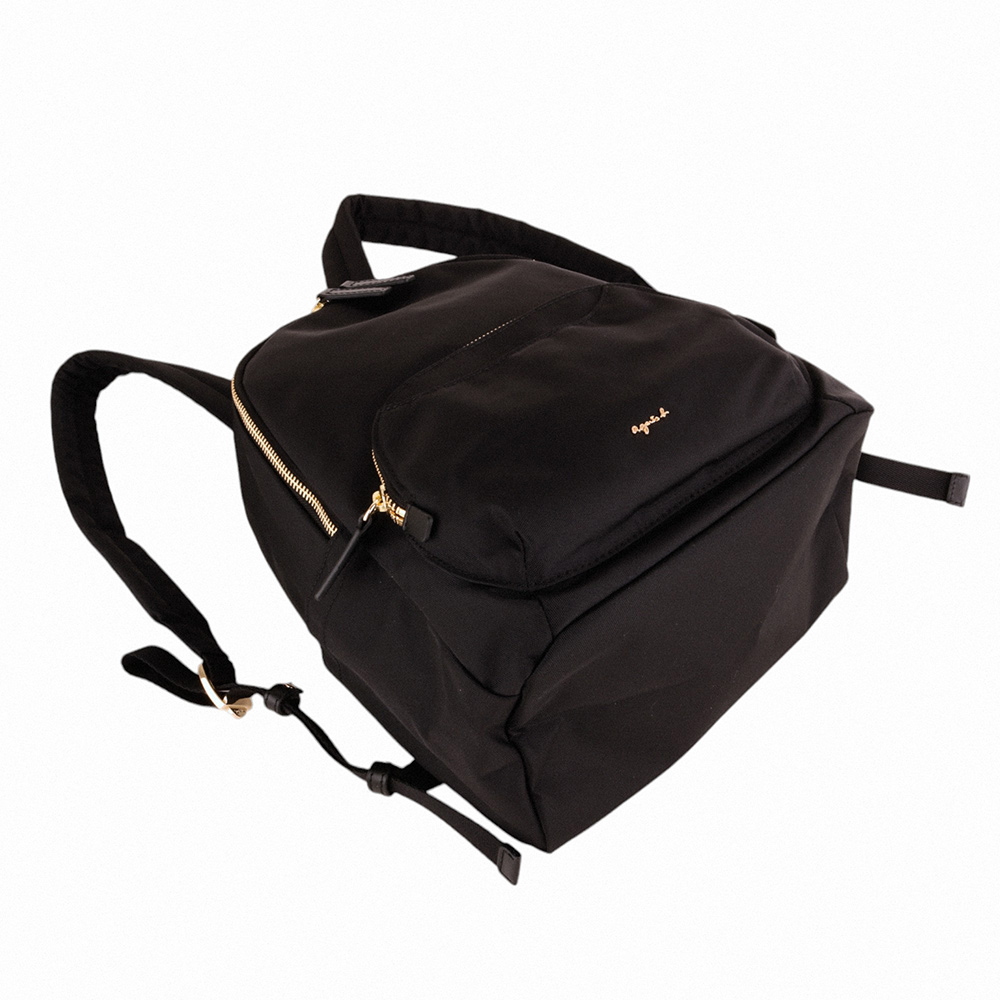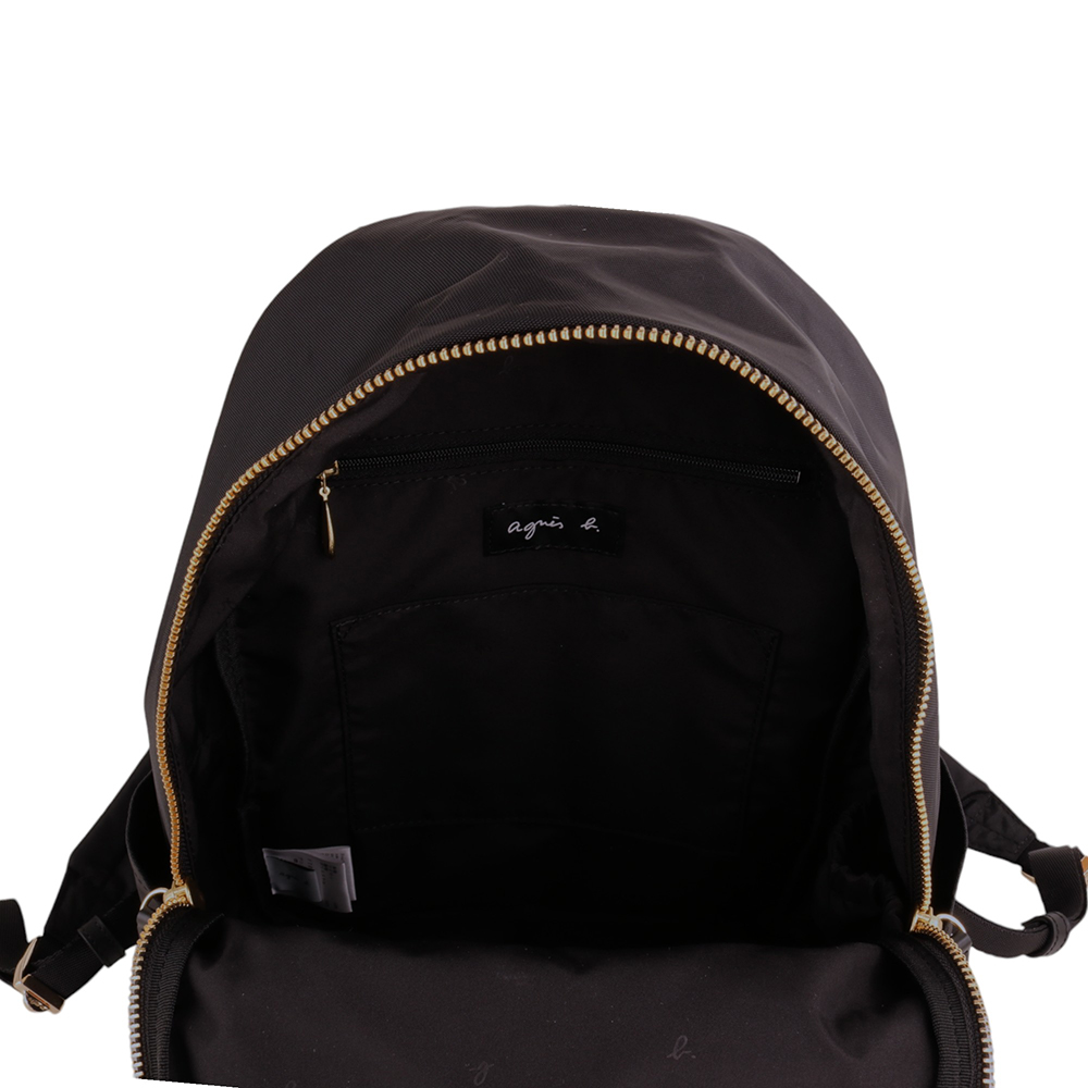 agnes b.金屬agnes b. 前拉鍊口袋橢圓型後背包(黑)小