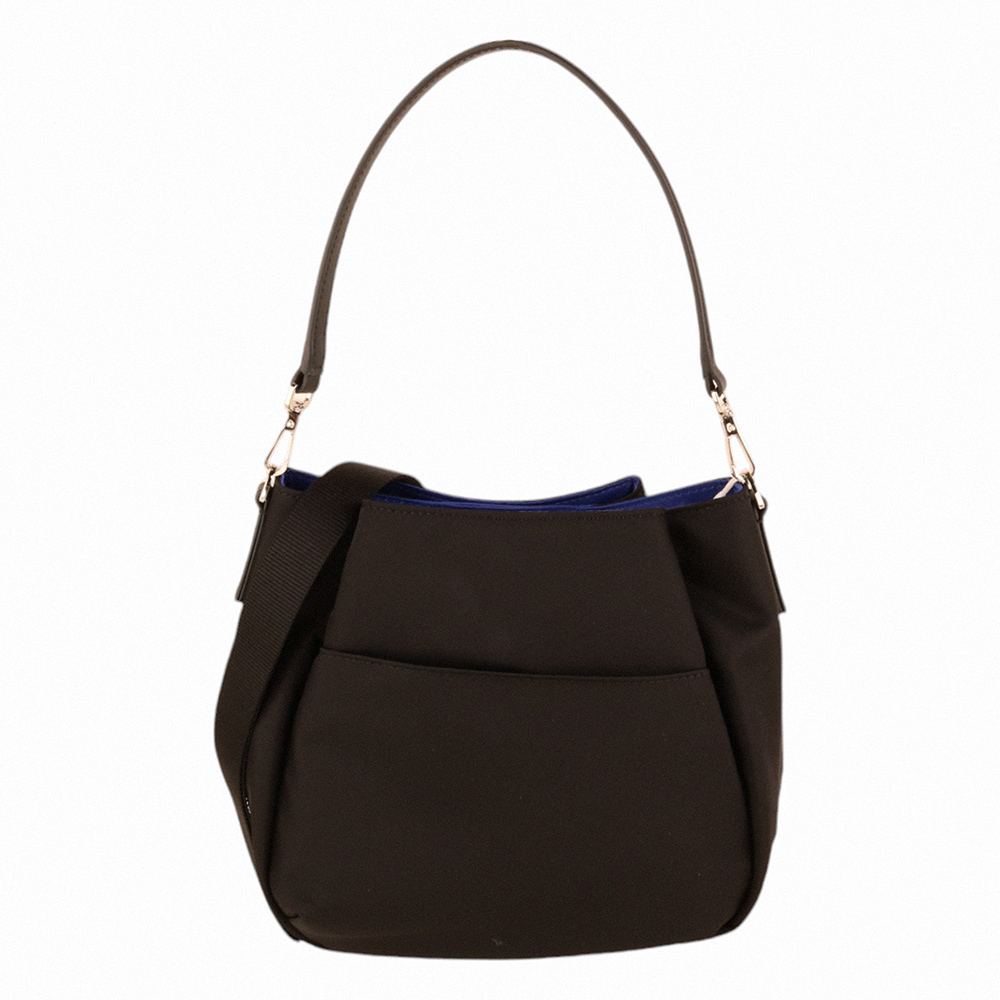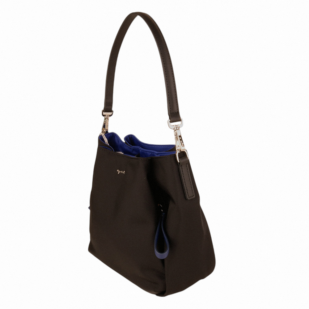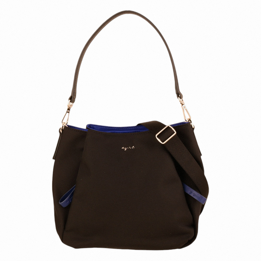 Home - agnes b. - agnes b.金屬agnes b.前雙側拉鍊尼龍斜背包(黑x內藍)min