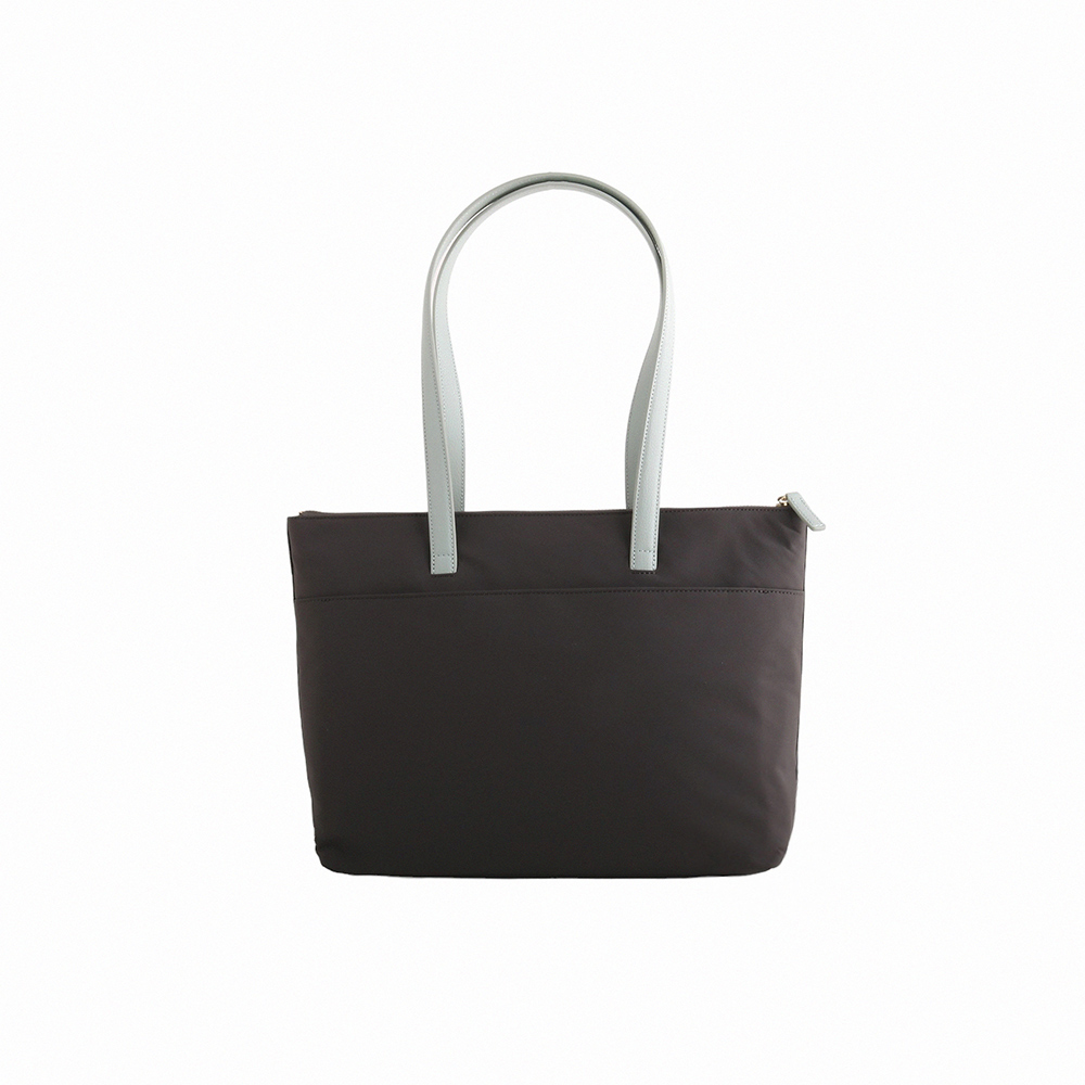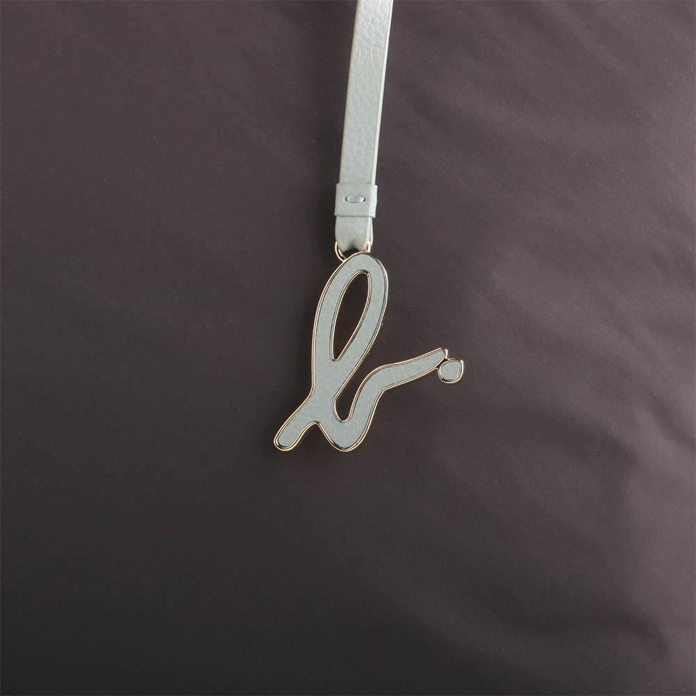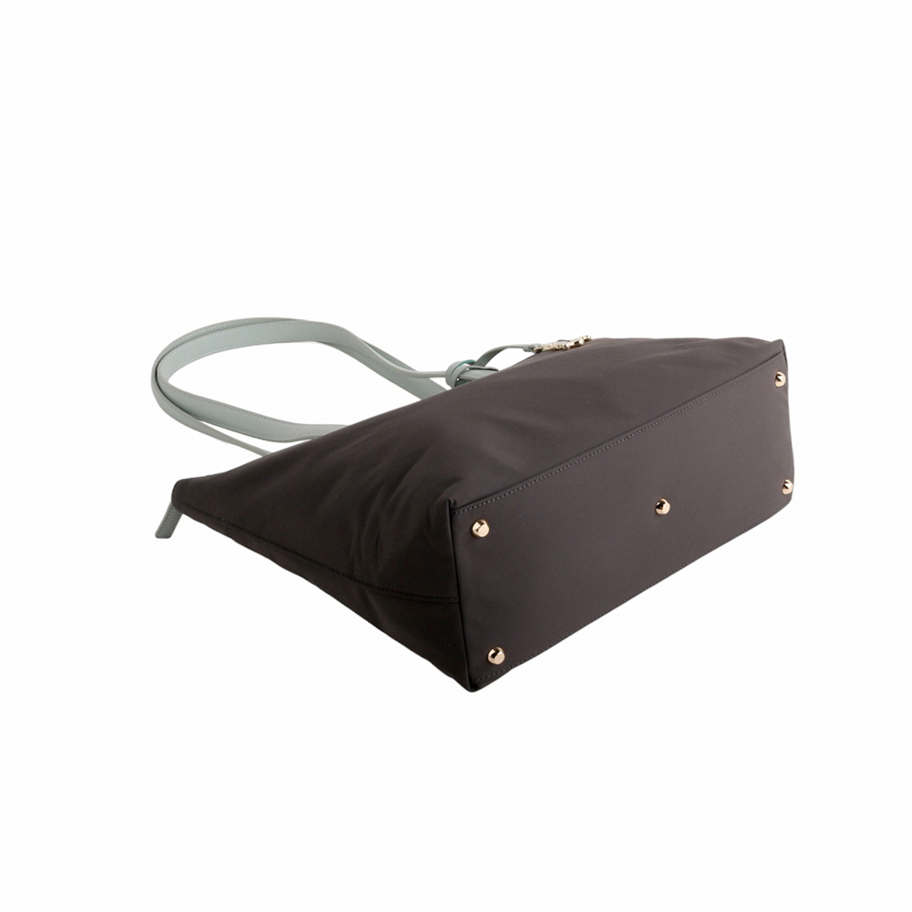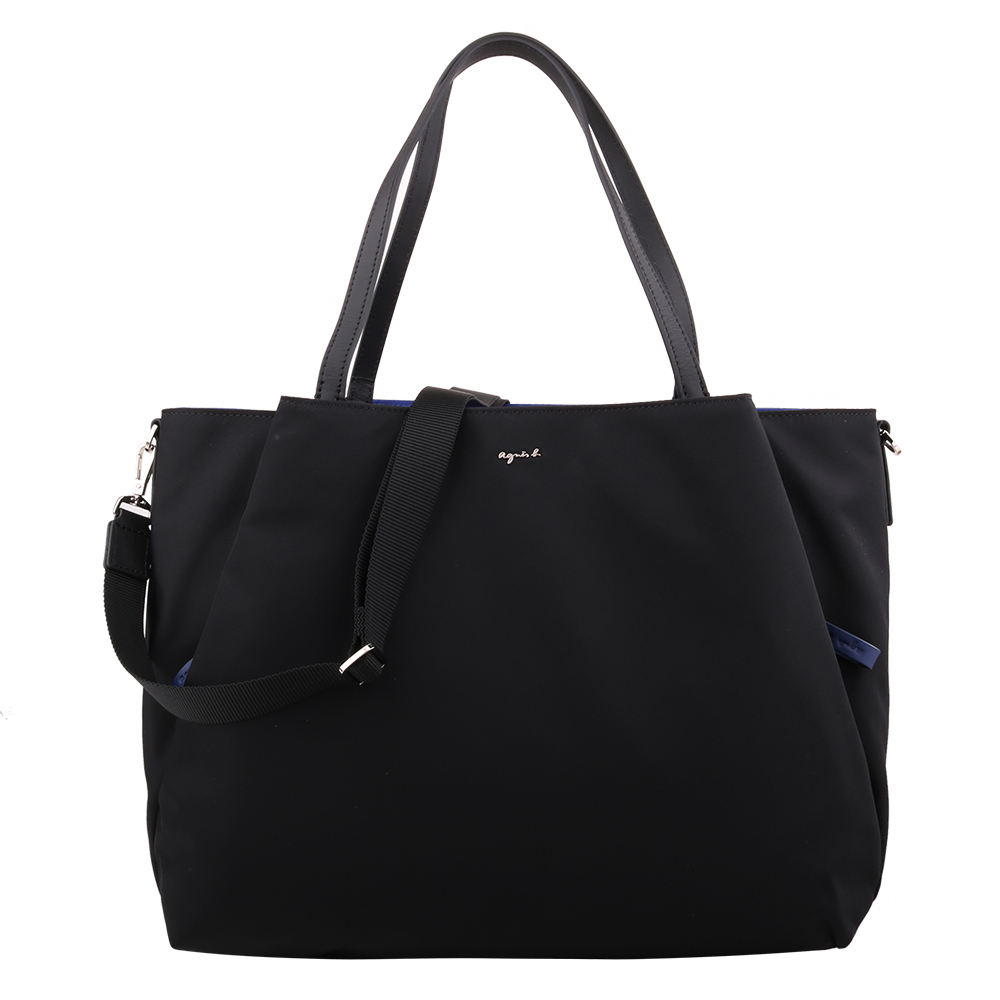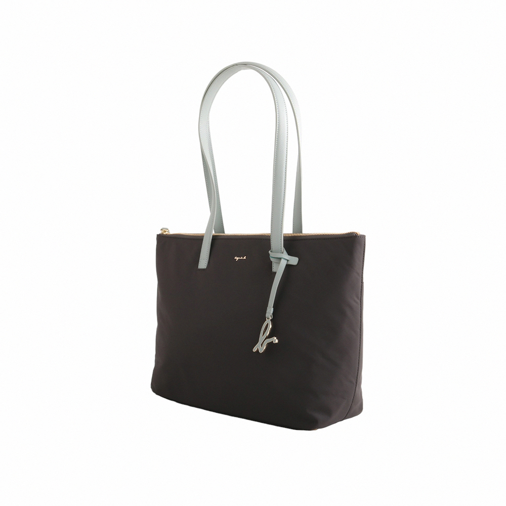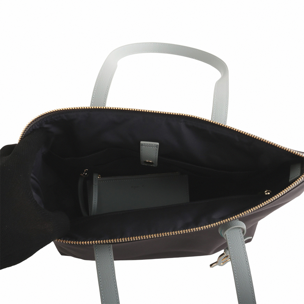 agnes b.草寫金字附手拿包尼龍托特包(深鐵灰x綠把)中