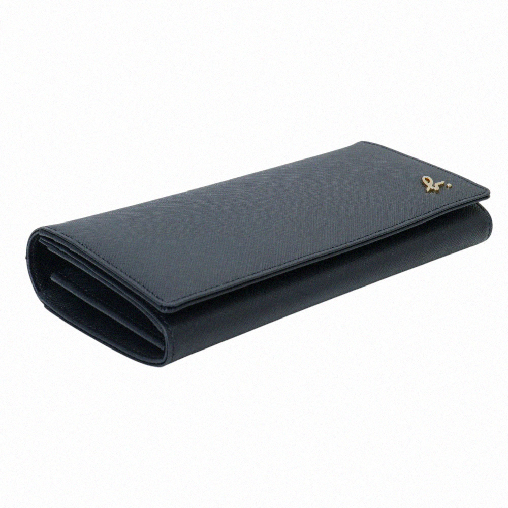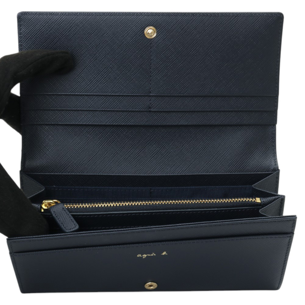 Home - agnes b. - agnes b.金b. logo 防刮皮革暗釦長夾(海軍藍)