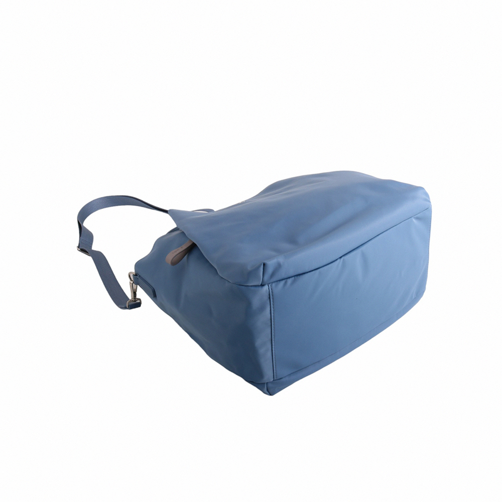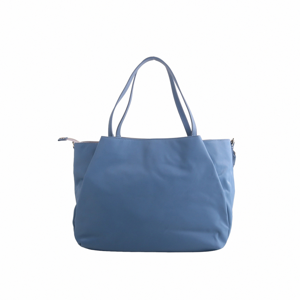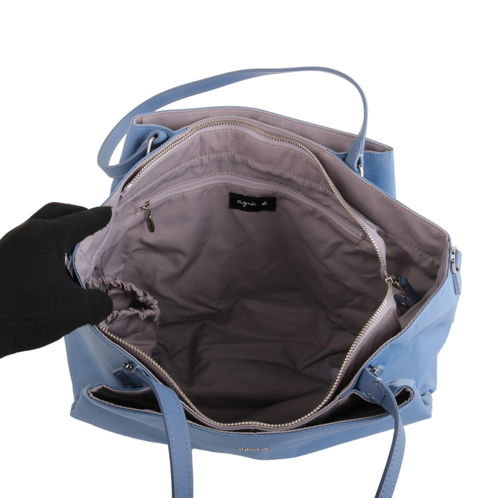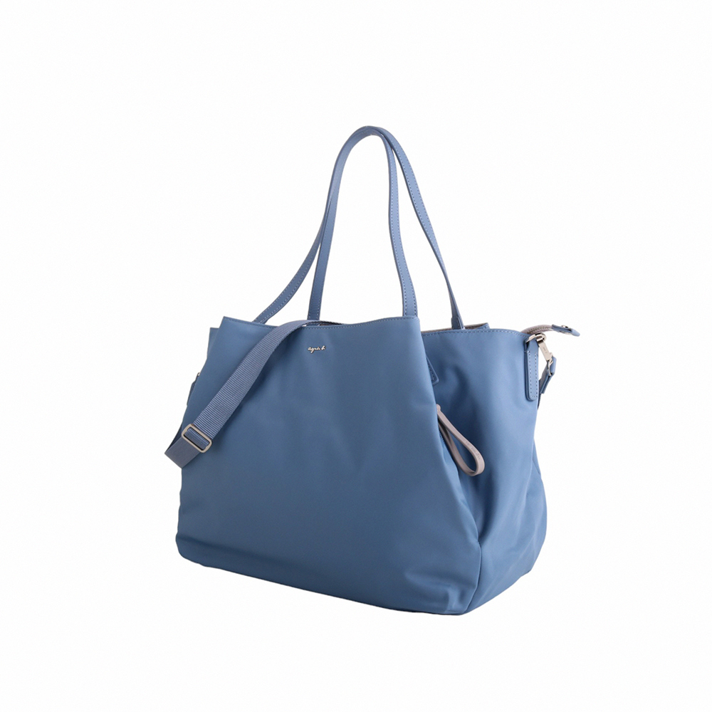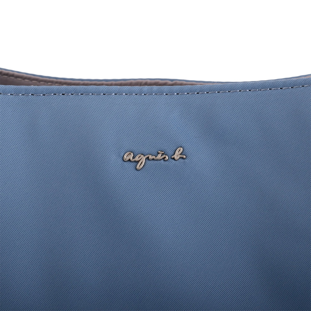 agnes b.銀字logo 前雙側拉鍊兩用托特包(天藍x淺灰)大
