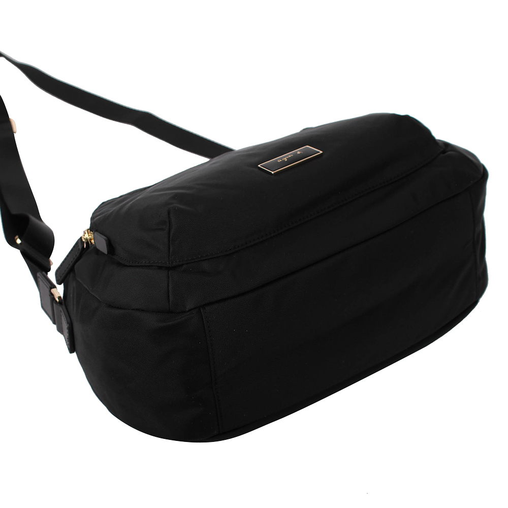 Home - agnes b. - agnes b.黑皮標LOGO前拉鍊口袋斜背包(黑)小款