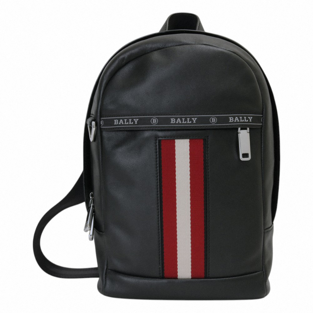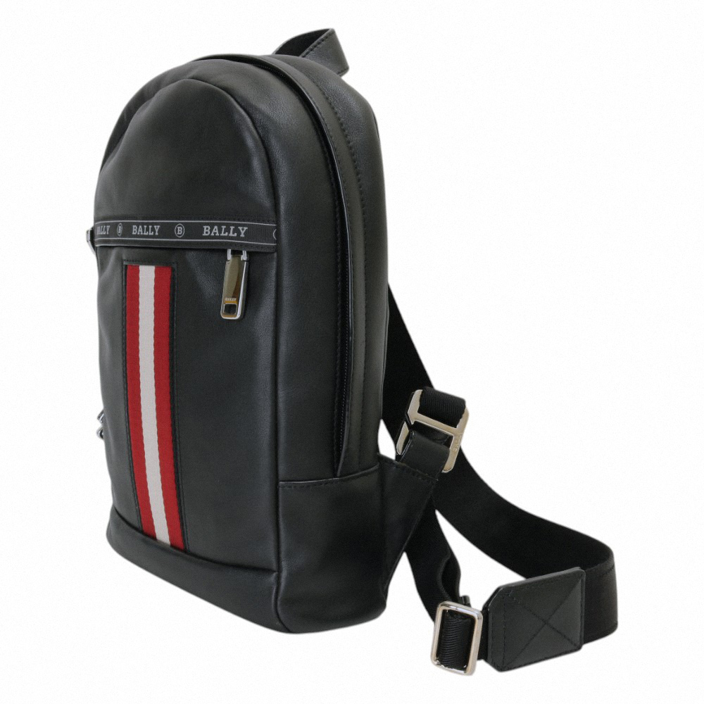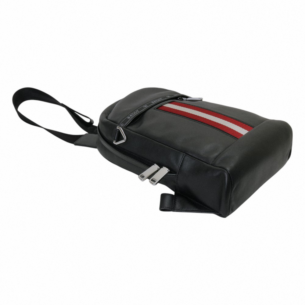BALLY-紅白織帶皮革手提/單肩背胸包(黑)