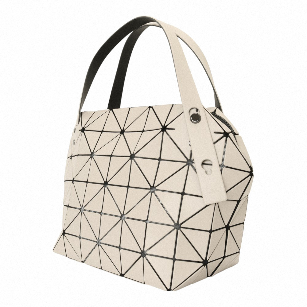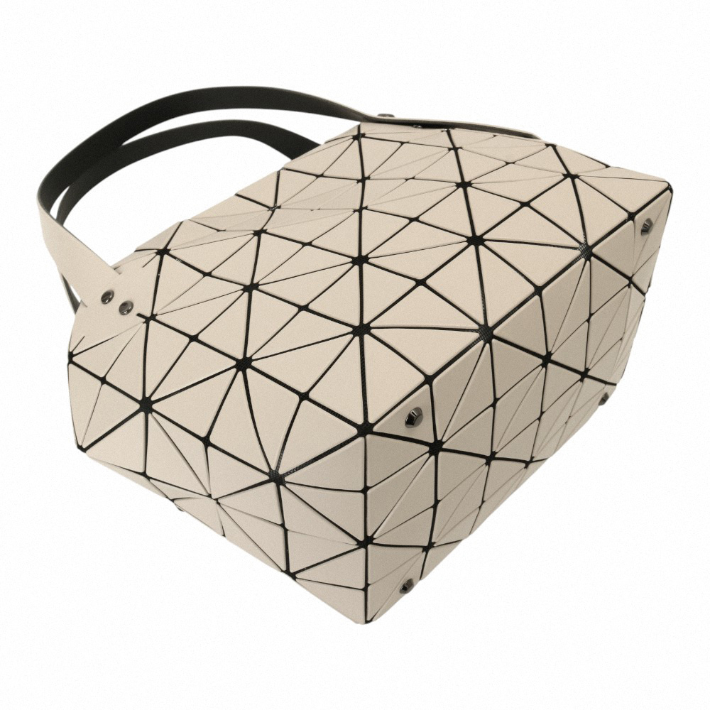 BAO BAO-皮質幾何方格手提波士頓包(奶茶米)霧面M