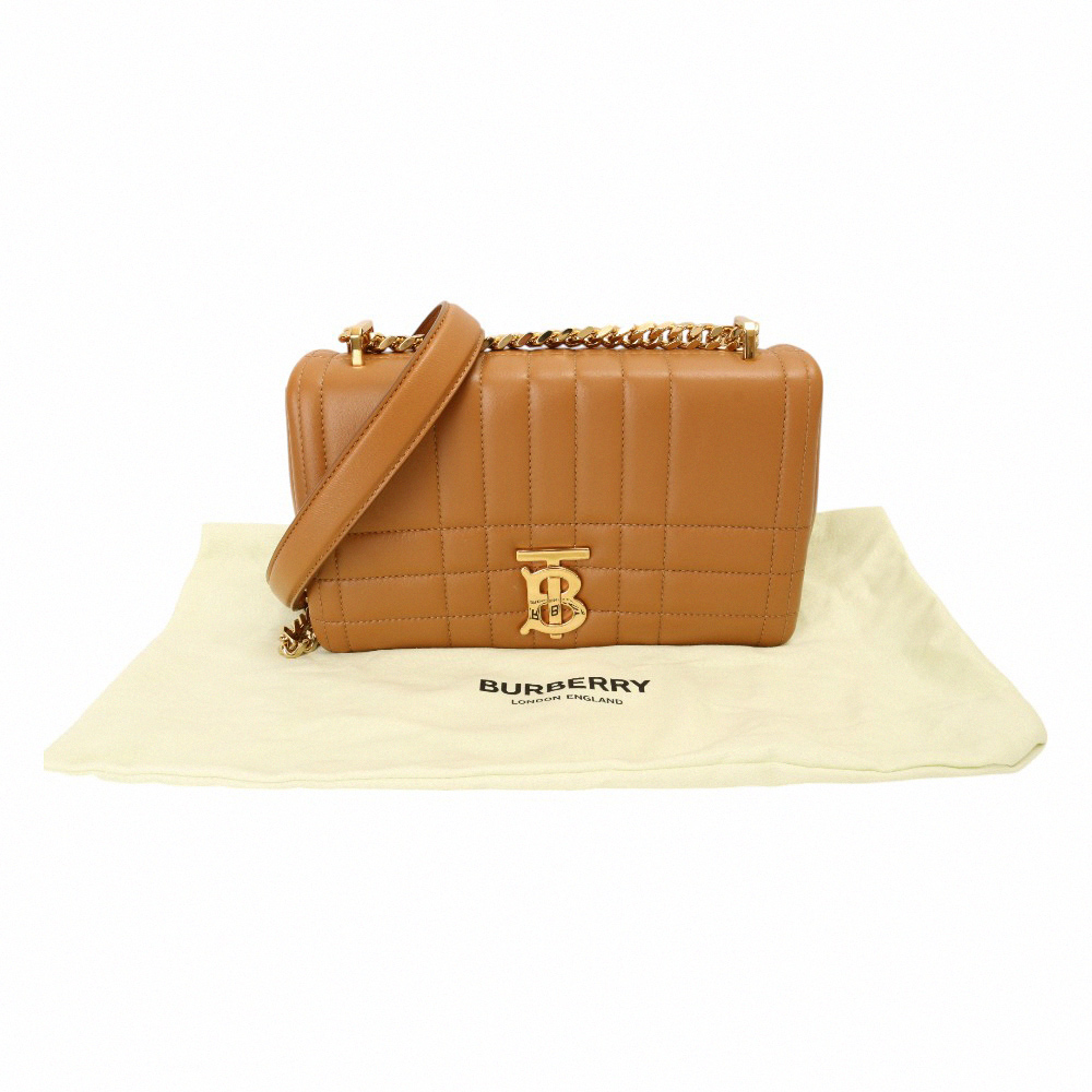BURBERRY-縫線小羊皮翻釦鍊帶肩/斜背包(焦糖色)