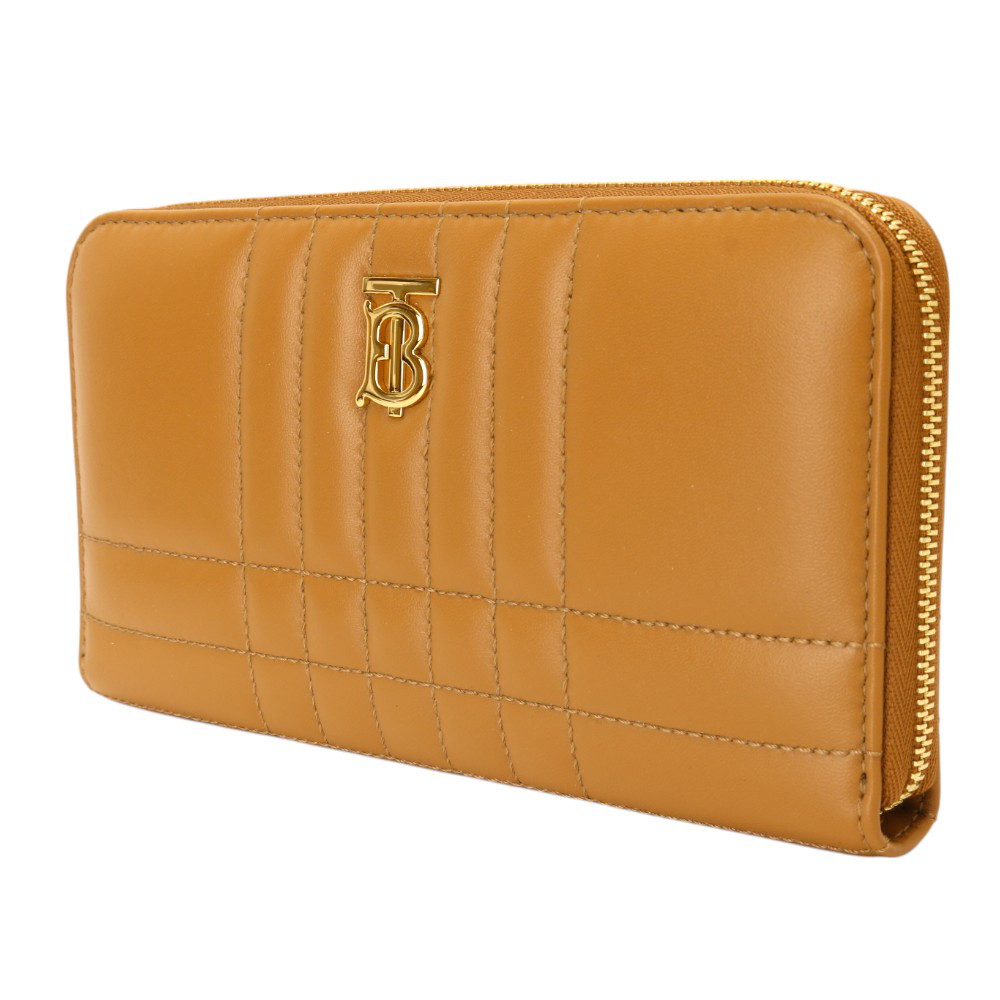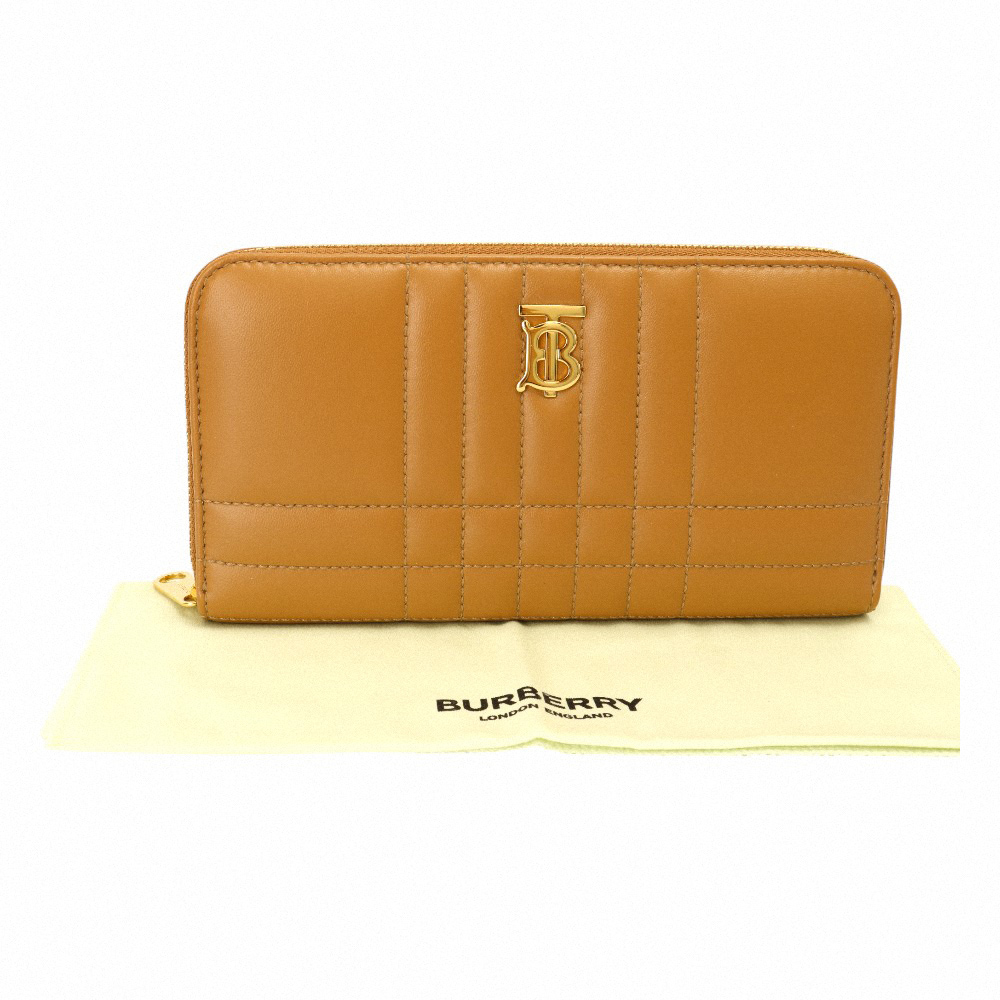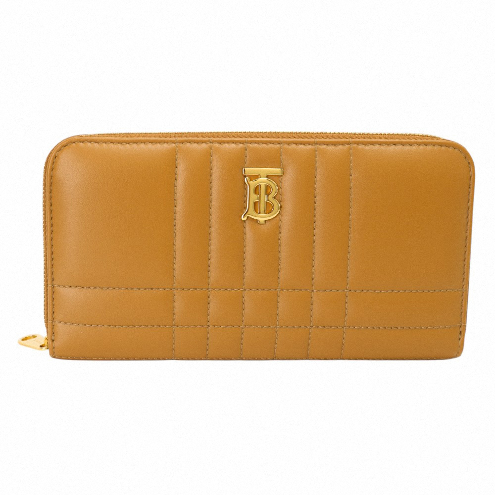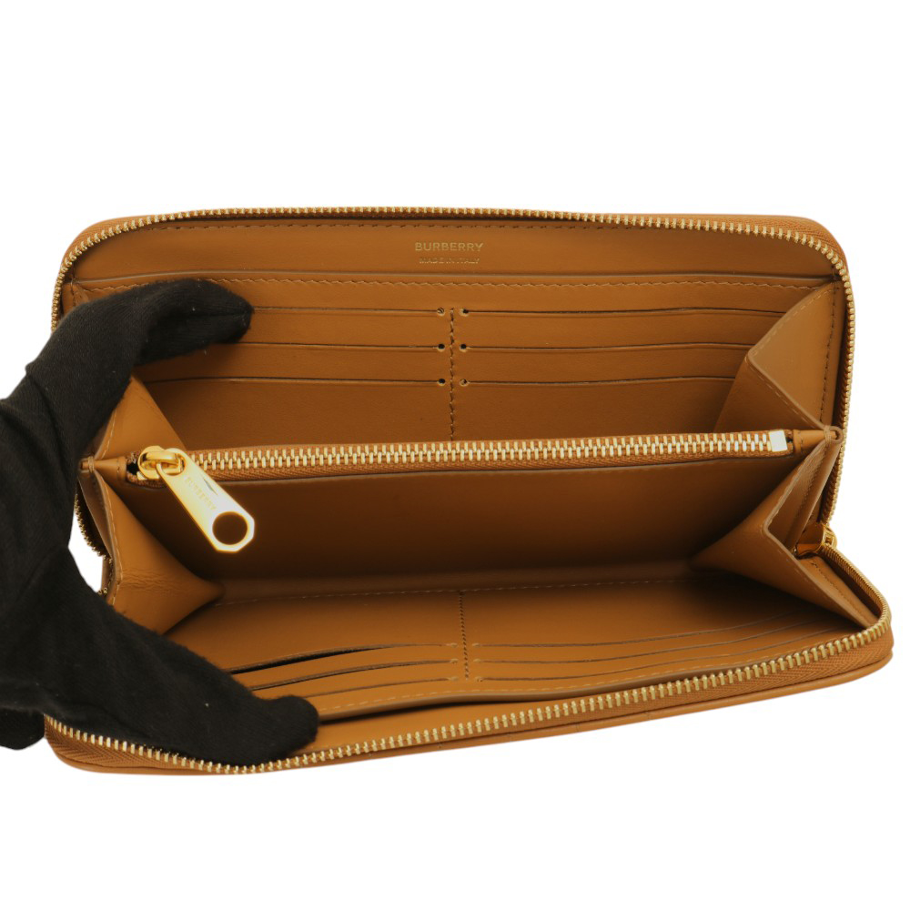 BURBERRY-金屬B LOGO縫紋皮革拉鍊長夾(焦糖色)