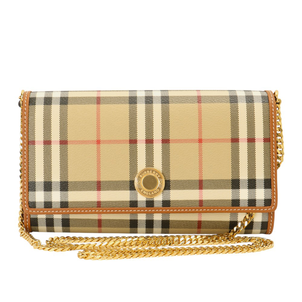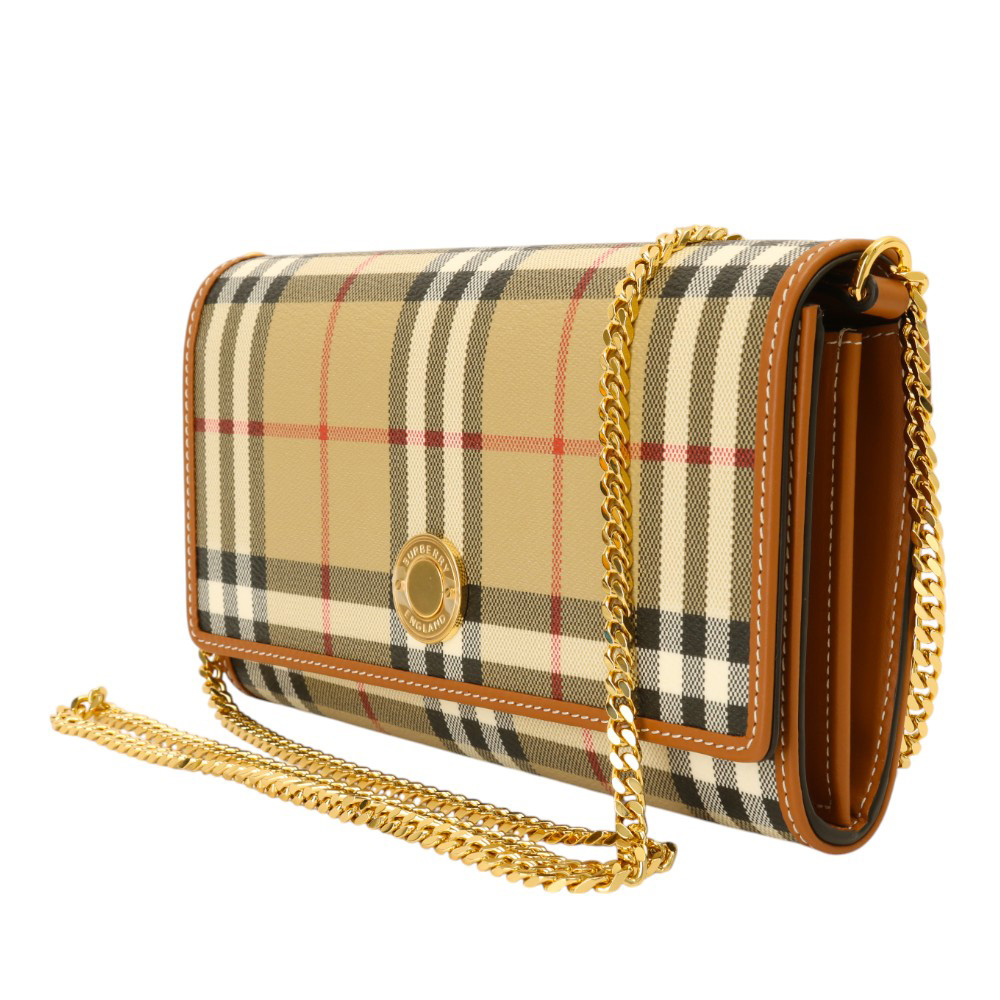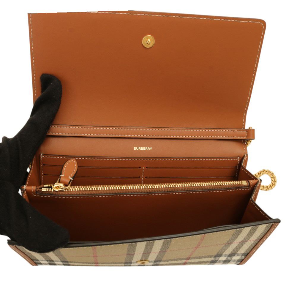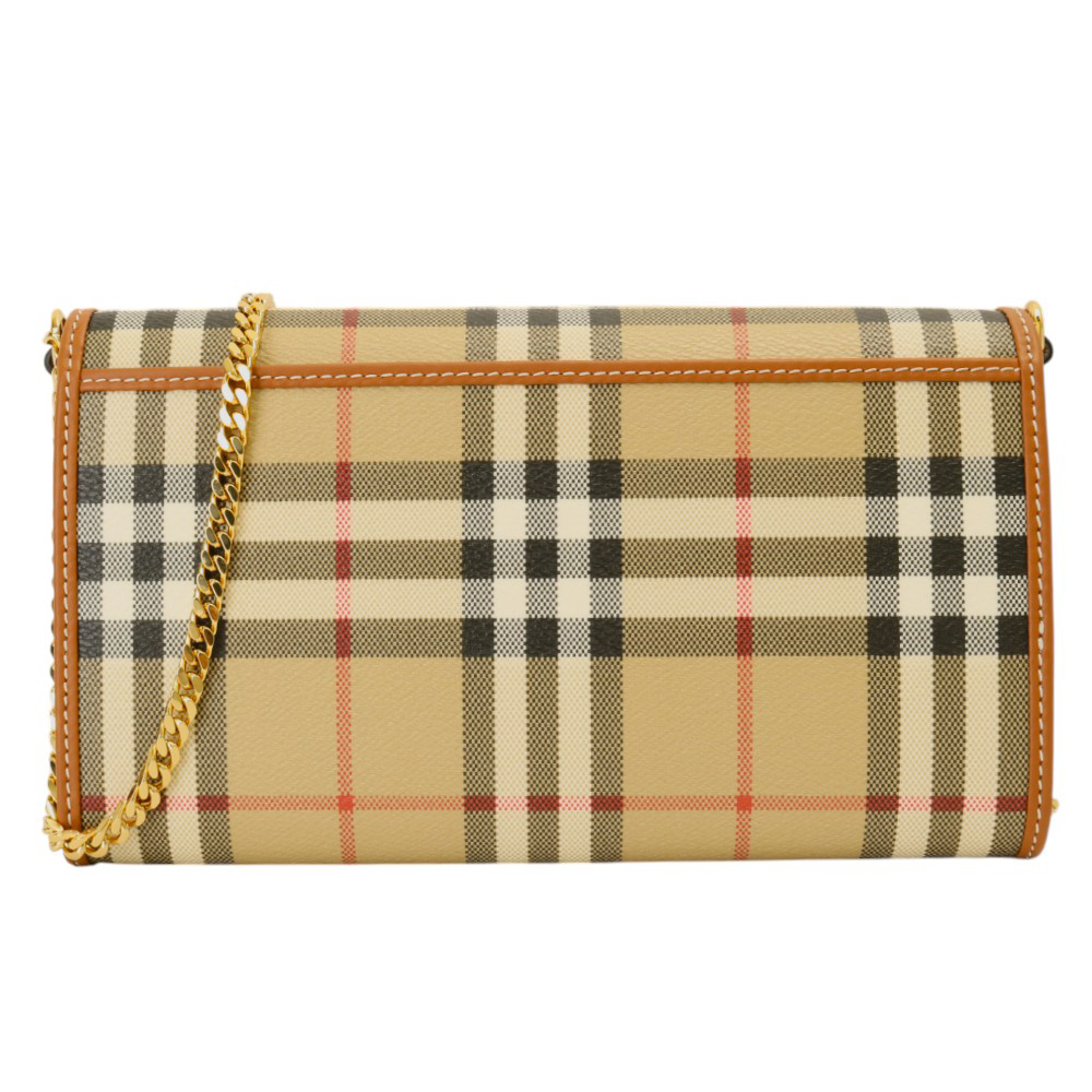 BURBERRY-字母標誌帆布磁釦斜背包(黑x駝邊)mini款 (複製)