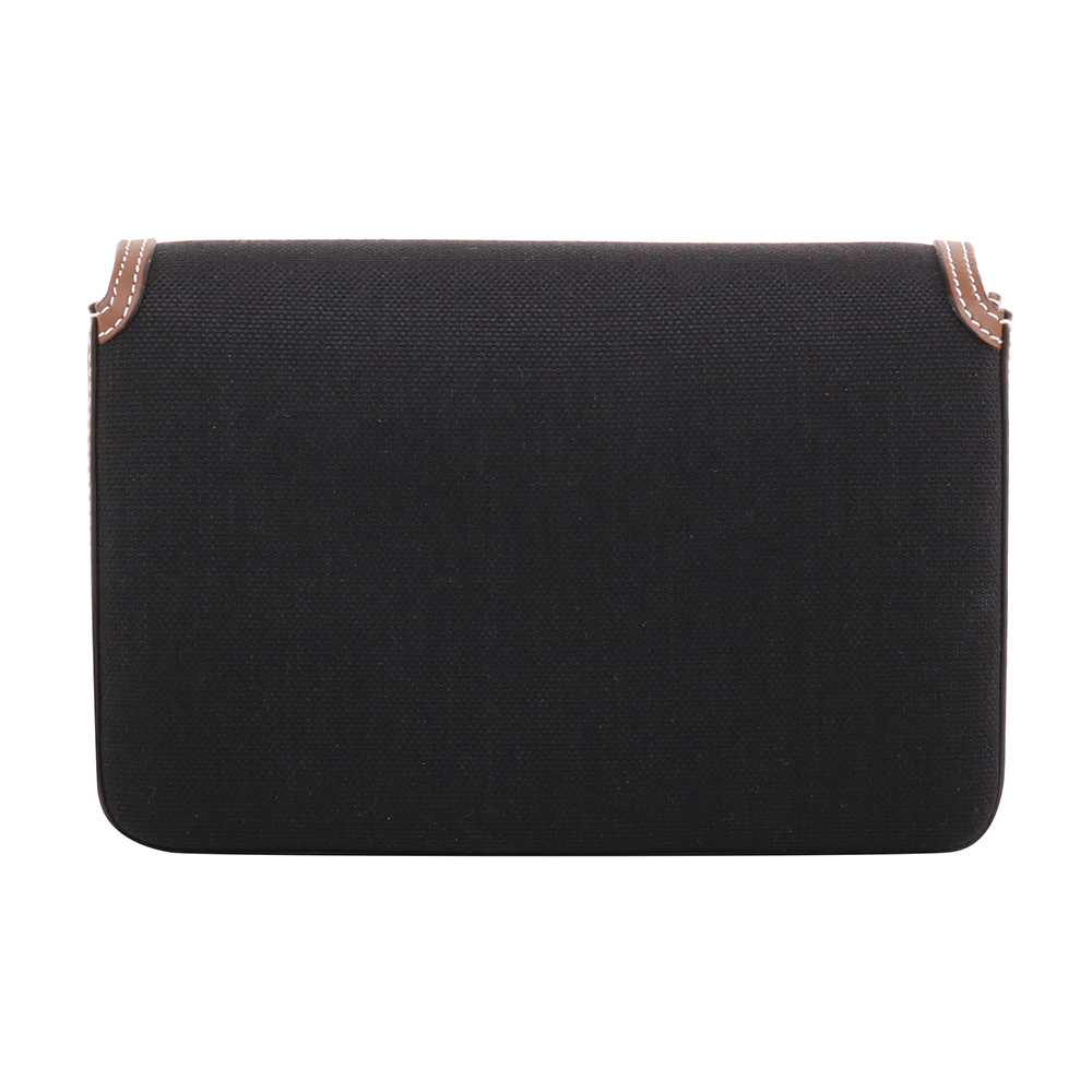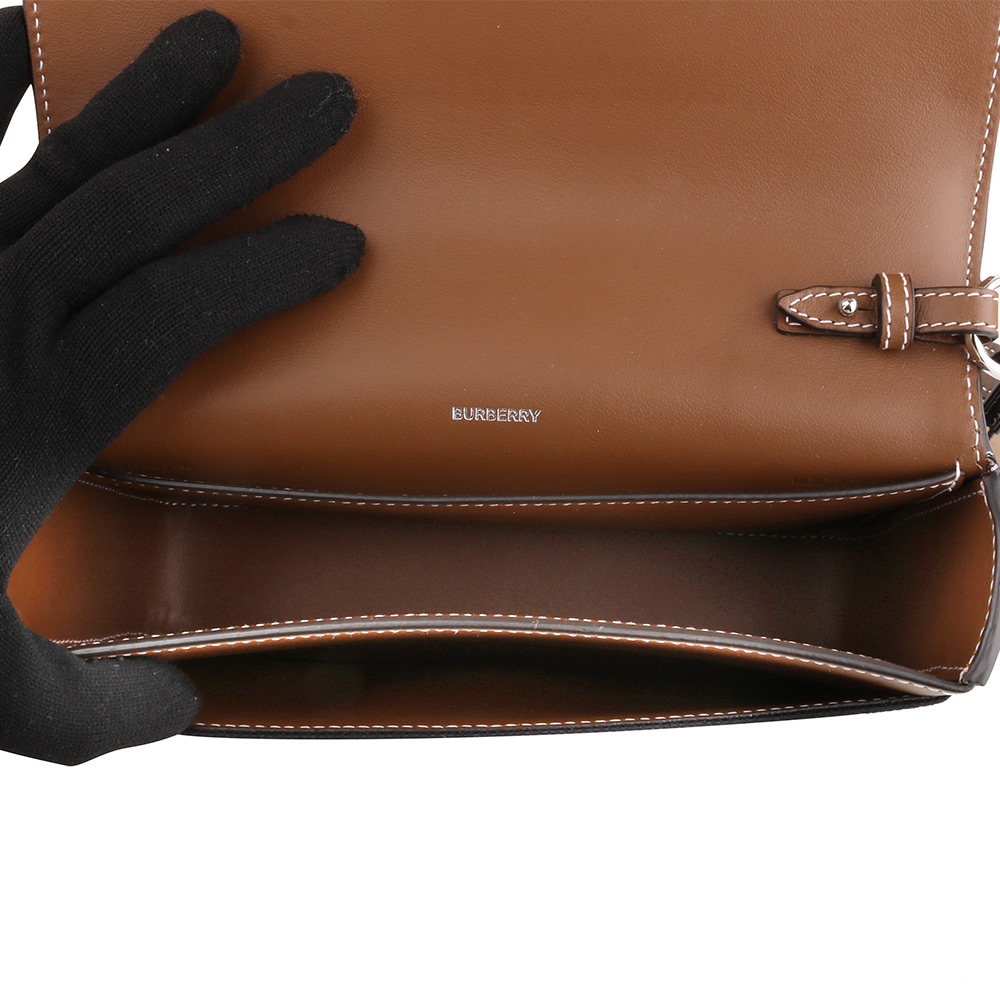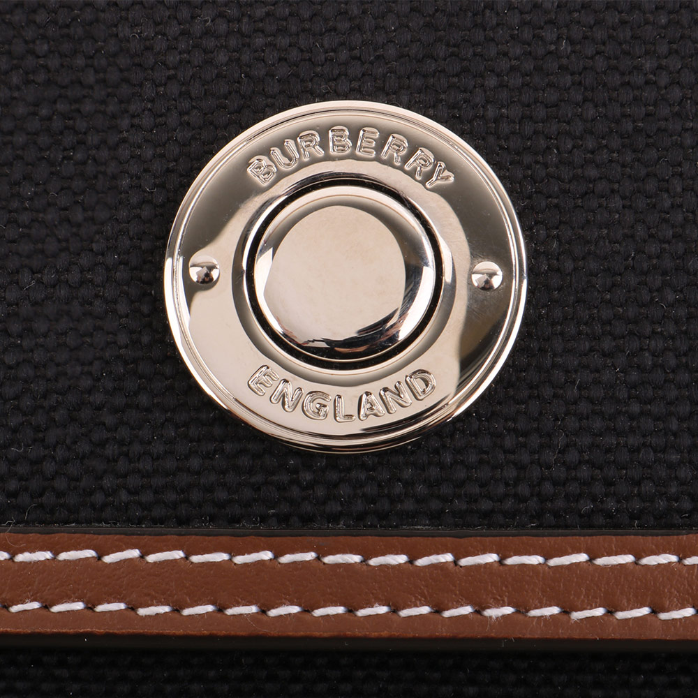 BURBERRY-字母標誌帆布磁釦斜背包(黑x駝邊)mini款