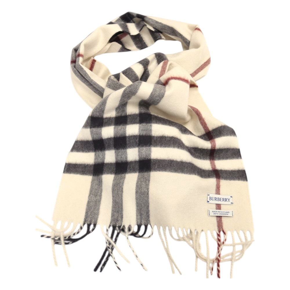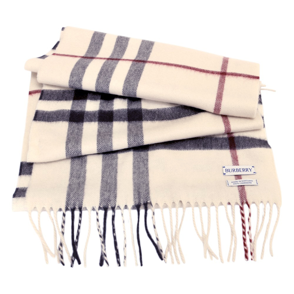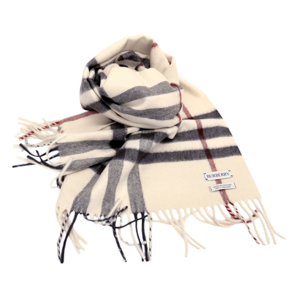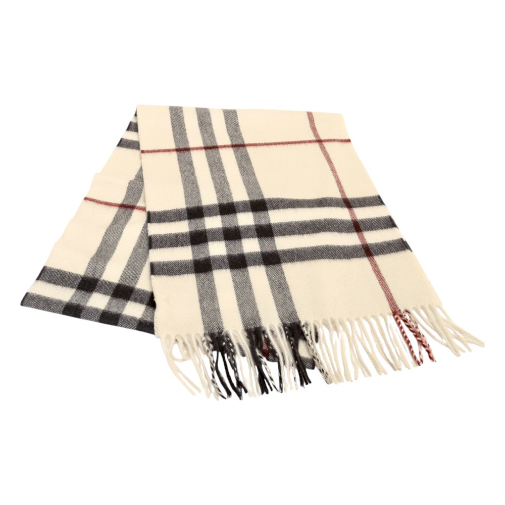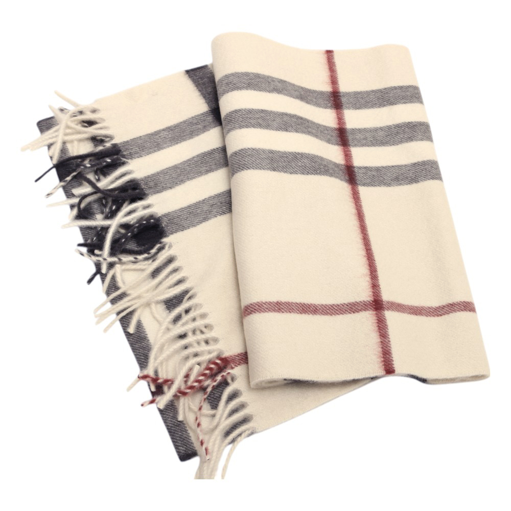 BURBERRY- 經典大格紋喀什米爾流蘇羊毛圍巾(米色)