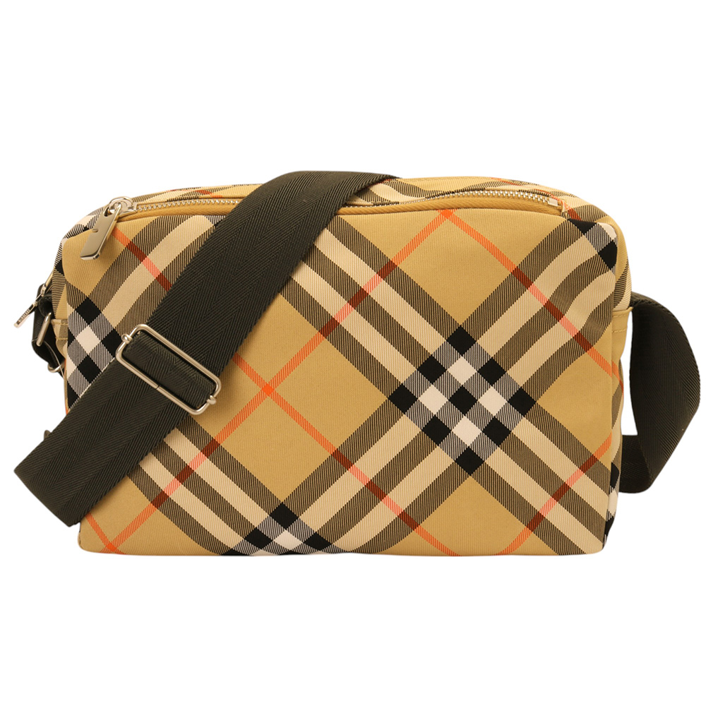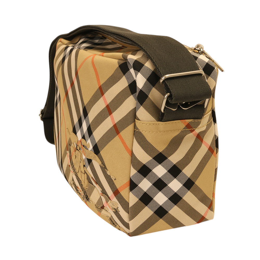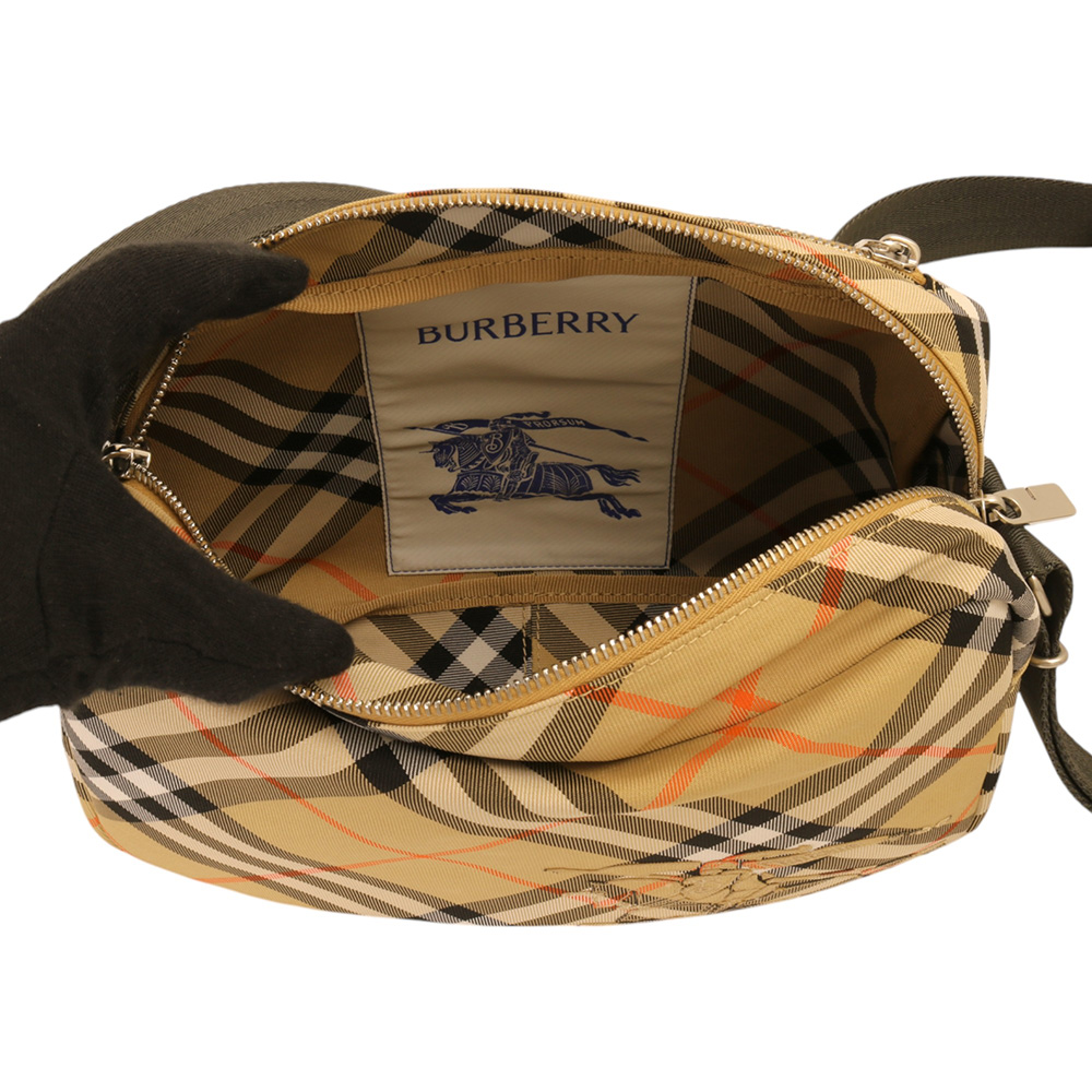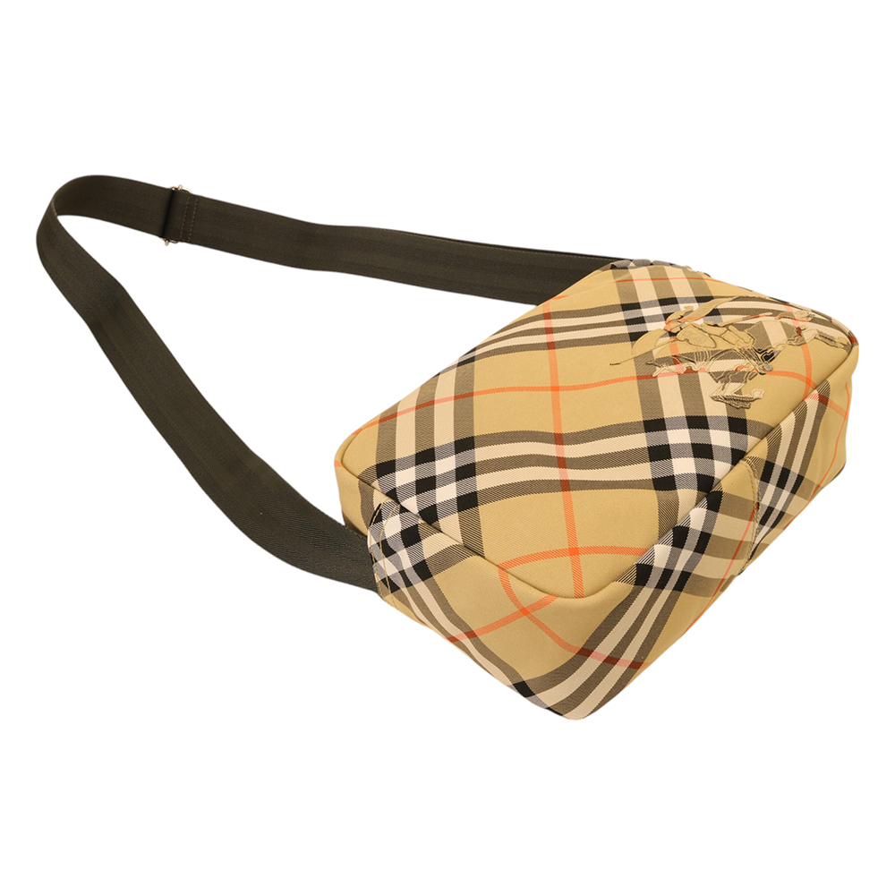 BURBERRY-經典格紋戰馬圖騰帆布斜背相機包(卡其)中