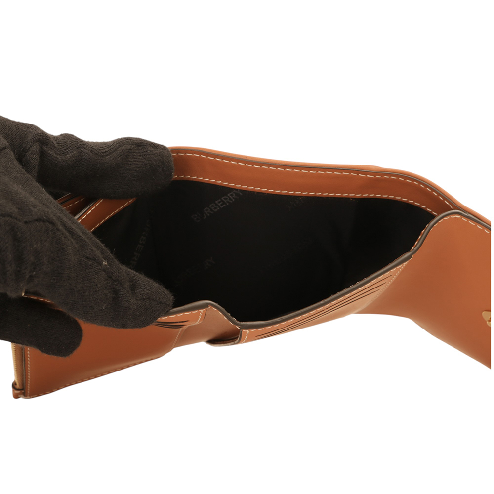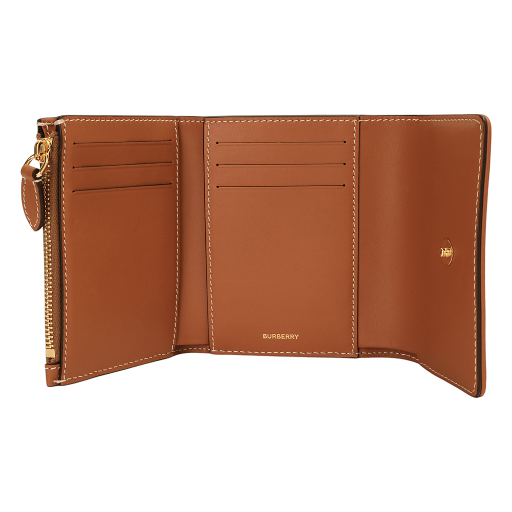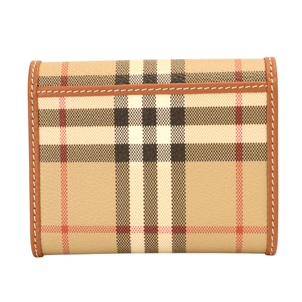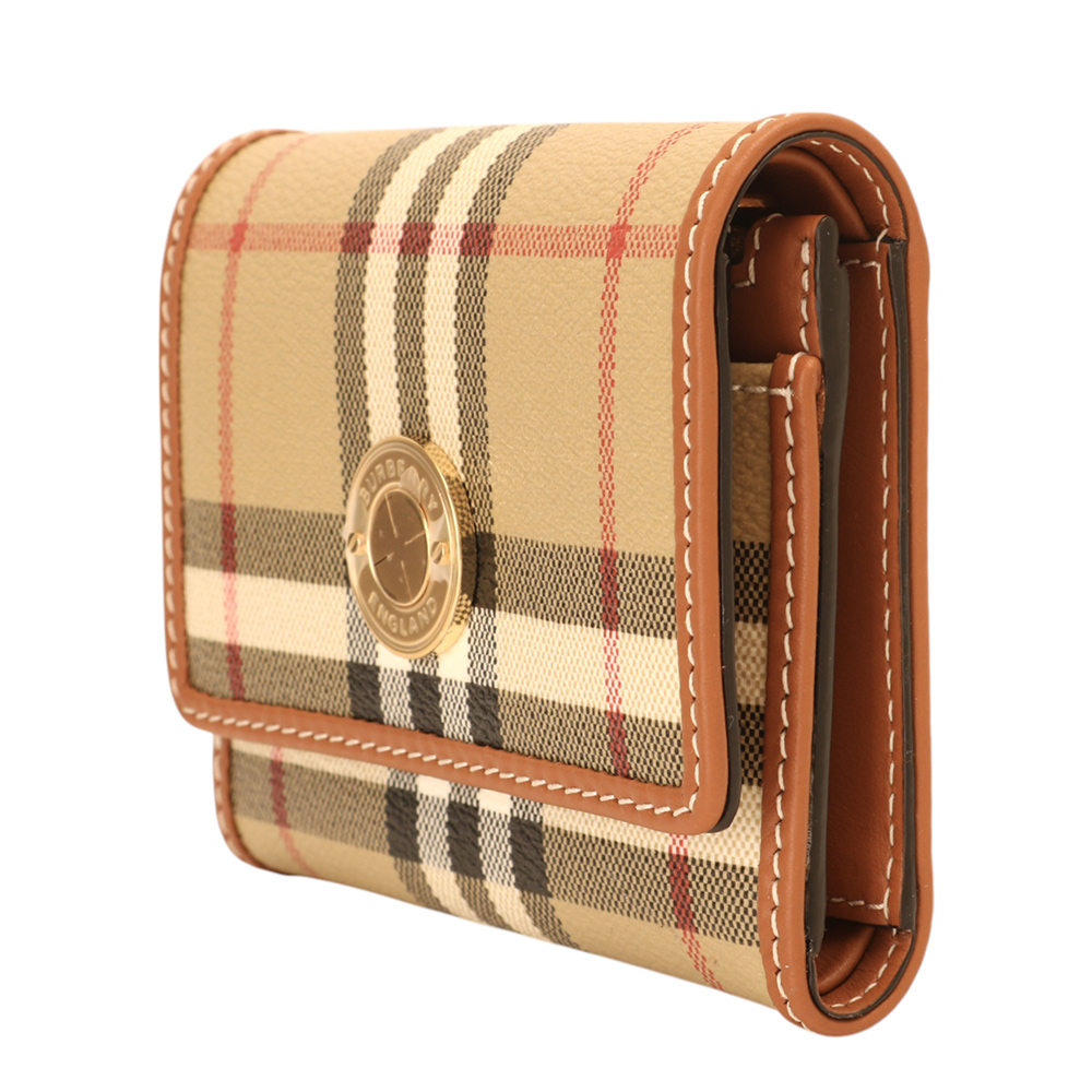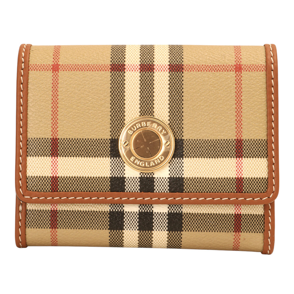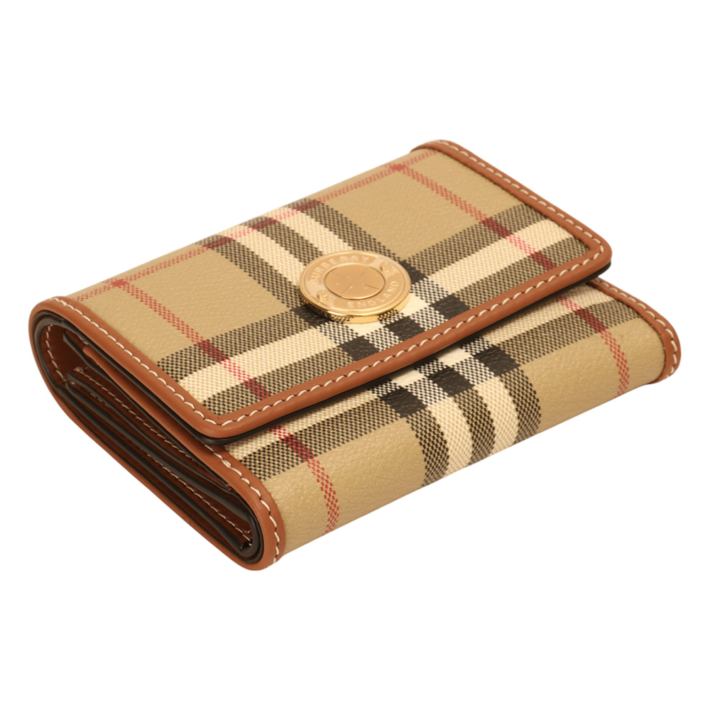 BURBERRY-經典PVC 格紋釦式3折短夾(卡其X棕木)