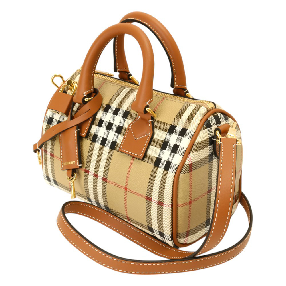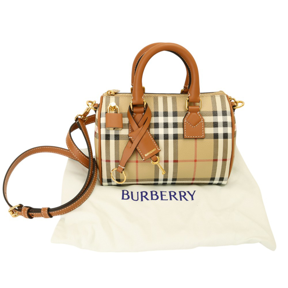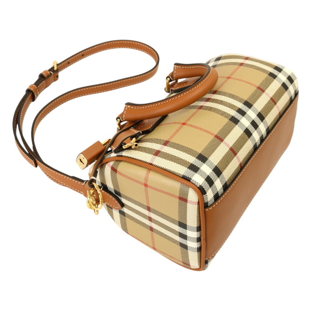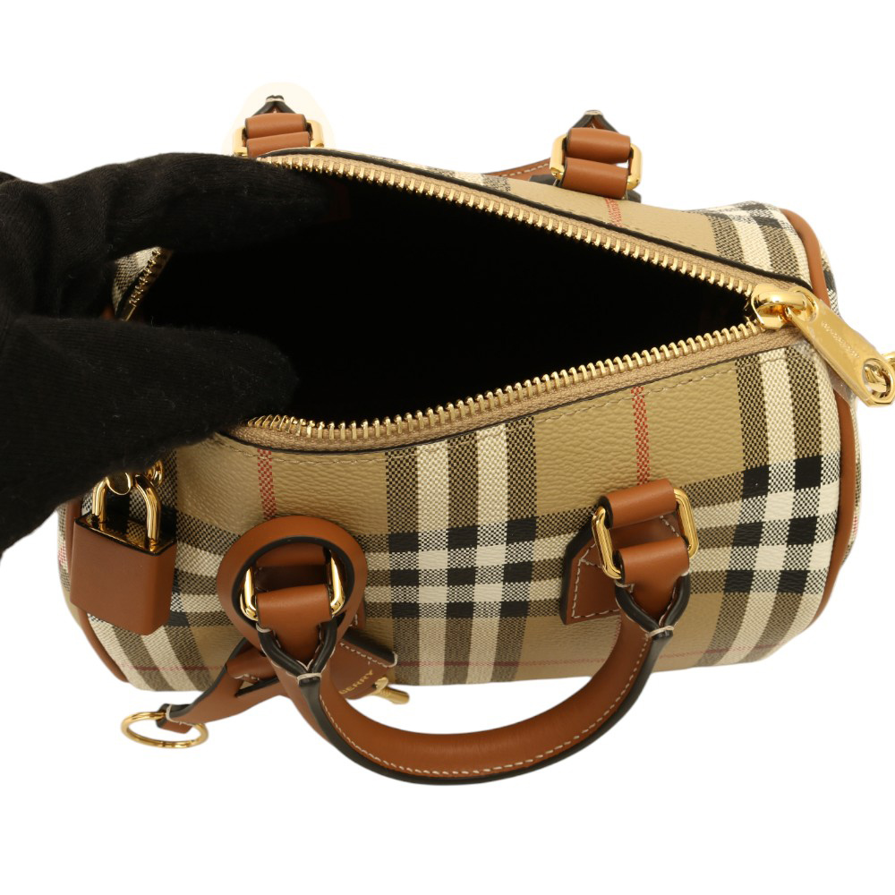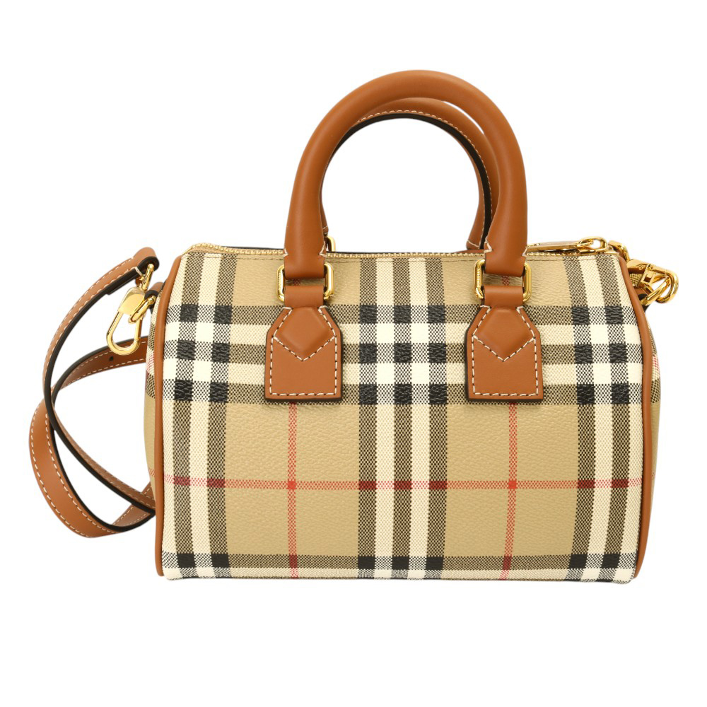 BURBERRY-防刮PVC格紋兩用波士頓包(卡其)mini