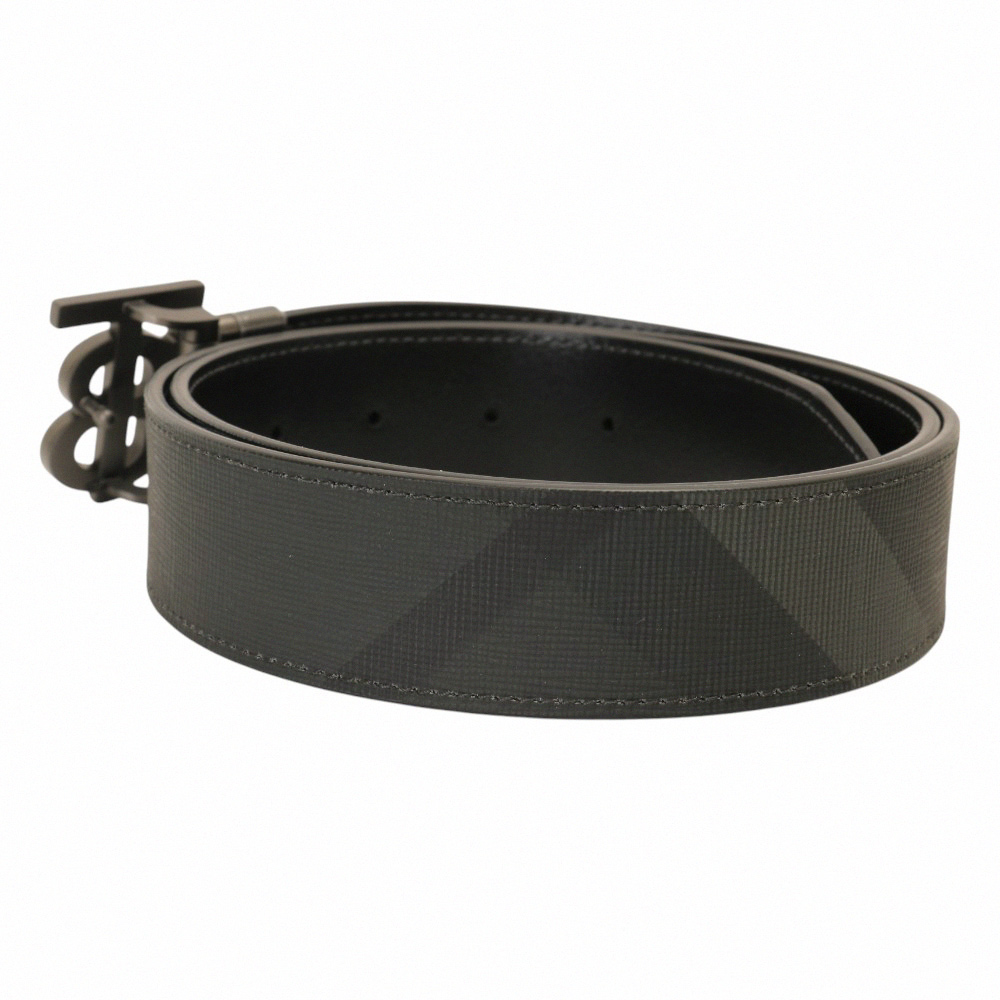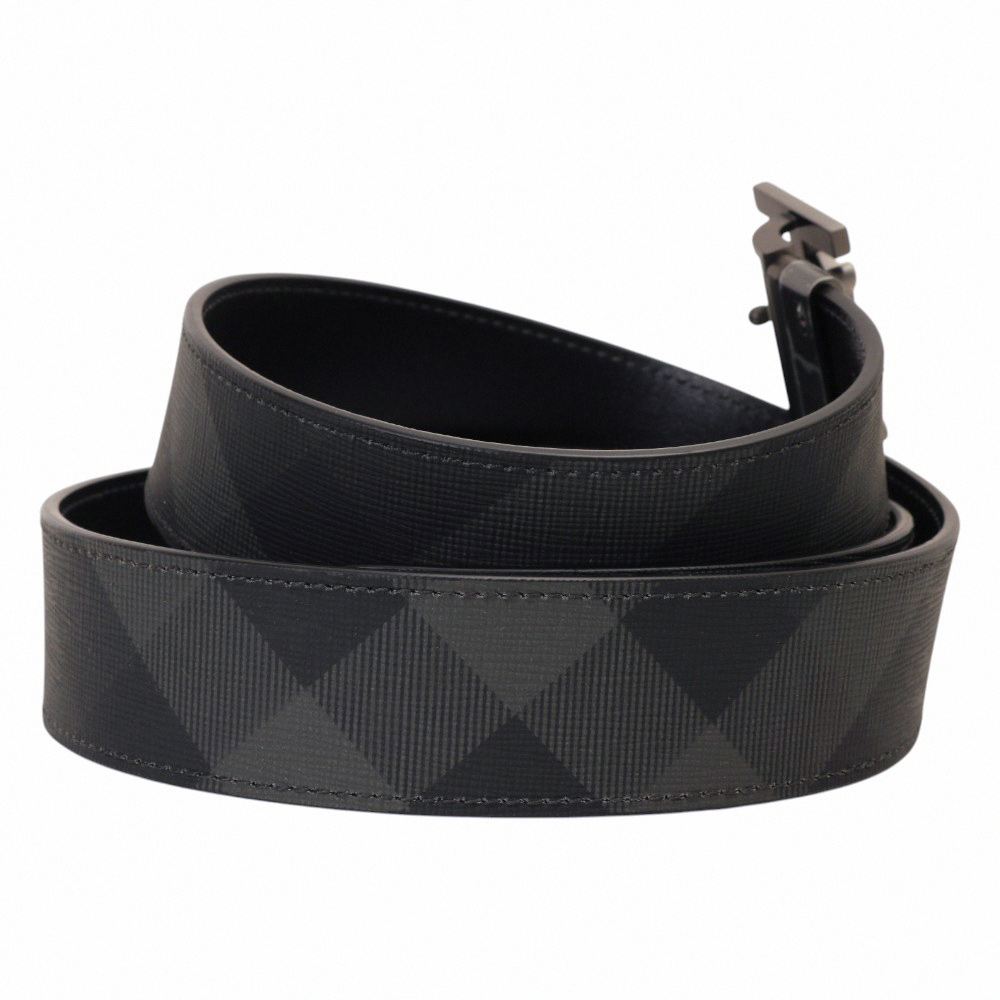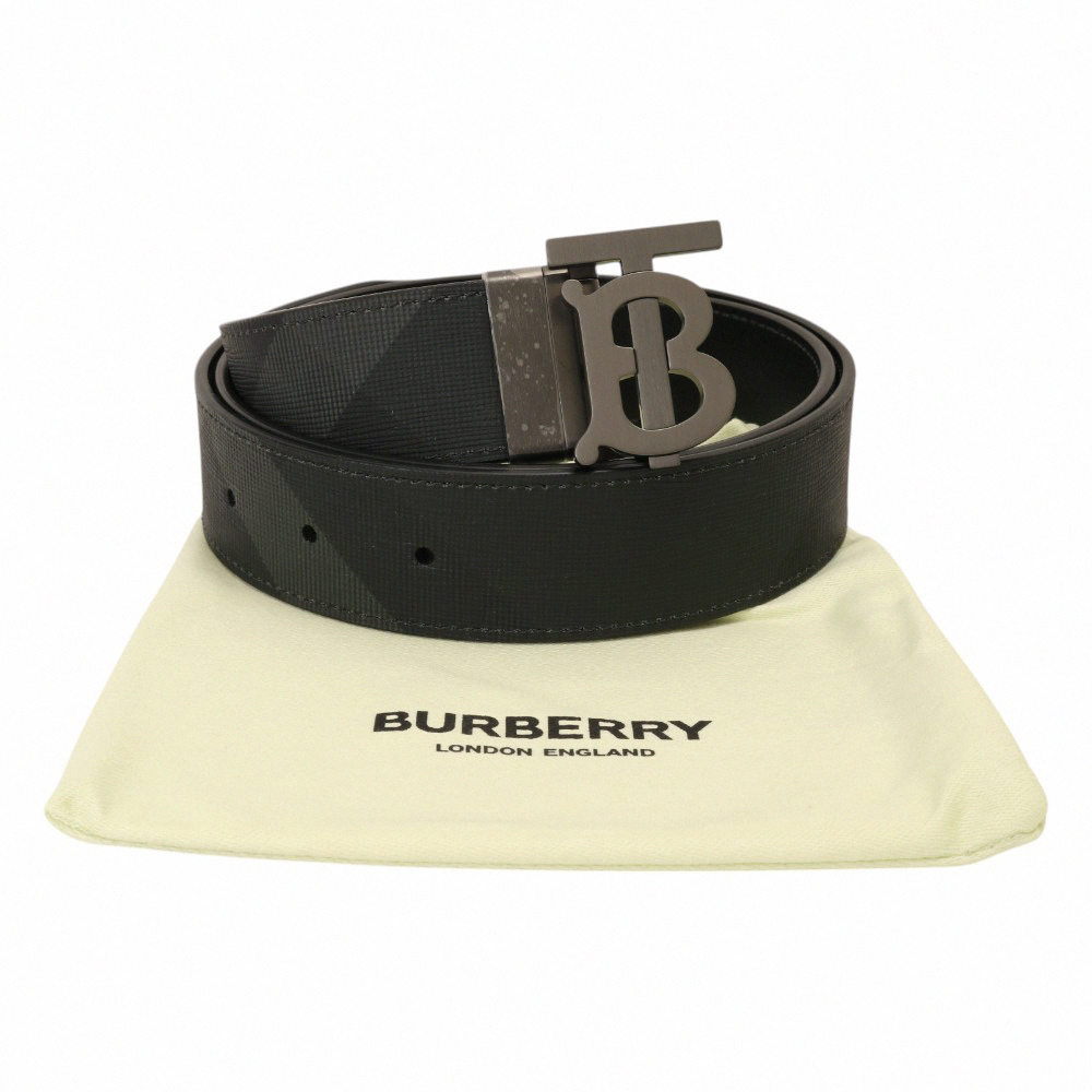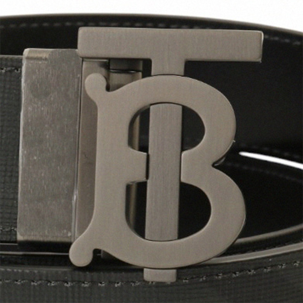 BURBERRY-霧黑B LOGO 斜紋皮革男皮帶(黑)105cm