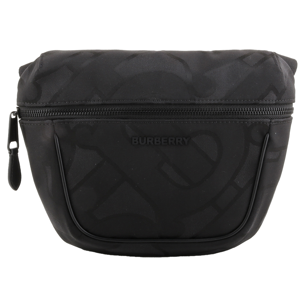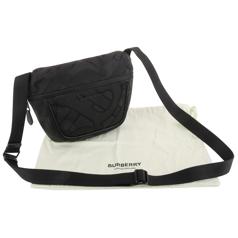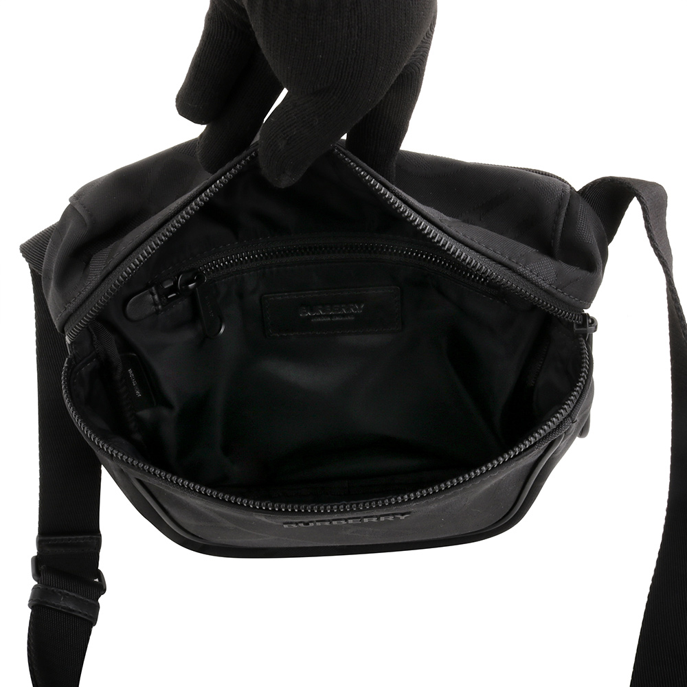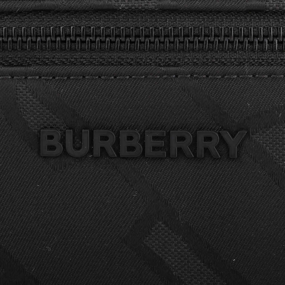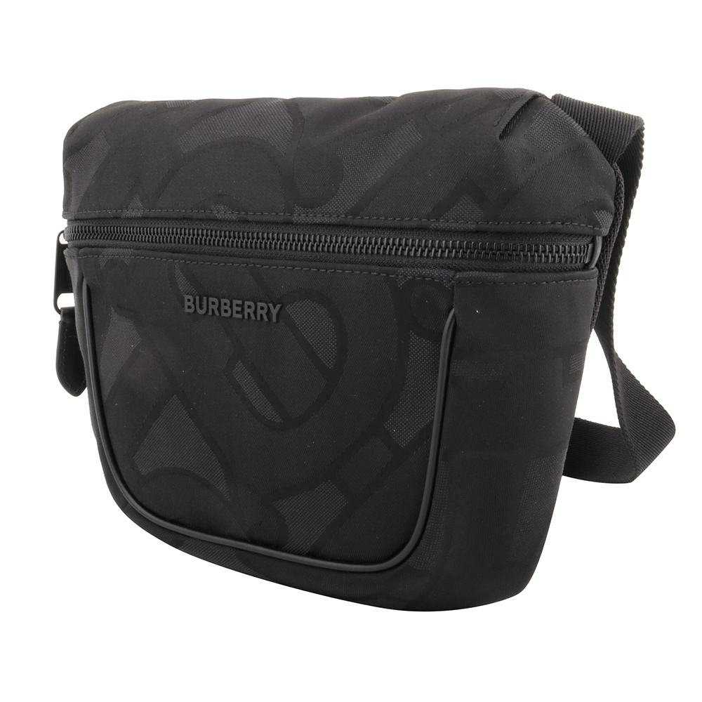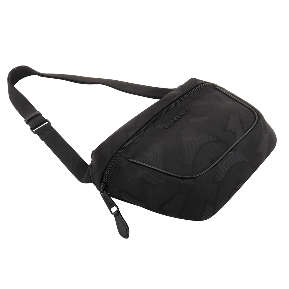 BURBERRY-霧黑LOGO 緹花布斜/側背胸包(黑)小款