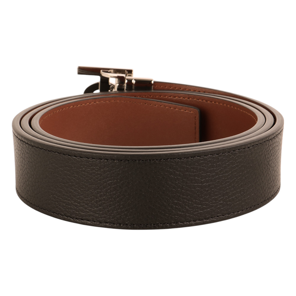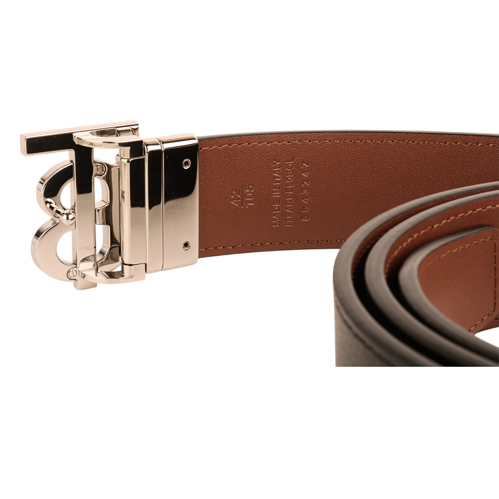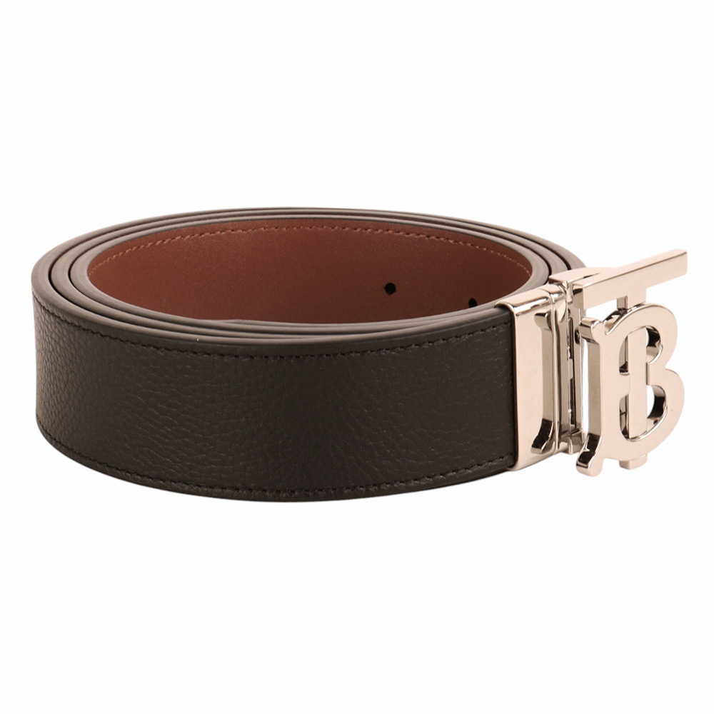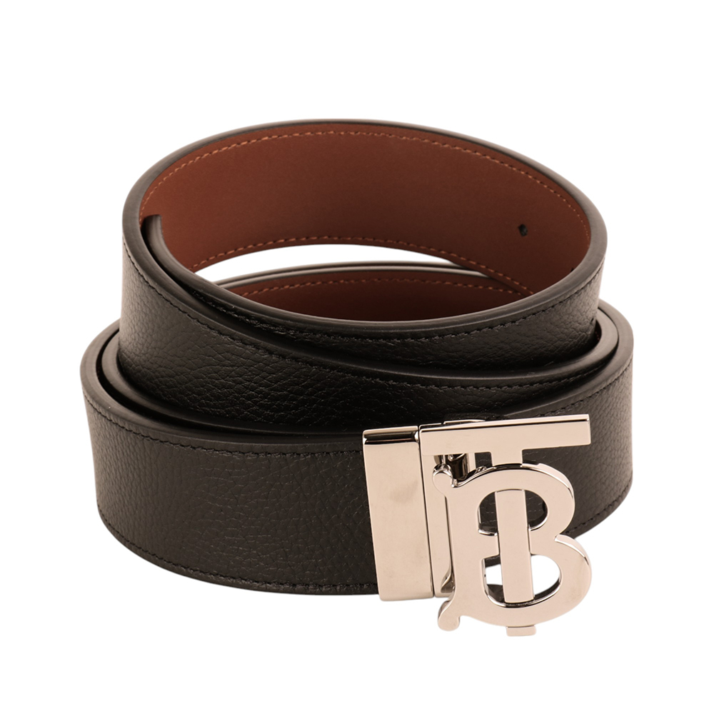 BURBERRY-TB銀頭荔枝牛皮皮帶3.5CM(黑x咖) 105cm