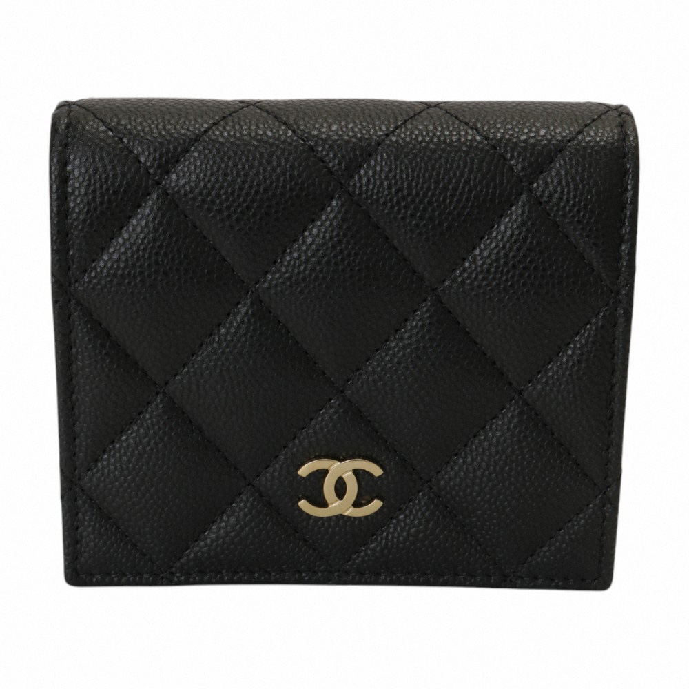 CHANEL-經典雙C暗釦顆粒紋皮革拉鍊零錢包(黑)