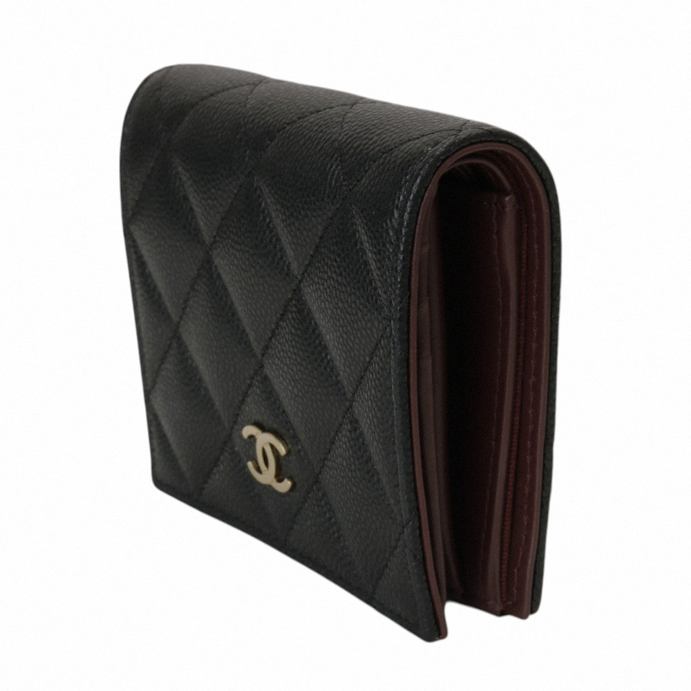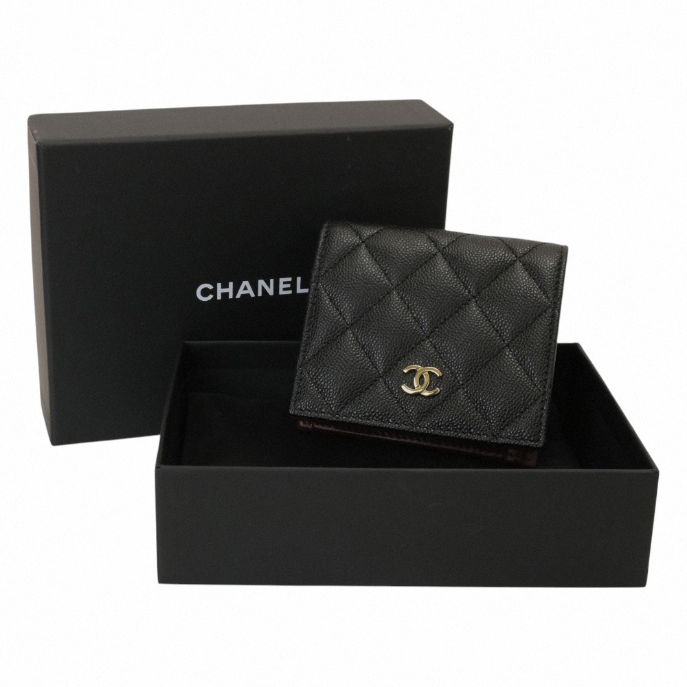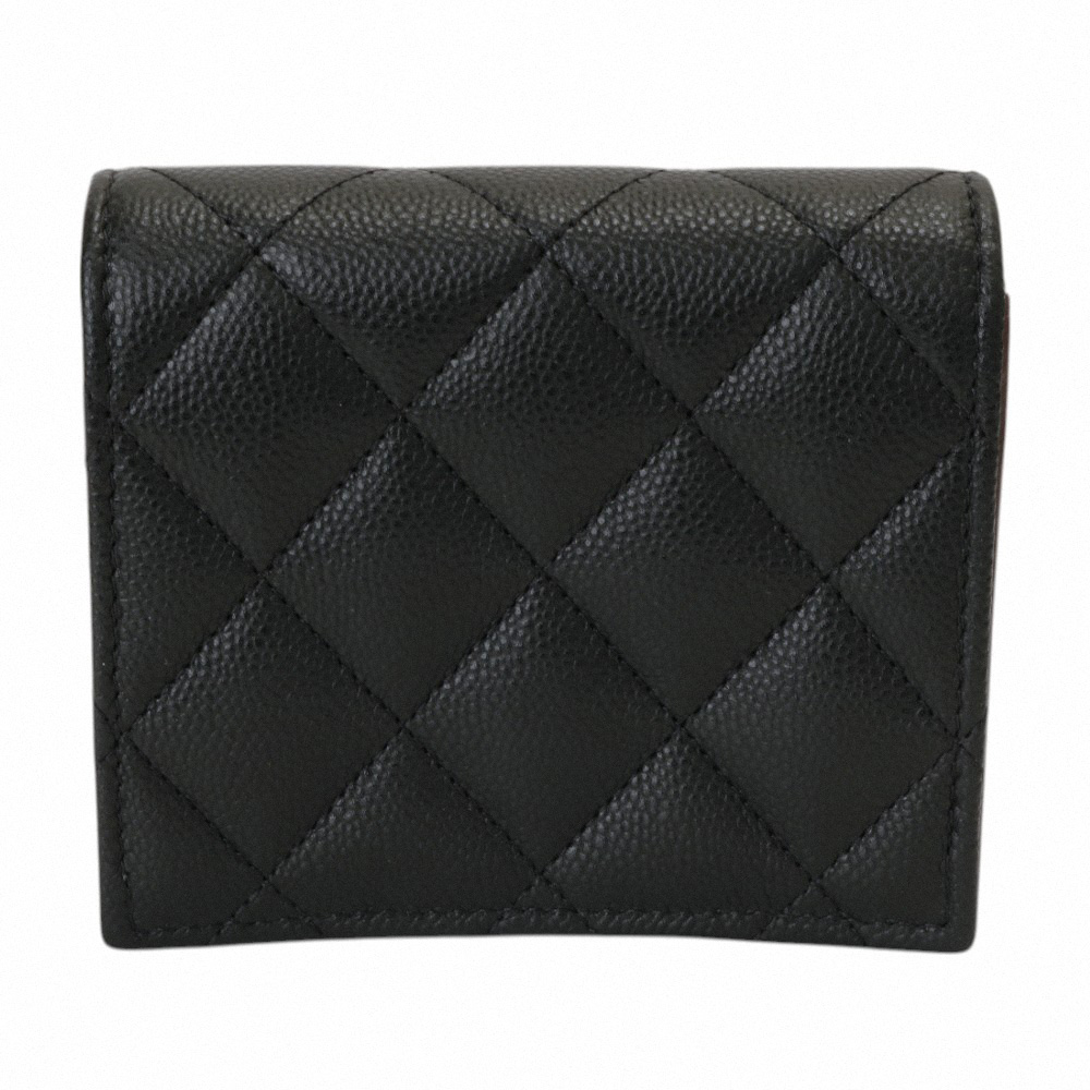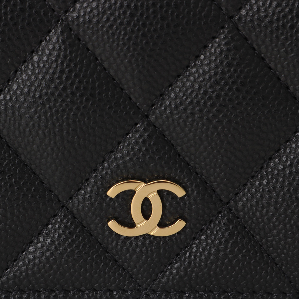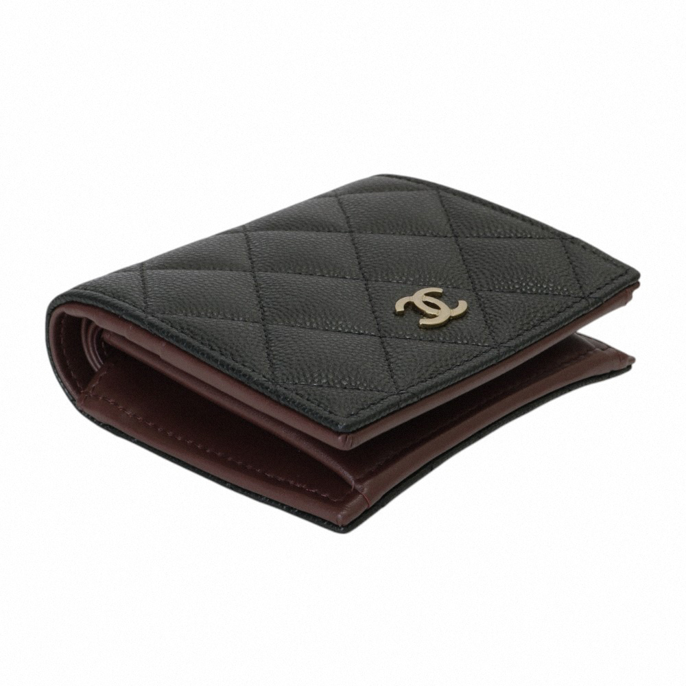 CHANEL-經典雙C暗釦顆粒紋皮革零錢袋短夾(黑)