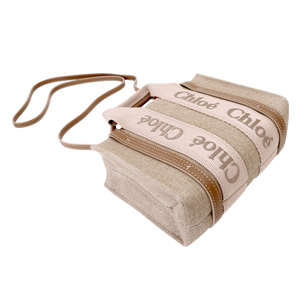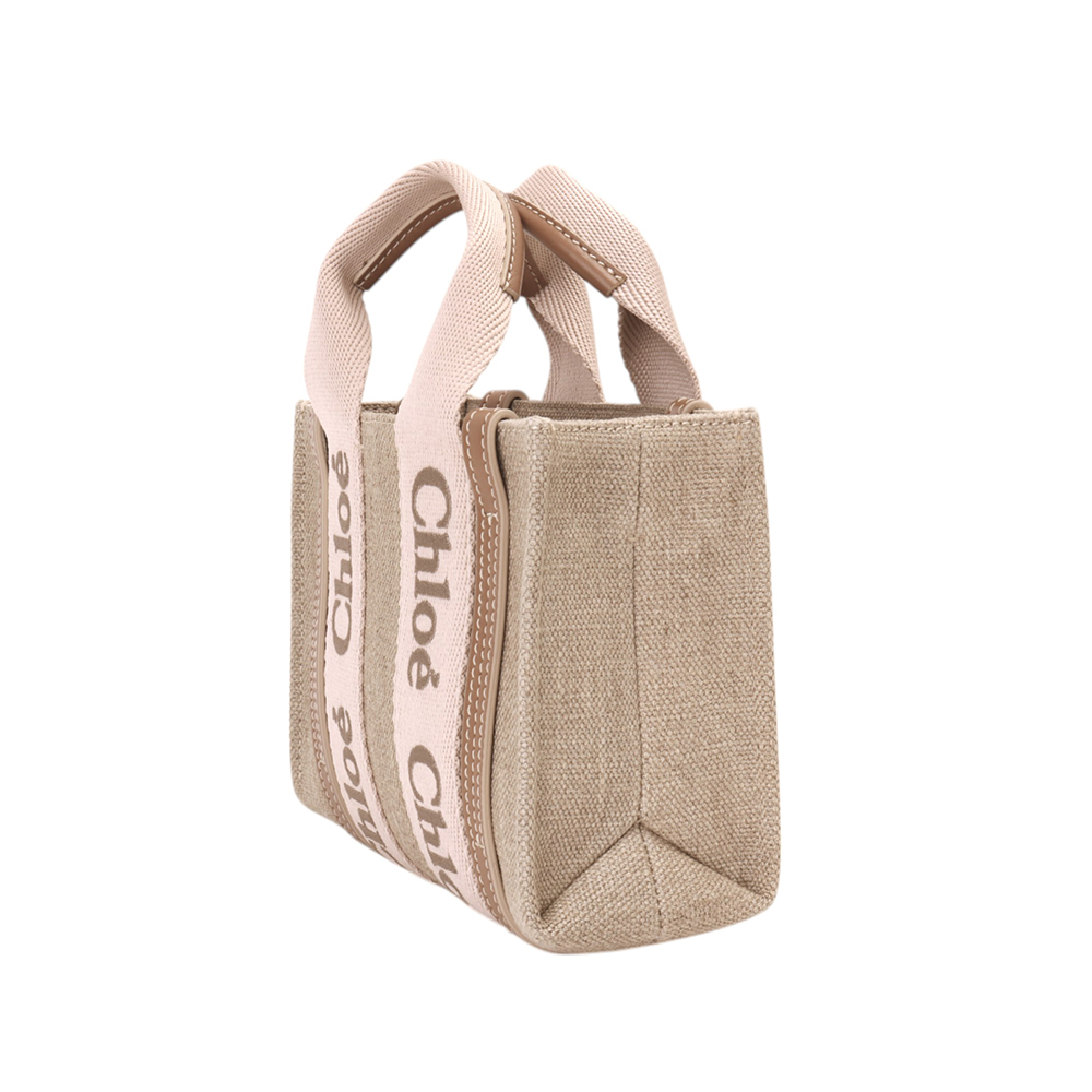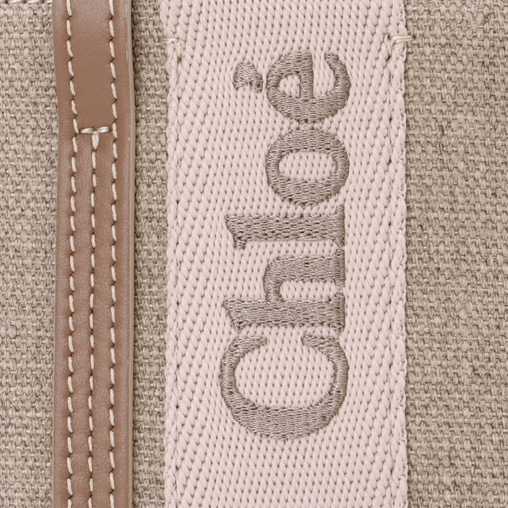 CHLOE-WOODY 字母帆布兩用托特包/米x淺棕mini